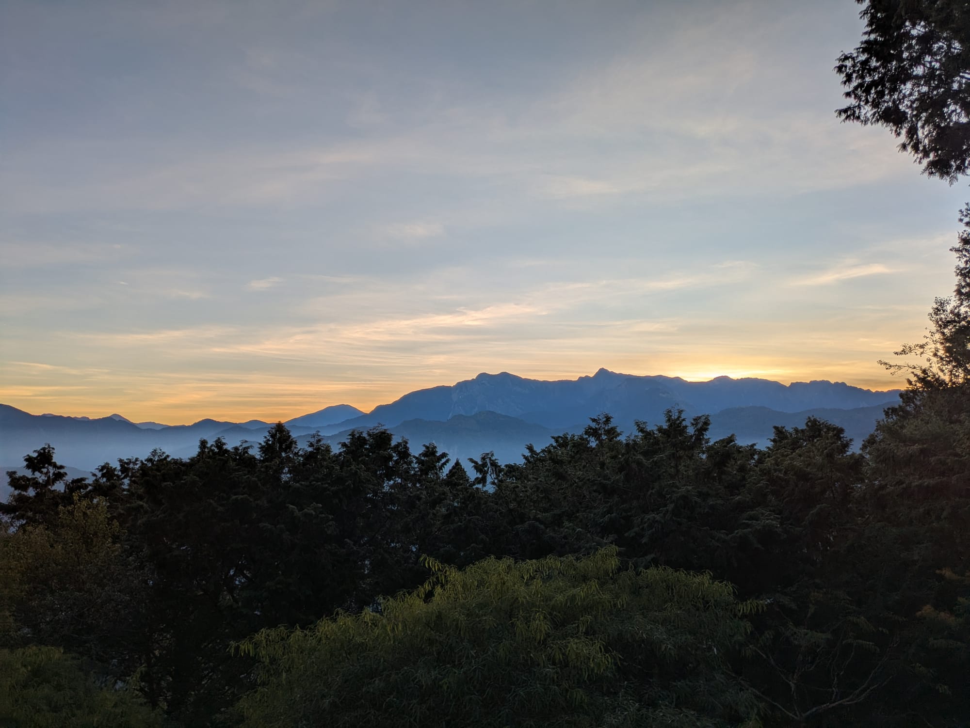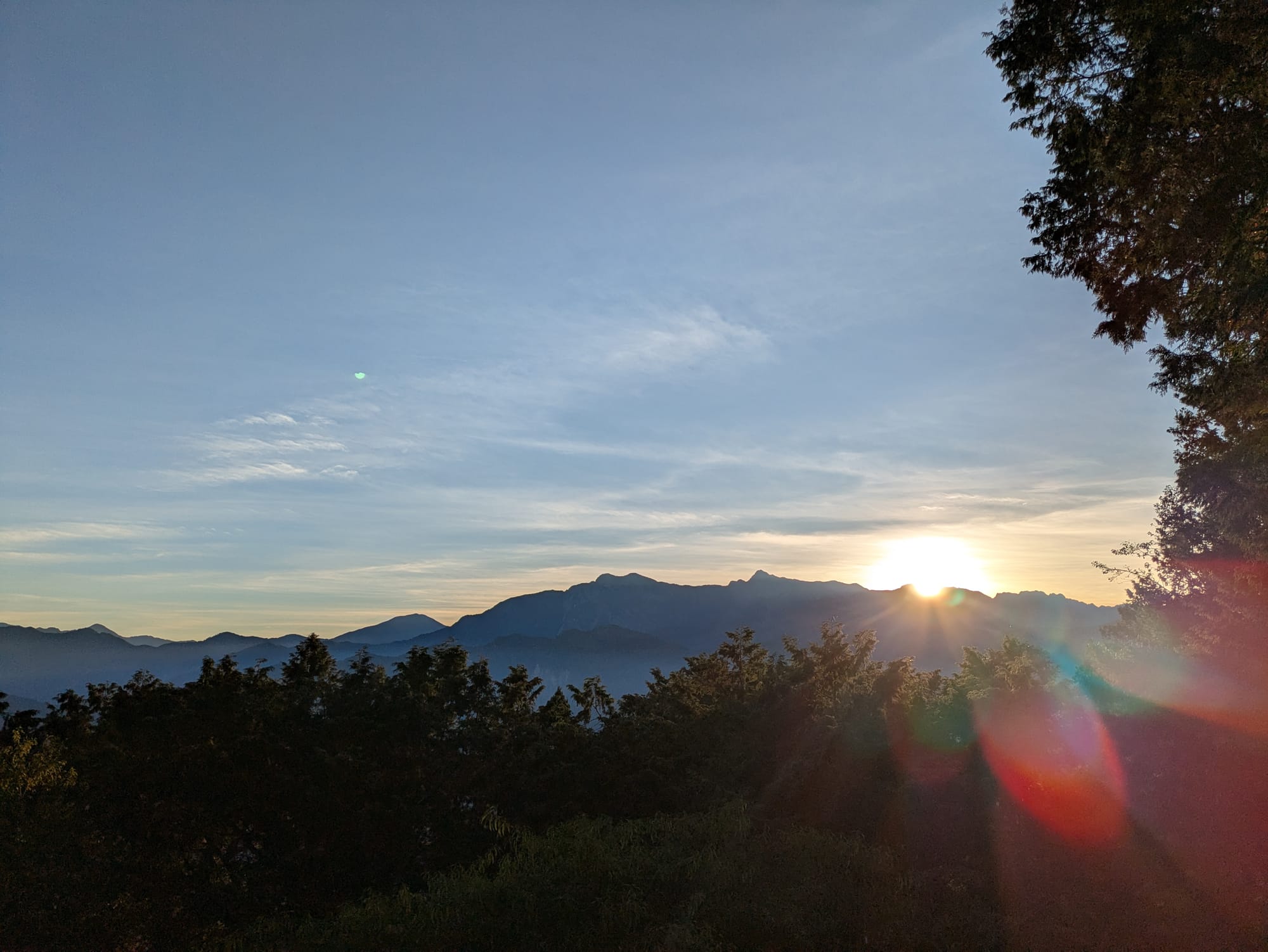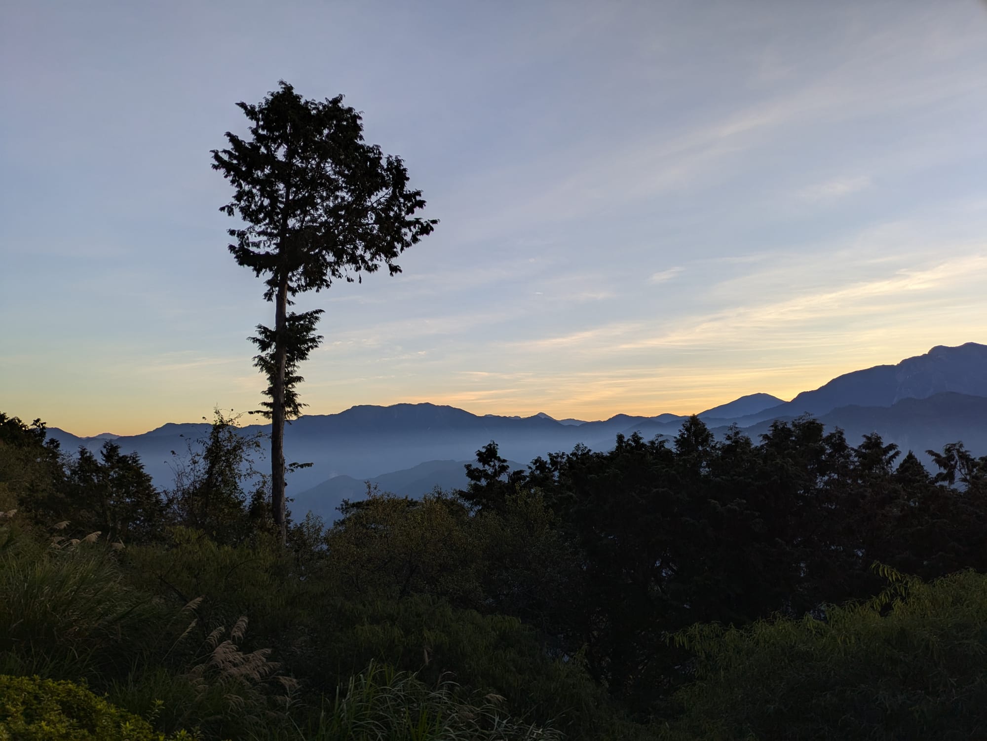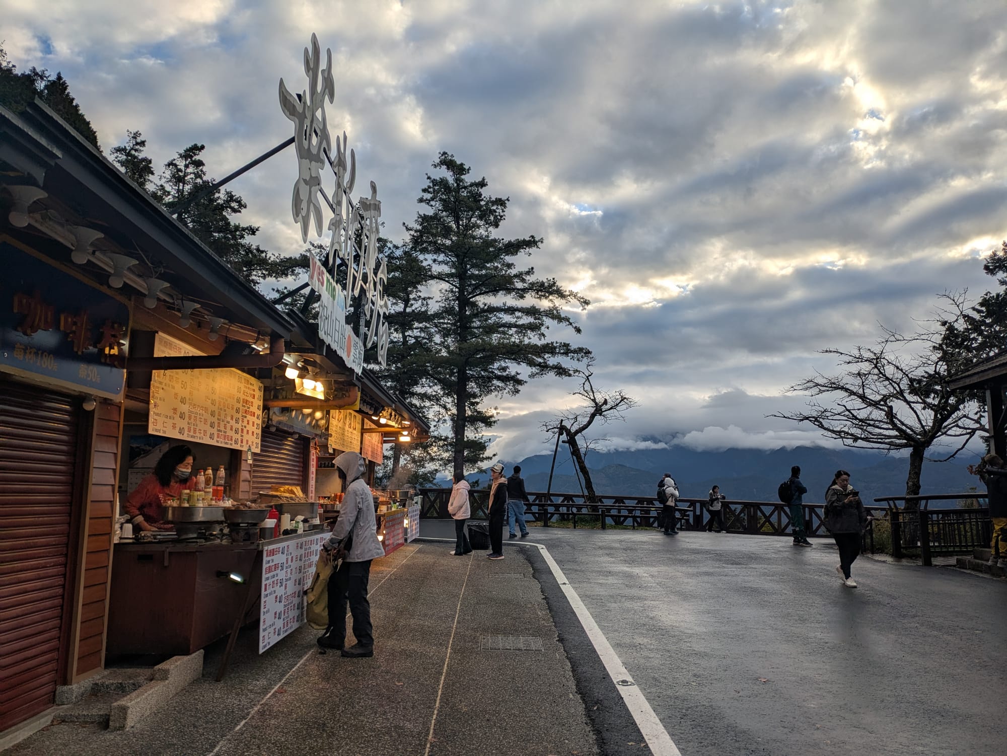 On my first day in Alishan I learned that every day there is a sunrise train to Zushan mountain. This train only goes to the peak once a day and only for the sunrise. The station at Zushan is the highest railway station in Taiwan and it is the furthest active service station from the main Alishan village. I decided to take the sunrise train twice in a row, for the first day I watched the sunrise from Zushan, on the second day I walked to the nearby Ogasawara peak, although that day it was cloudy so we didn't see the sun. At both peaks there was a viewing platform looking east, towards the sunrise and the Jade mountains, the tallest mountains in Taiwan.