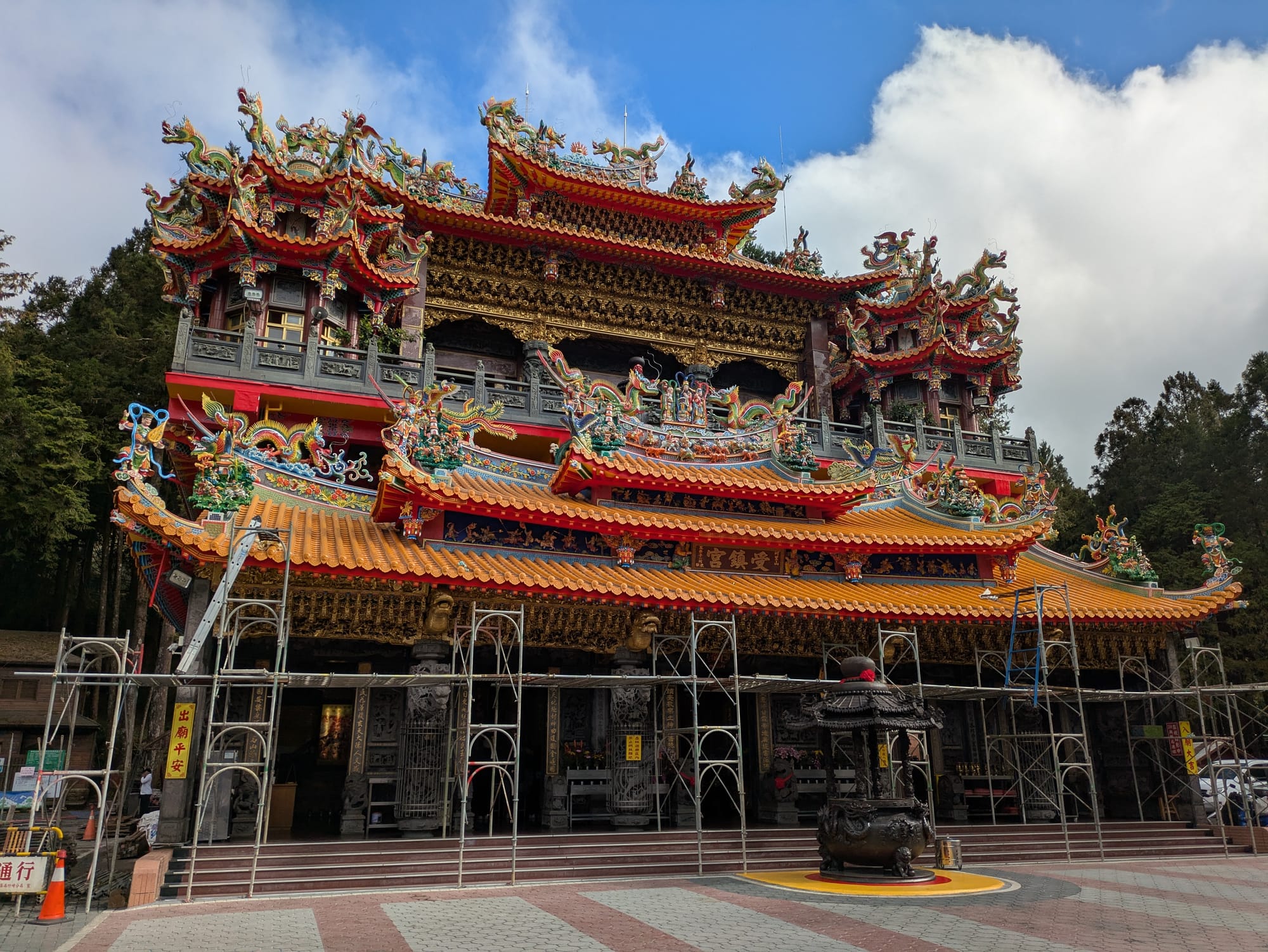 This was the largest temple in Alishan and it is located at the intersection of thee major walking trails. It was a little bit of a hub as opposite the temple is an open square with shops located in a long building that encompassed three sides of the square. This seemed to be a popular place to have lunch while visiting the forest. I picked up a lovely oolong tea from a local shop on my last day here while passing this temple.