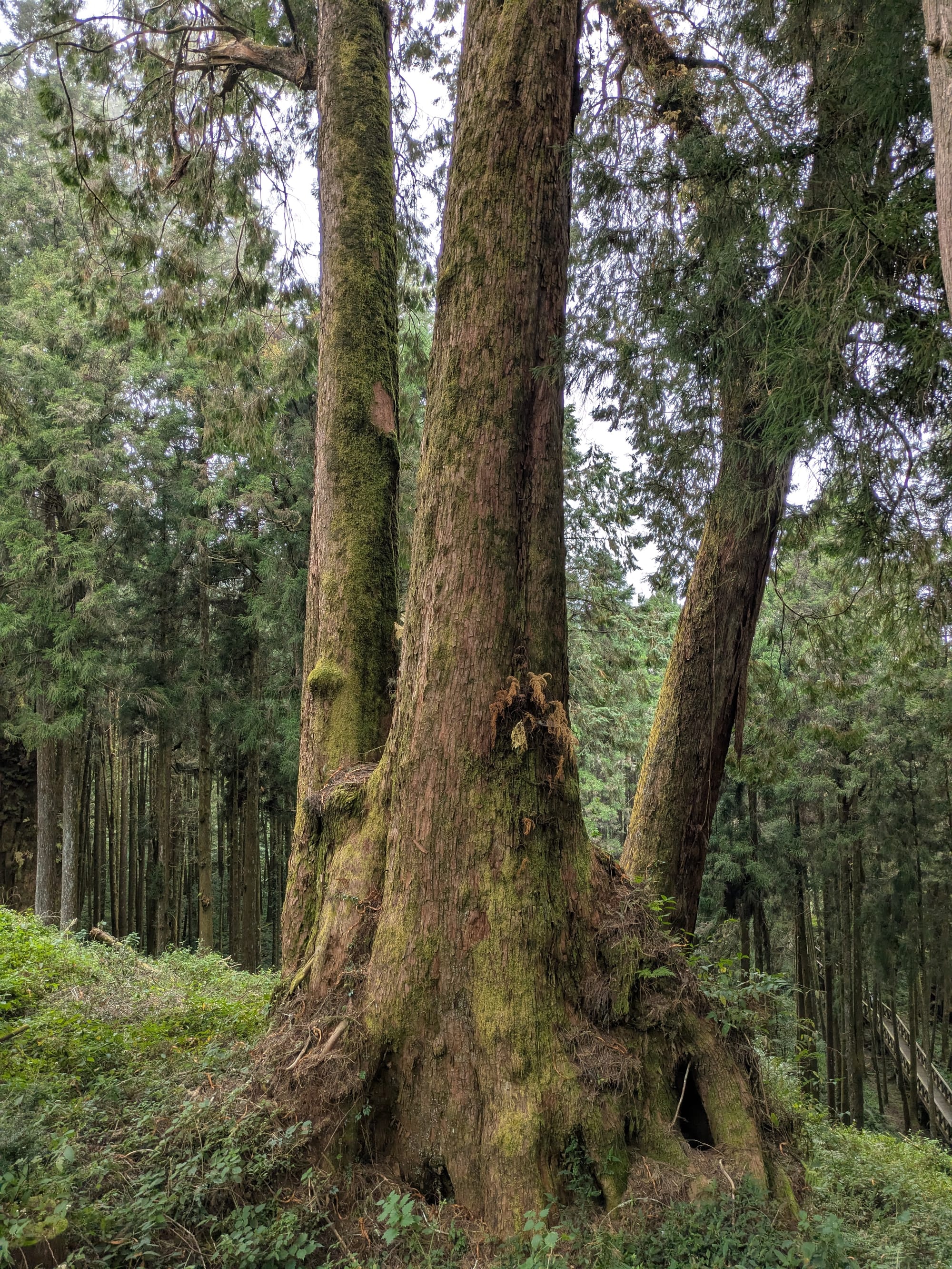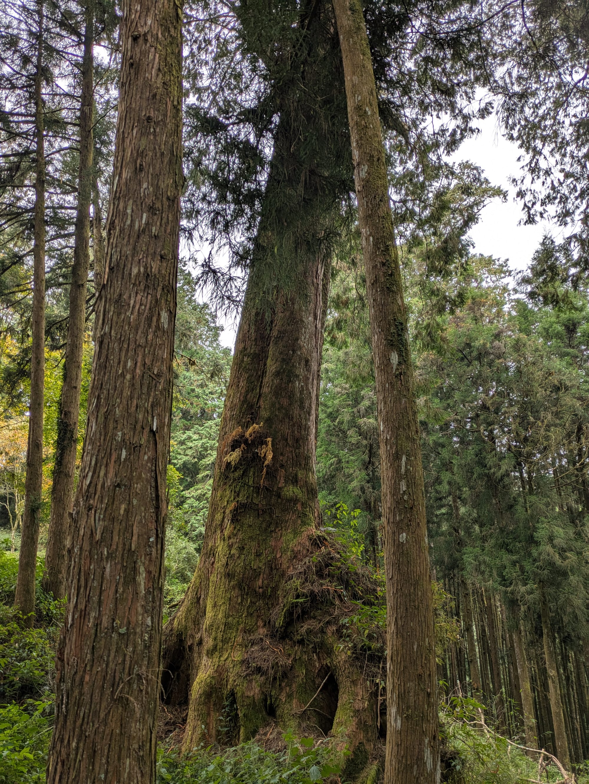 There are many giant stumps in the forest, some of these are the remains of ancient cypress trees that were harvested by the Japanese, but others are older still. Because the wood is so strong these stumps do not decay away easily and they remain in place, still firmly holding the soil on the mountain with their long dead roots.