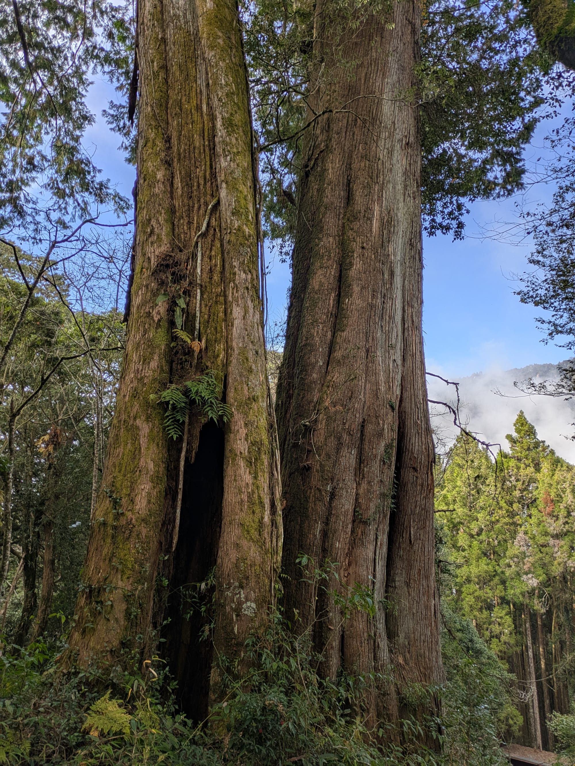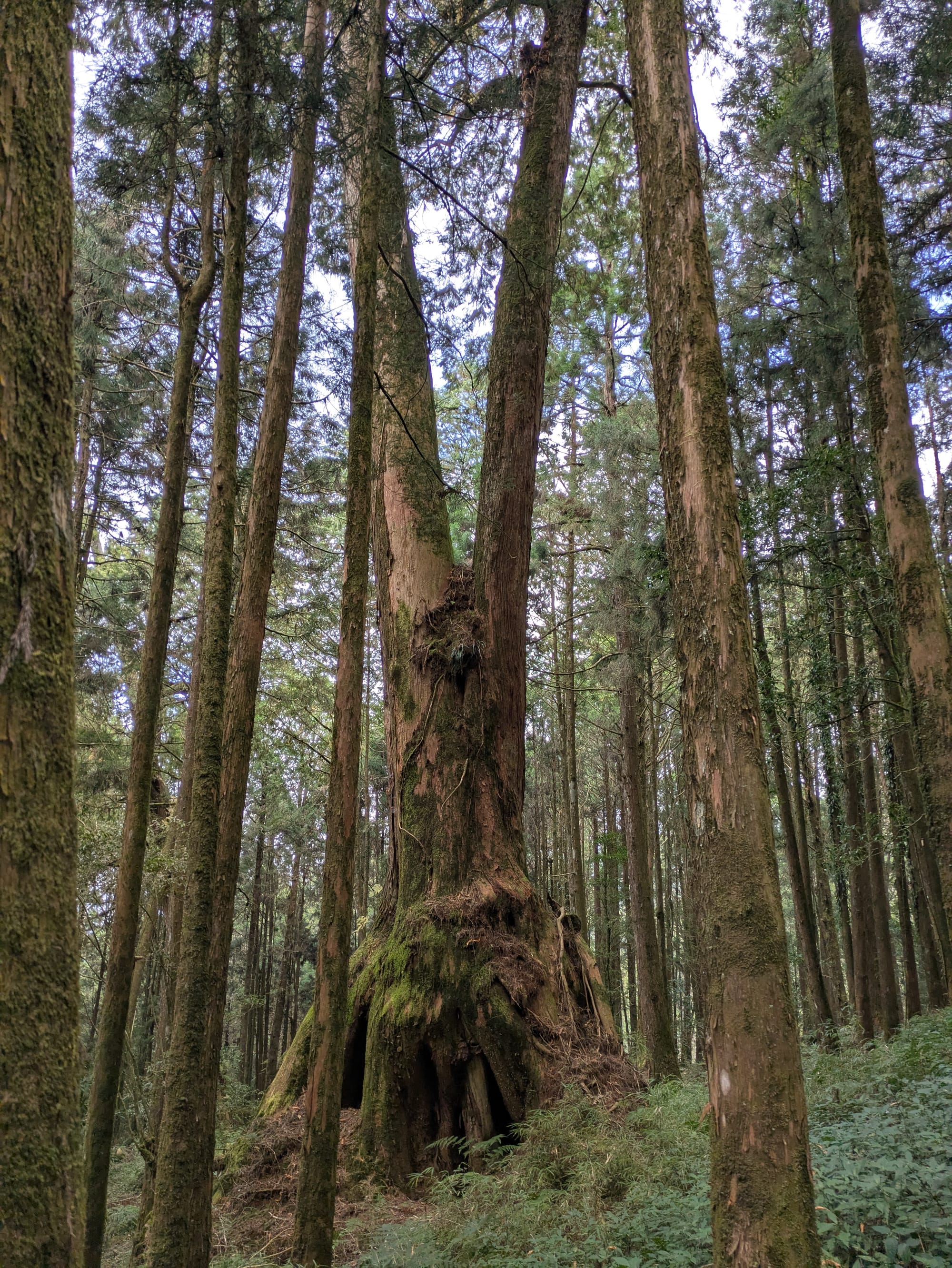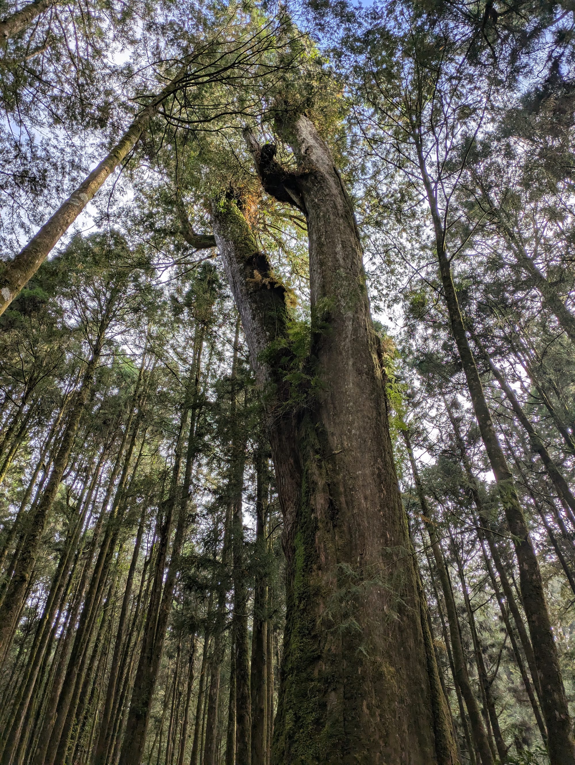 While many of the old trees were cut down, not all of them were, and there are still some ancient giant trees left standing in Alishan. This is the biggest one of them all and it was discovered by the Japanese when they were building the Shuishan branch of the railway. It is 16 meters in circumference and over 30 meters tall. Also, it technically is not one tree but rather a combination of 10 trees. When multiple trees grow in the same spot they often combine together to create a fusion tree. Many of the giant trees in Alishan are fusion trees.