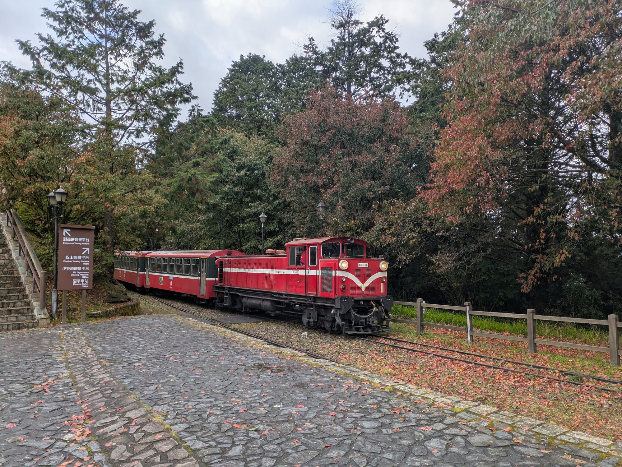 The Alishan mountain train photographed as they went past a crossing. The first image was taken near the Duigaoyue viewing platform. The second image was taken as I was returning to the main tourist village, exiting the park.