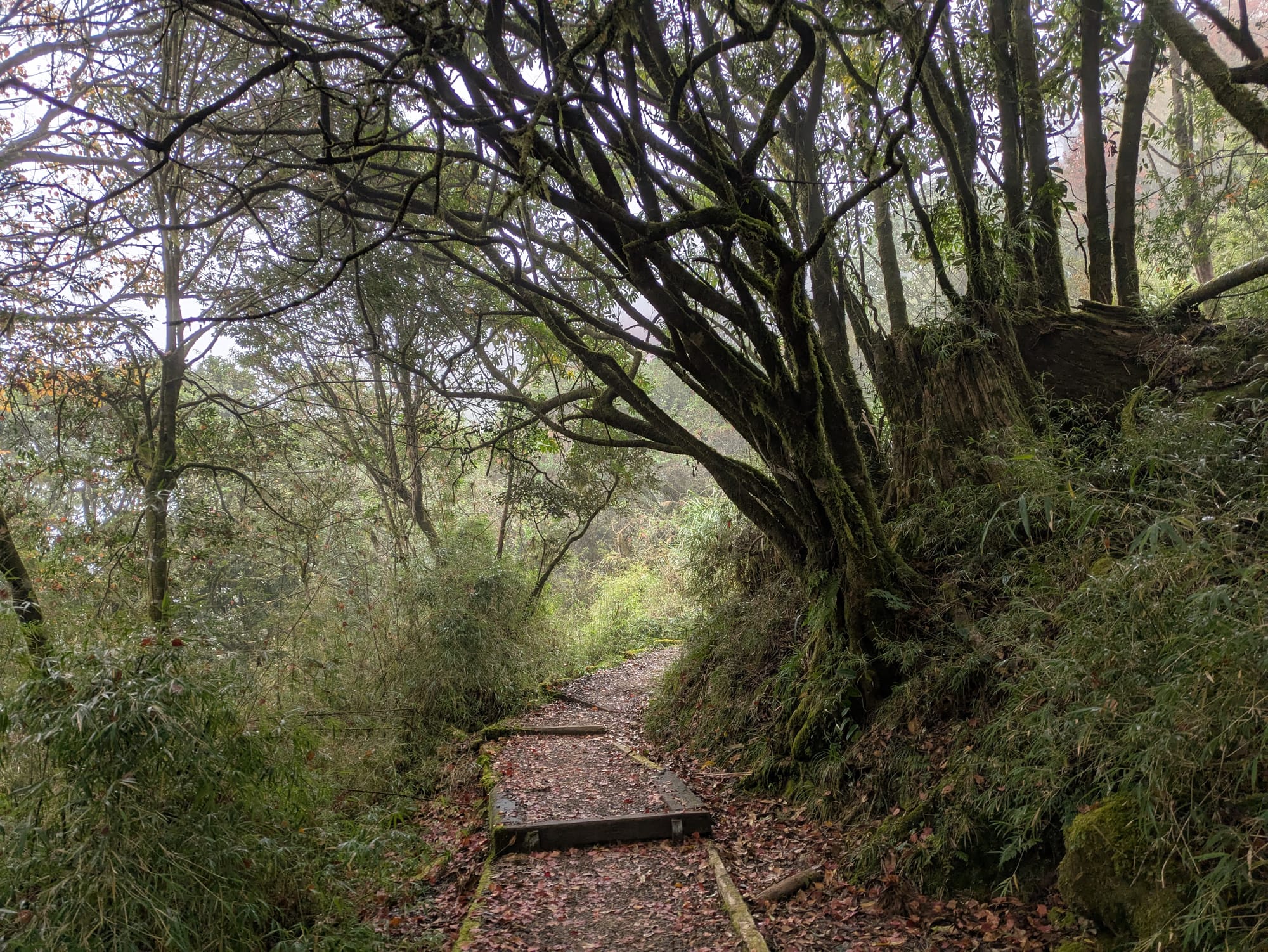 On my final day in Alishan there was only one big hike left that I hadn't done yet. This is to Tashan Peak, the hike is about 3.7 km one way, and at 2600 meters above sea level this mountain is the tallest in the park. The brochure told me that from this peak I could get fantastic views of both Alishan and the Jade mountains (the tallest mountains in Taiwan rising above 3000 meters). Half of the trail to Tashan was along the same trail that goes to the Mianyue line hike, so I was able to revisit some of these scenes and take more pictures. Once I started climbing the mountain the track was really steep with many steps especially near the top, but the forest was beautiful all along the way and became increasingly diverse the higher up I went.