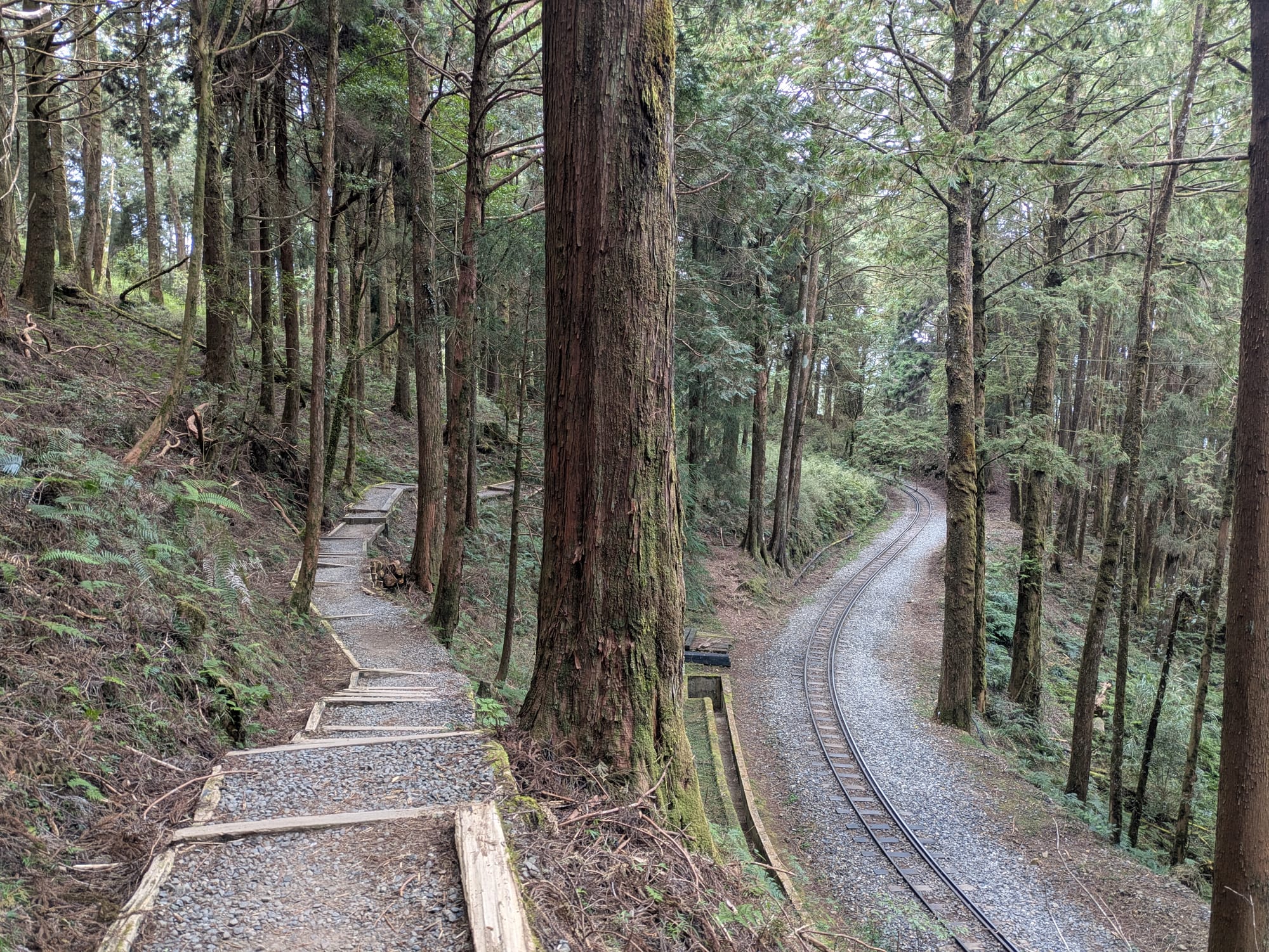 On the final stretch back to the main Alishan park, I walked through this open stretch of forest that looked so beautiful I just had to grab a couple of pictures. I loved how the trail and real line meandered through the hilly forest in this section.