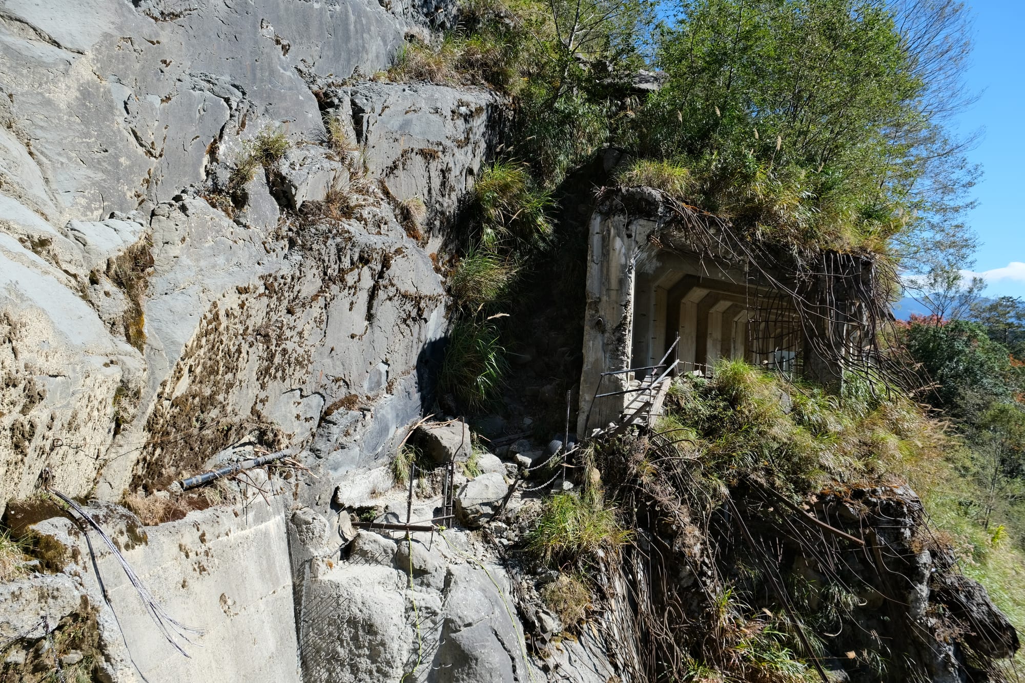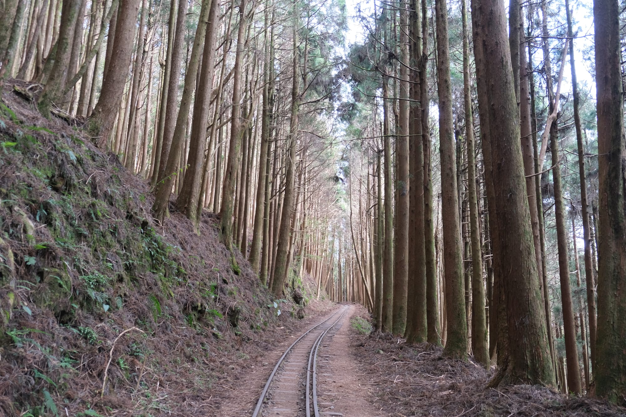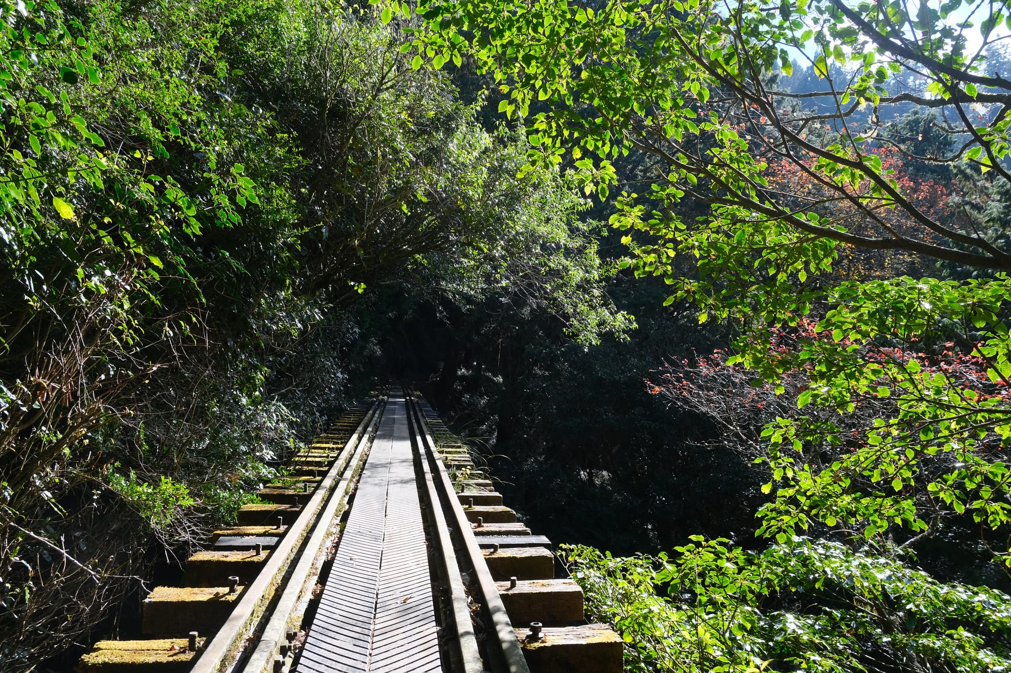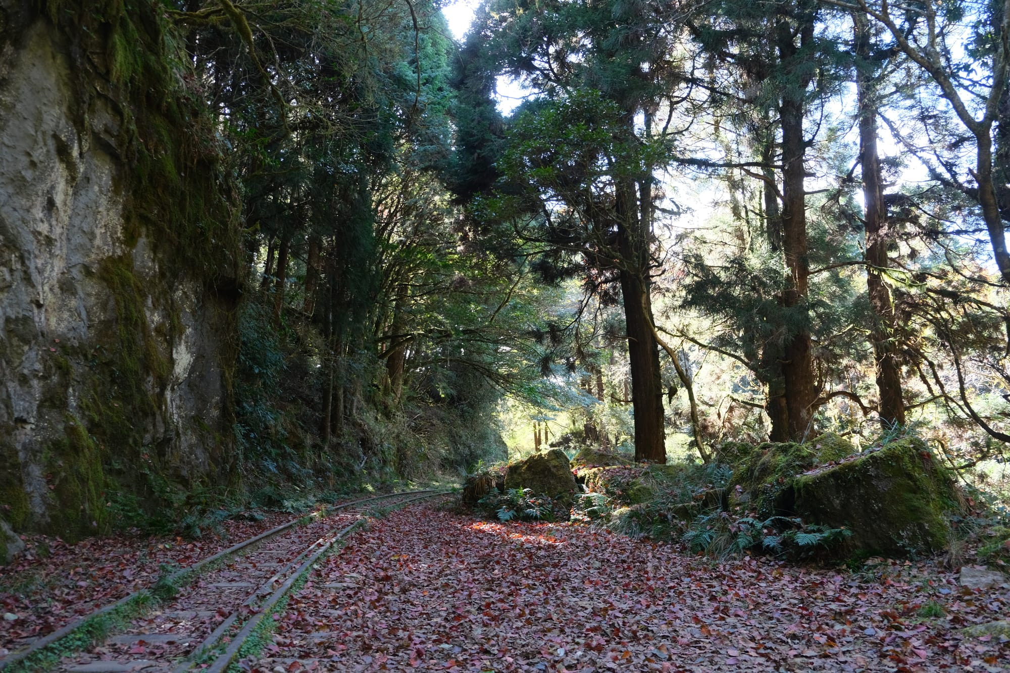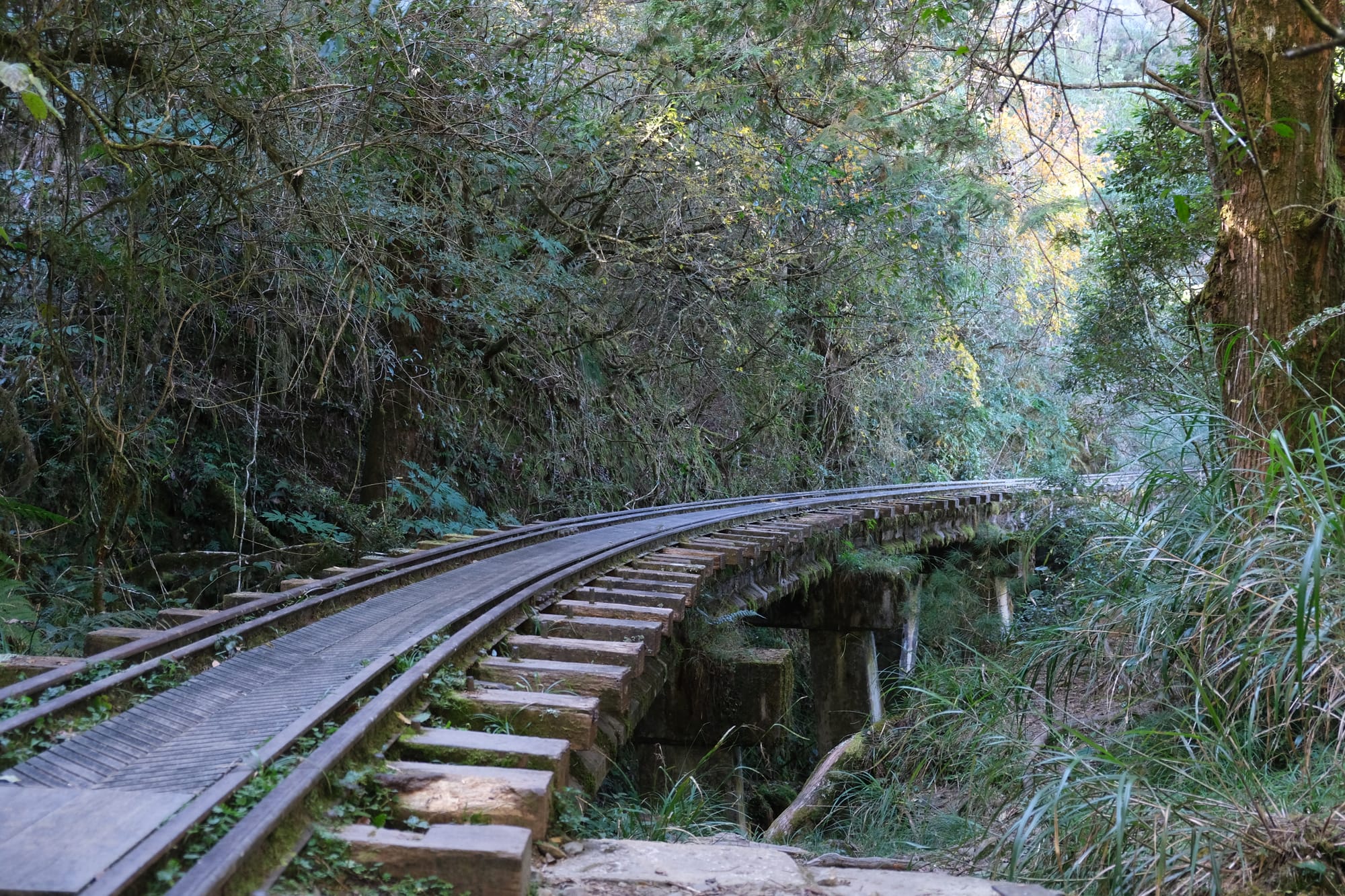 The hike is nine kilometers long one way and follows the Mianyue railway line. This railway line used to be operational but ten years ago a section of the slope collapsed during a typhoon, sweeping away part of the track. There was also a tunnel where part of the roof had collapsed during an earthquake. The above image is taken from an observation deck in Alishan showing the Mianyue railway line in the middle of the mountain slope, including the section that is broken. Since the line is closed to regular train service it has become a famous hike as the mountain area the railway line goes through is very beautiful.