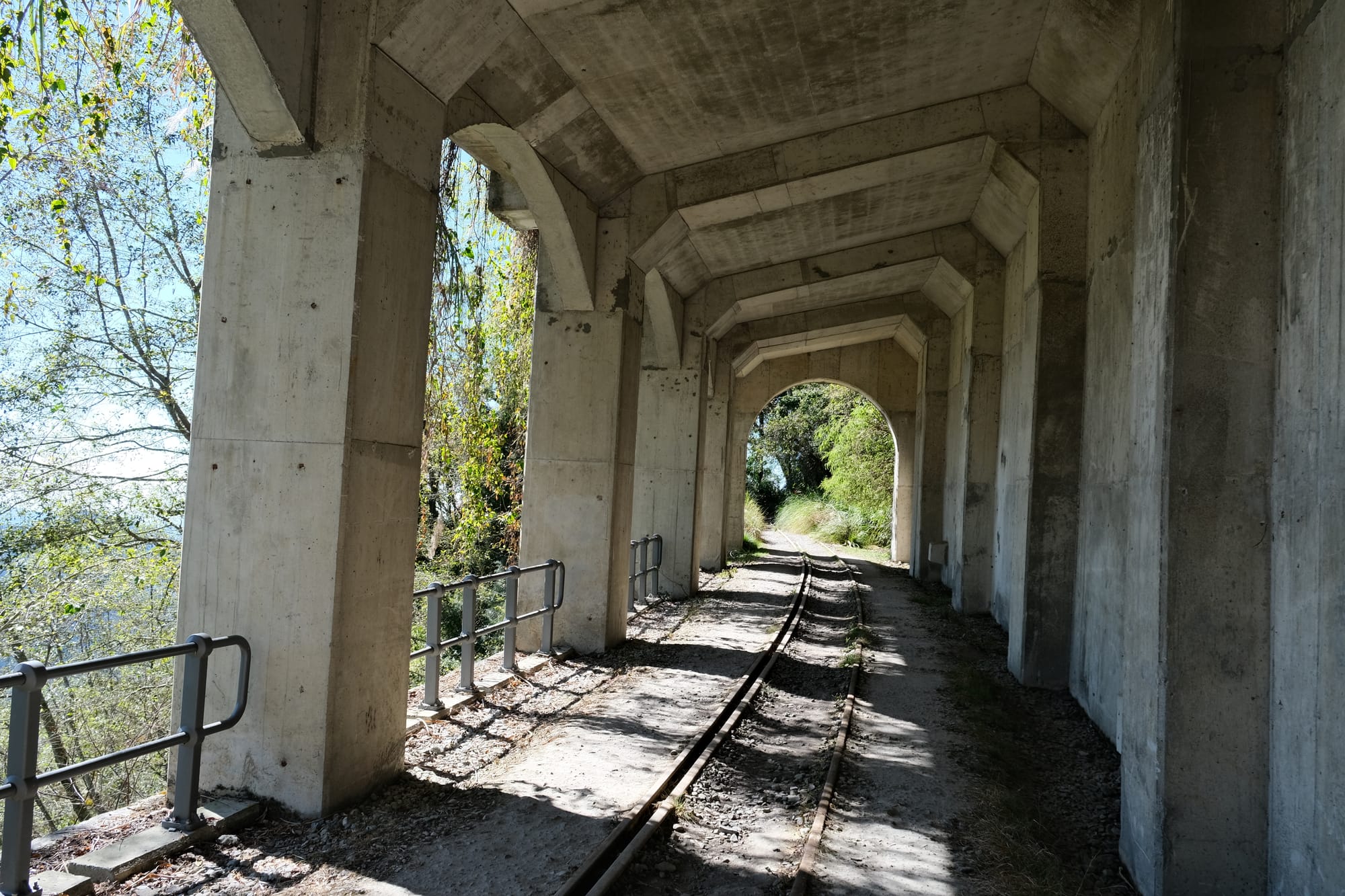 As we continued further the bridges and tunnels became more frequent, and the space between them shrunk. There was a section where we hiked from a bridge into a tunnel and then back onto a bridge, multiple times in a row. I found it fantastic how this line was built, that in such rugged terrain they were still able to create a gentle slope for a train by making repeating tunnels and bridges.
