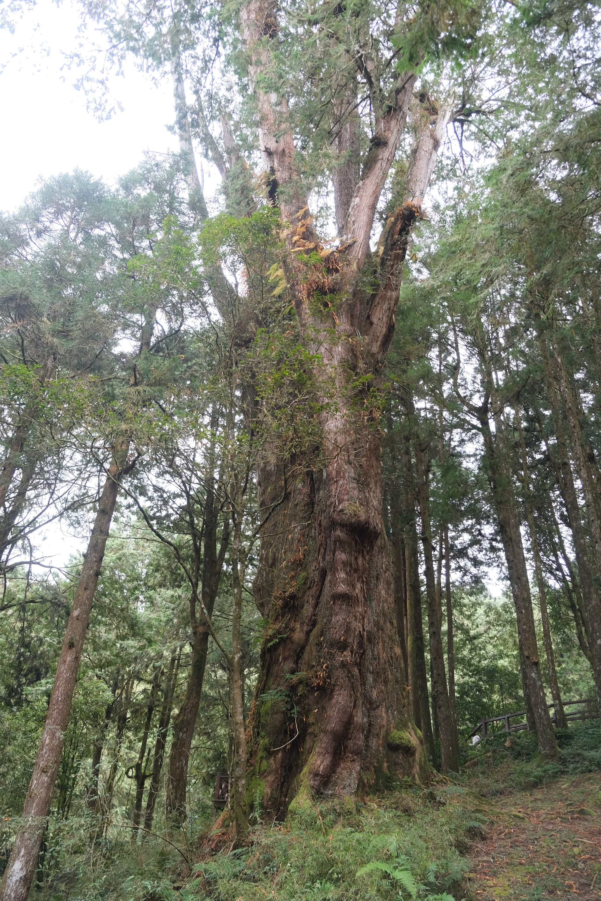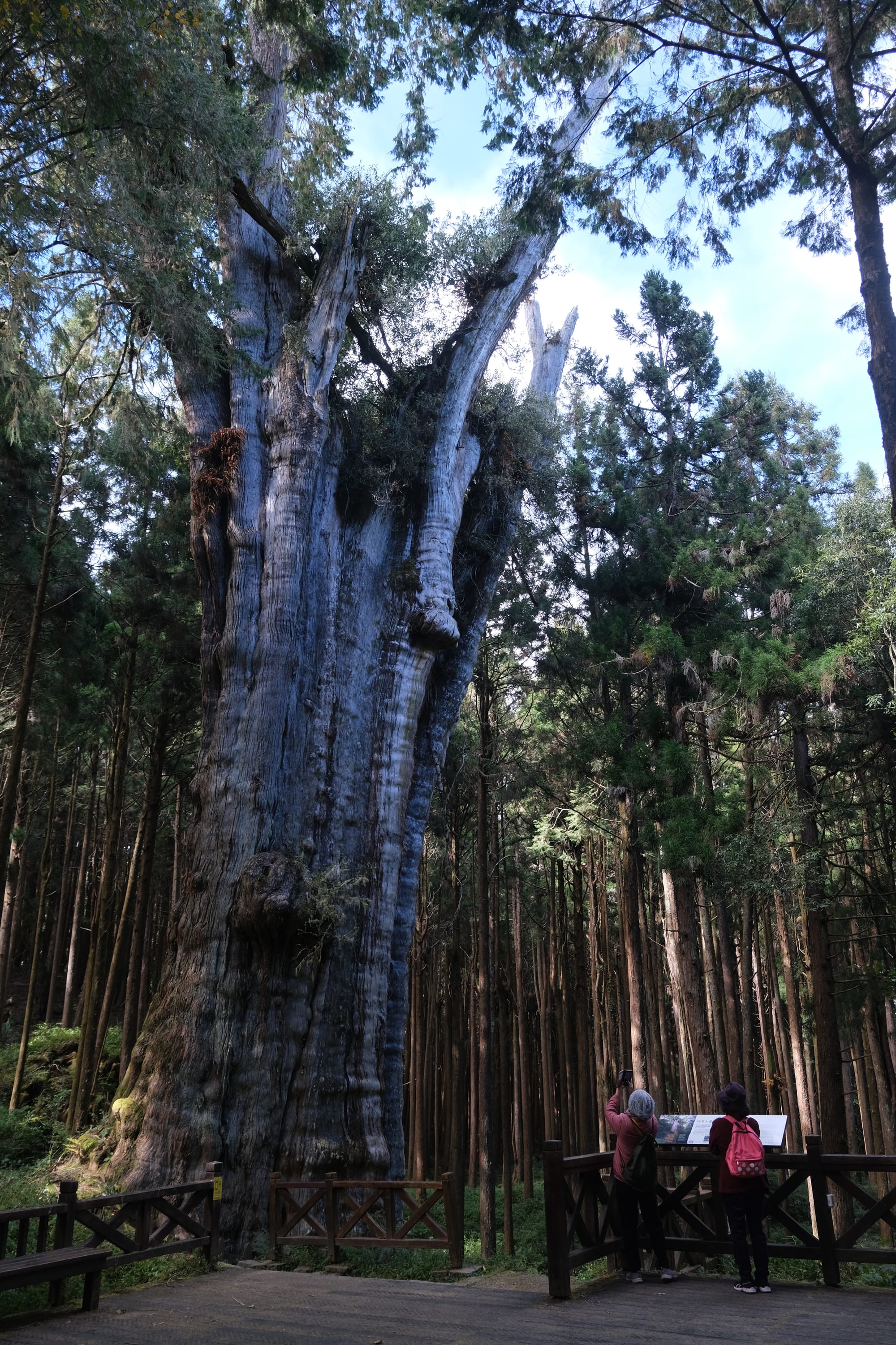 While many of the old trees were cut down, not all of them were, and there are still some ancient giant trees left standing in Alishan. This is the biggest one of them all and it was discovered by the Japanese when they were building the Shuishan branch of the railway. It is 16 meters in circumference and over 30 meters tall. Also, it technically is not one tree but rather a combination of 10 trees. When multiple trees grow in the same spot they often combine together to create a fusion tree. Many of the giant trees in Alishan are fusion trees.