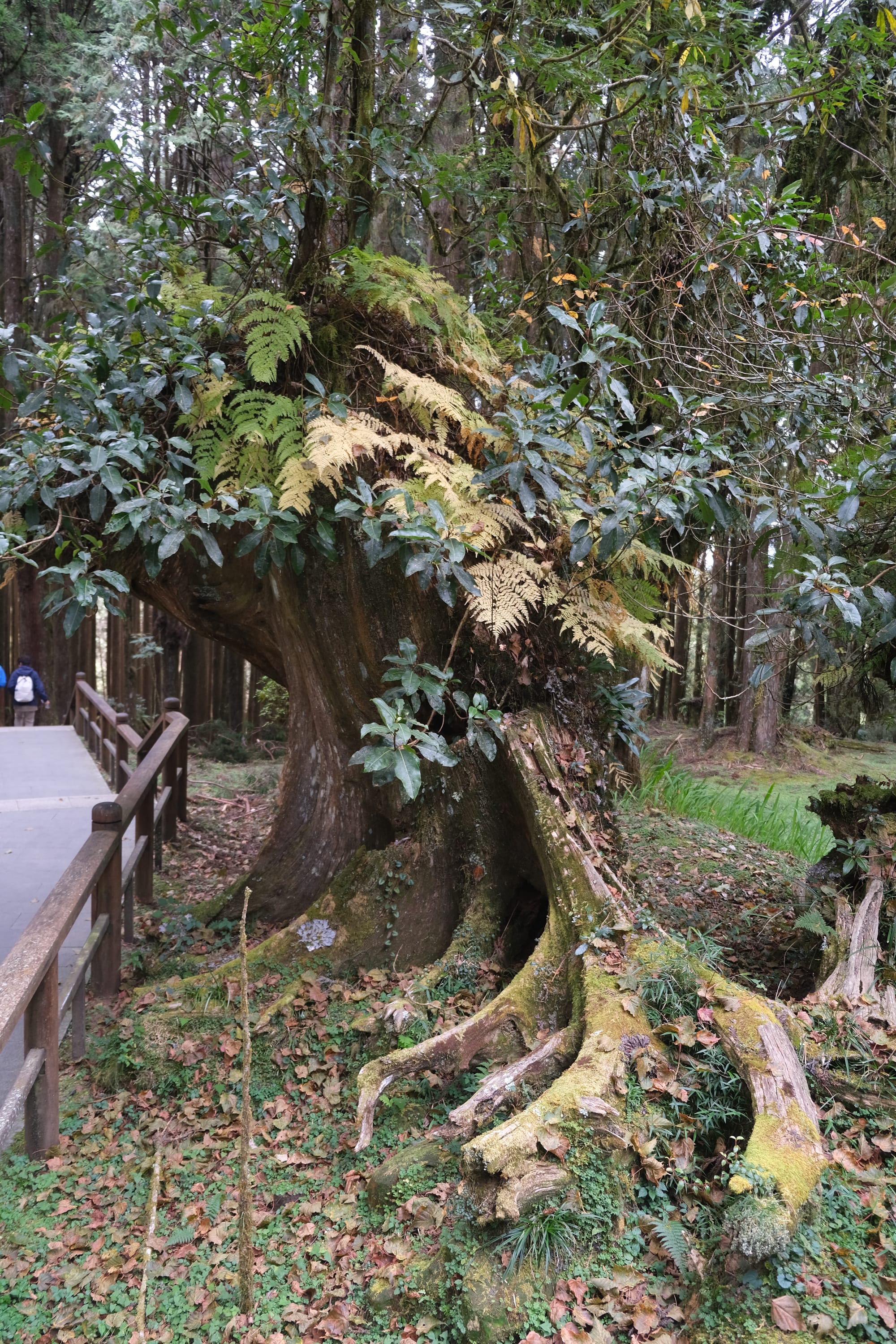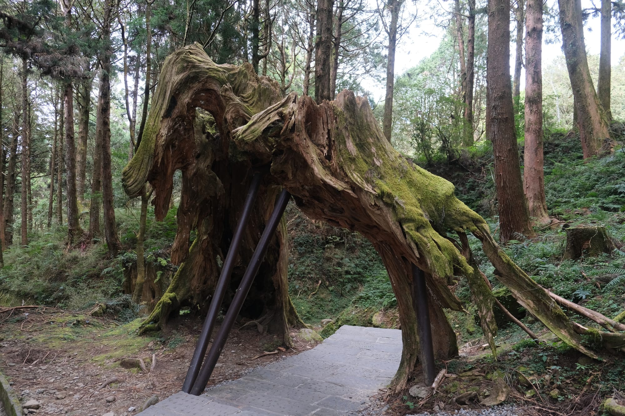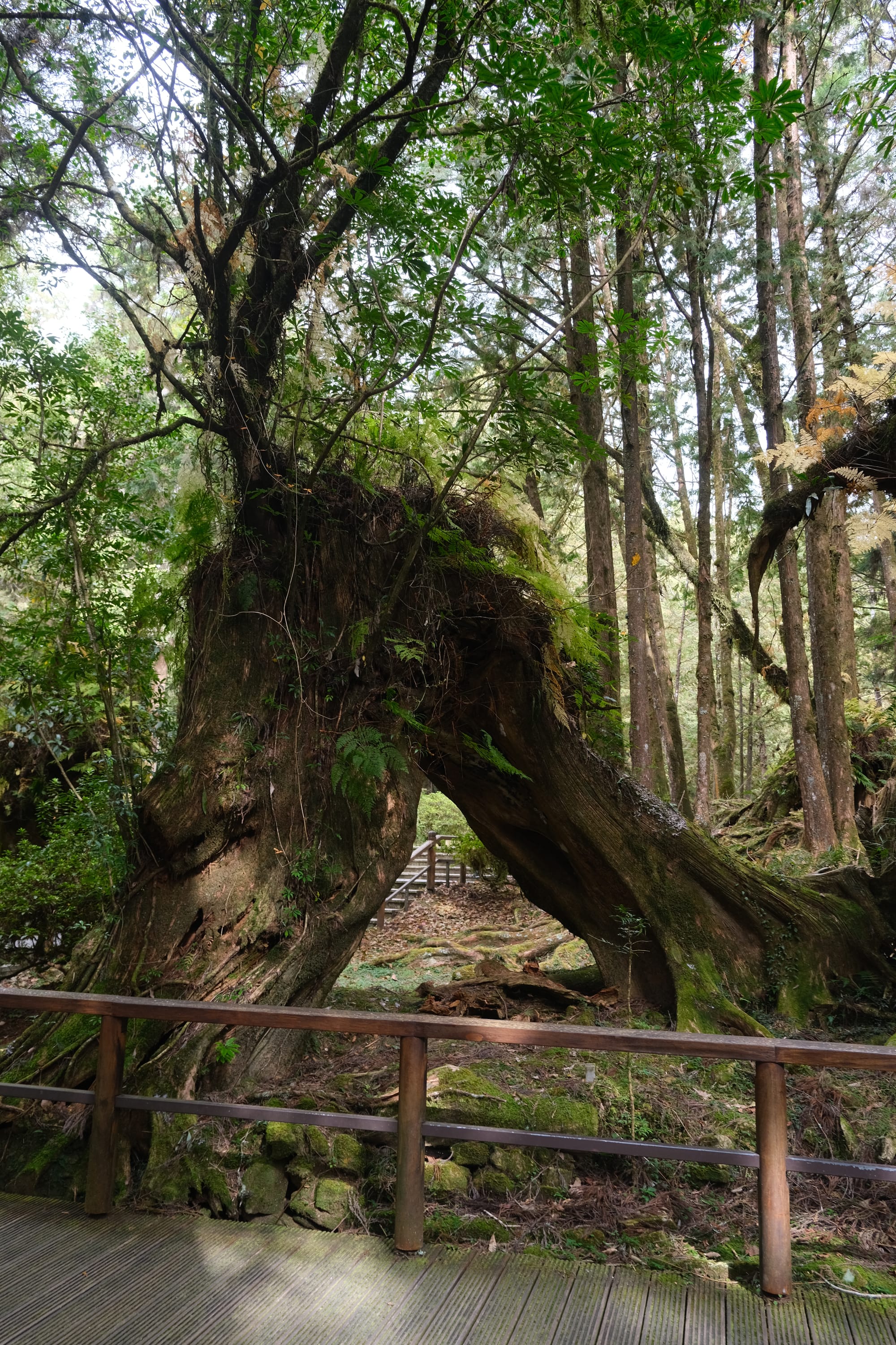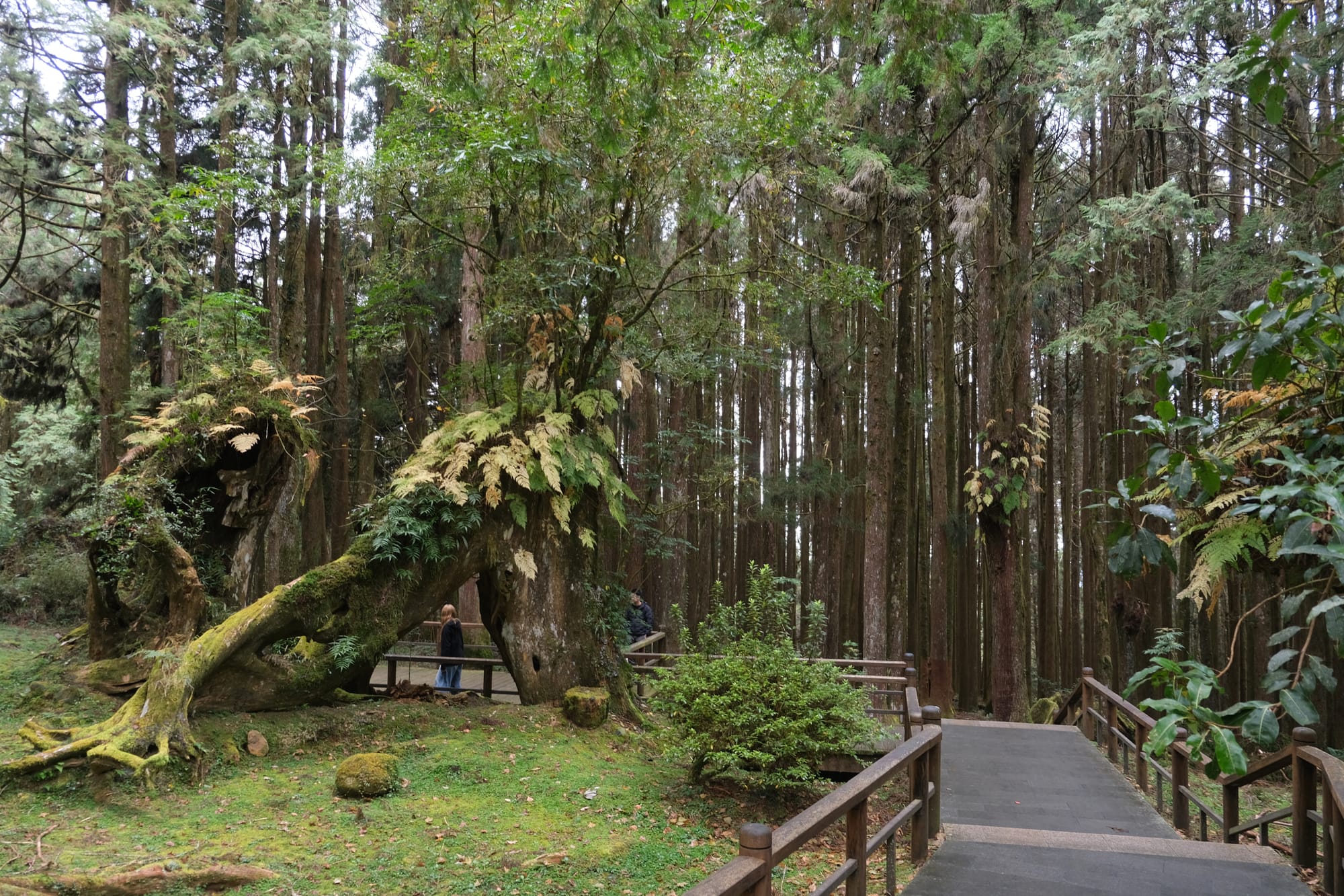 Centered around the sacred tree station there is a section of forest that is filled with over thirty ancient trees. These trees range from two hundred years old to over a thousand and they survived being cut down because they were slightly deformed. Healthy straight trees were first targeted for harvesting so some of the trees with lower quality wood remained. Now these trees are protected and preserved in Alishan forest.