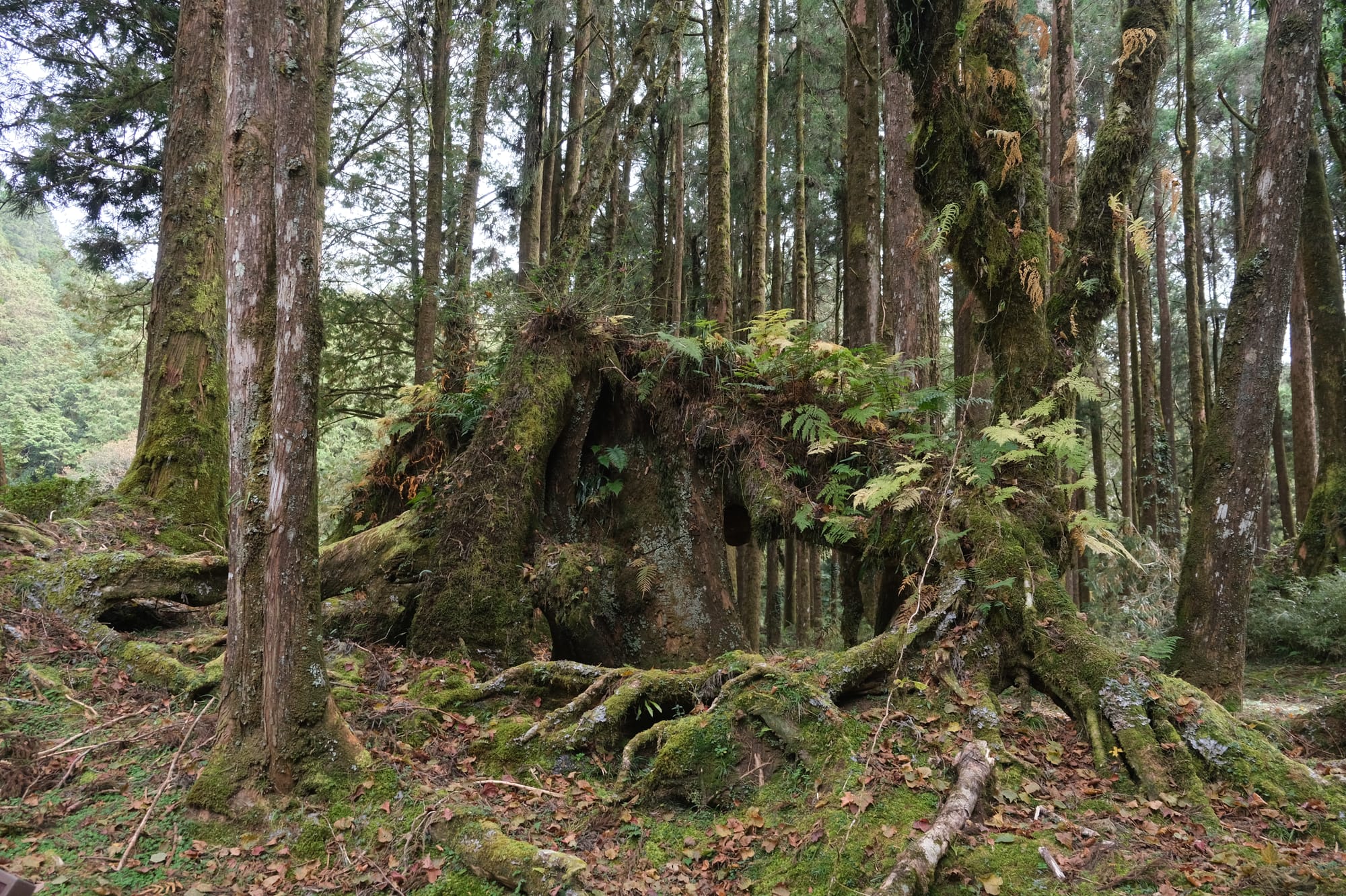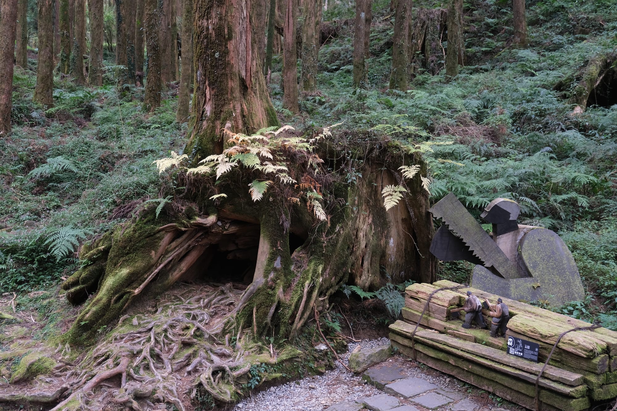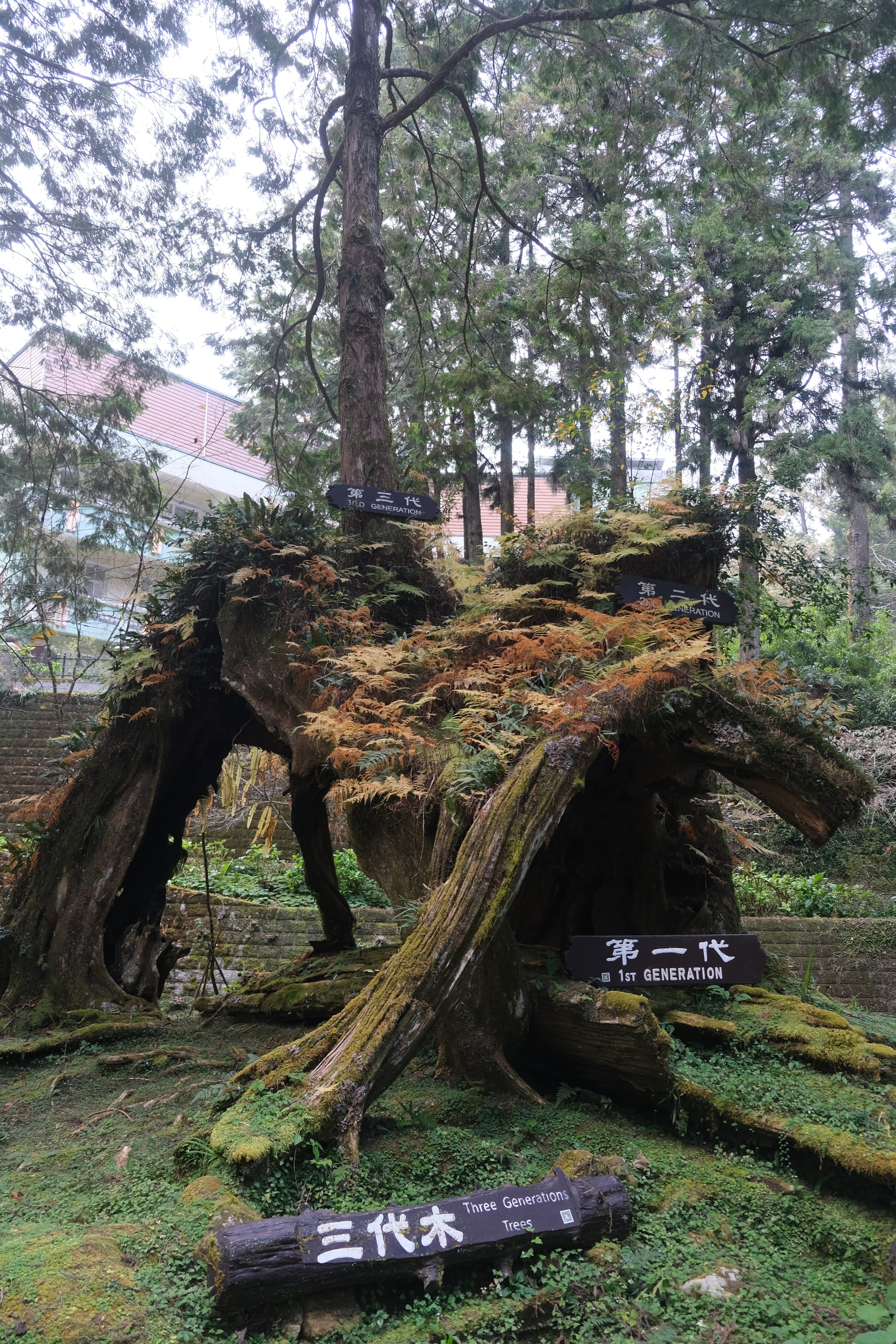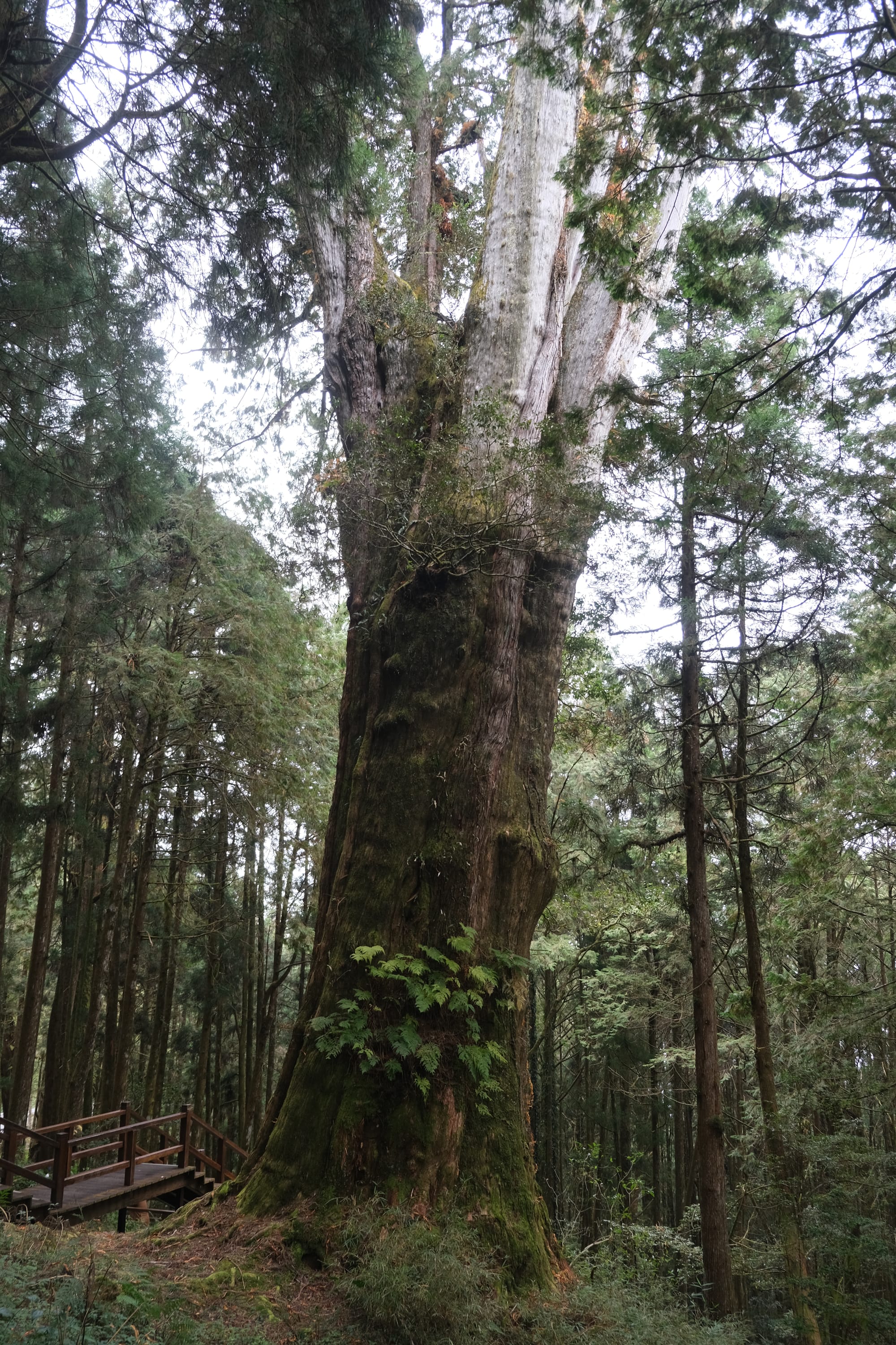 Centered around the sacred tree station there is a section of forest that is filled with over thirty ancient trees. These trees range from two hundred years old to over a thousand and they survived being cut down because they were slightly deformed. Healthy straight trees were first targeted for harvesting so some of the trees with lower quality wood remained. Now these trees are protected and preserved in Alishan forest.