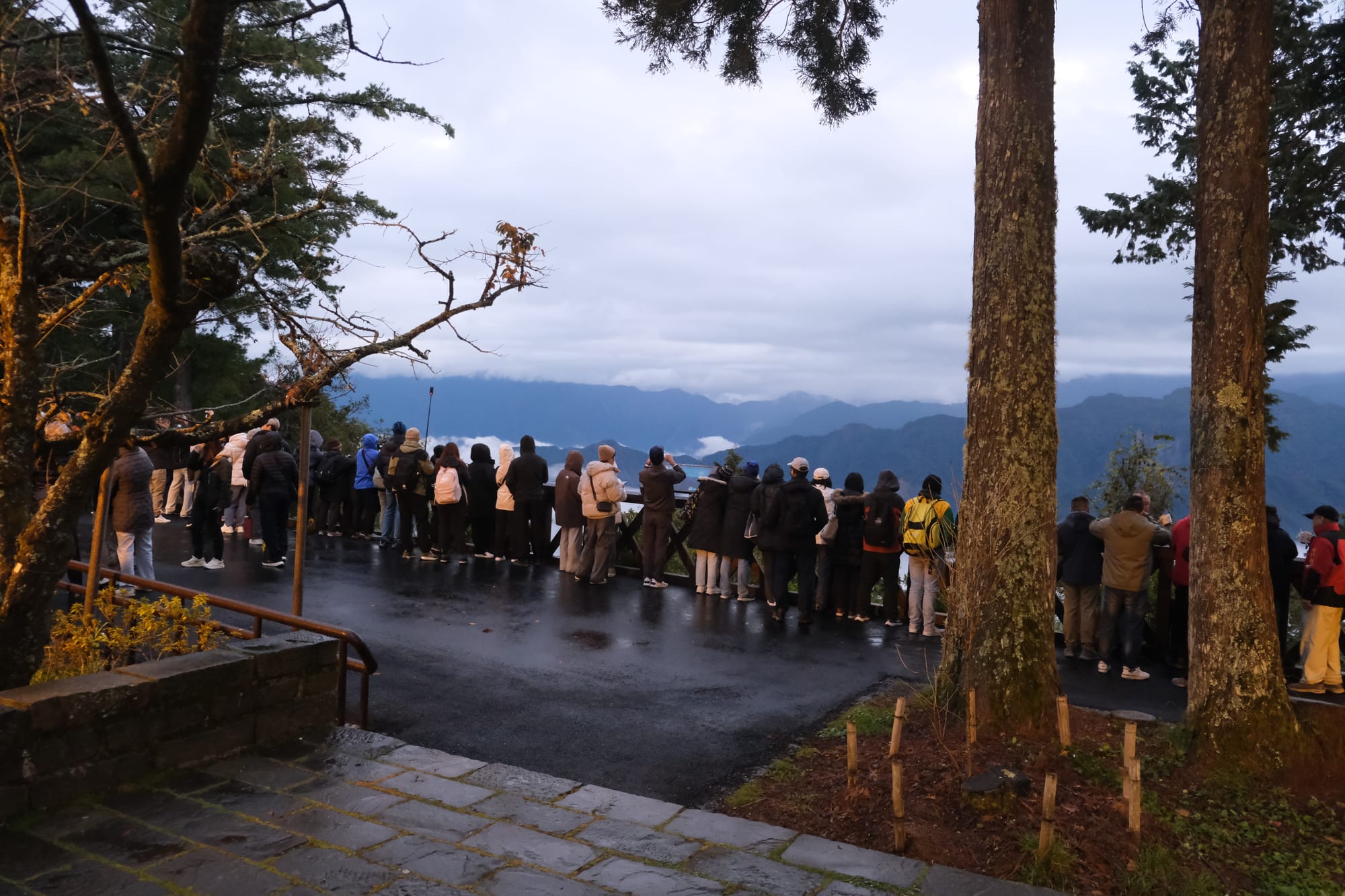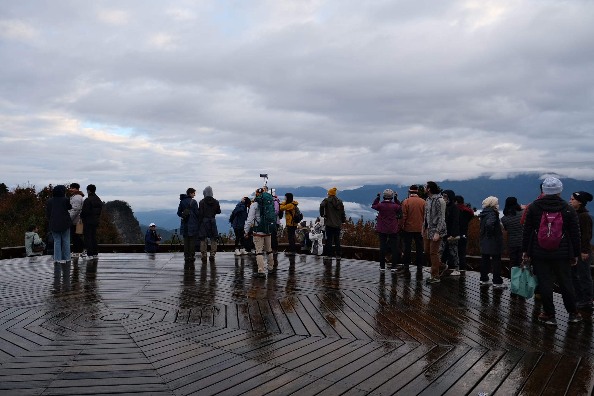 On my first day in Alishan I learned that every day there is a sunrise train to Zushan mountain. This train only goes to the peak once a day and only for the sunrise. The station at Zushan is the highest railway station in Taiwan and it is the furthest active service station from the main Alishan village. I decided to take the sunrise train twice in a row, for the first day I watched the sunrise from Zushan, on the second day I walked to the nearby Ogasawara peak, although that day it was cloudy so we didn't see the sun. At both peaks there was a viewing platform looking east, towards the sunrise and the Jade mountains, the tallest mountains in Taiwan.