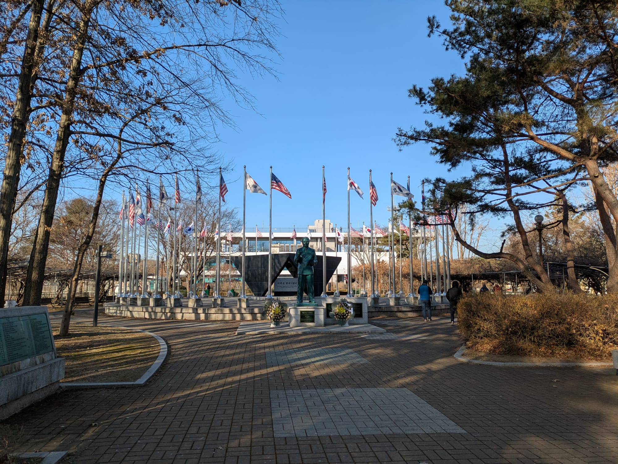 This park was sort of a mix between a war memorial, museum, and amusement park. The park is located along the river just before the DMZ proper. I believe it is the closest civilians can get to North Korea without crossing the Civilian Control Line (CCL) and entering the area run by the military, where special permission is required. When we would later cross the bridge and this line, a military personnel boarded the bus and checked everyone's identification.