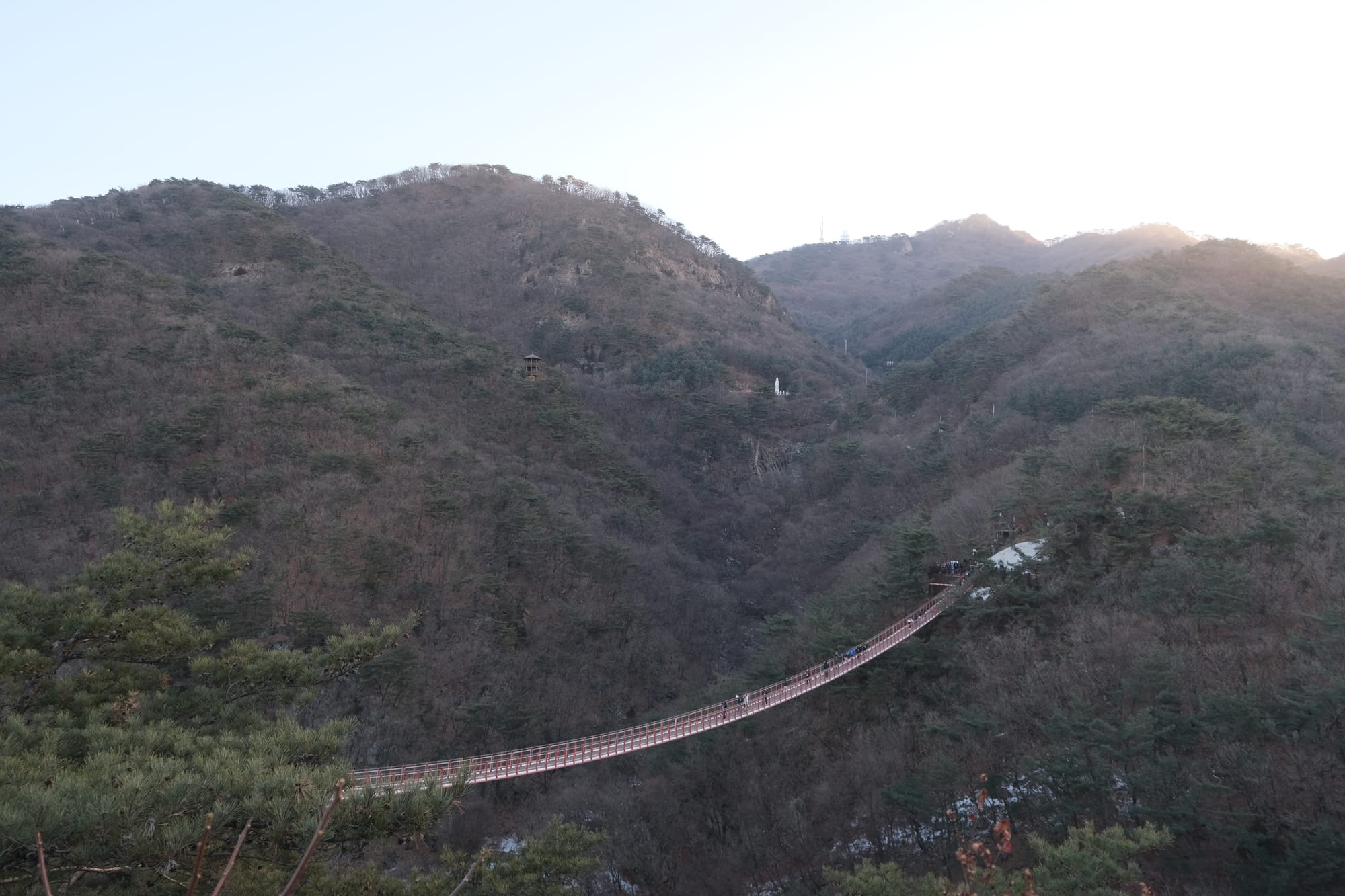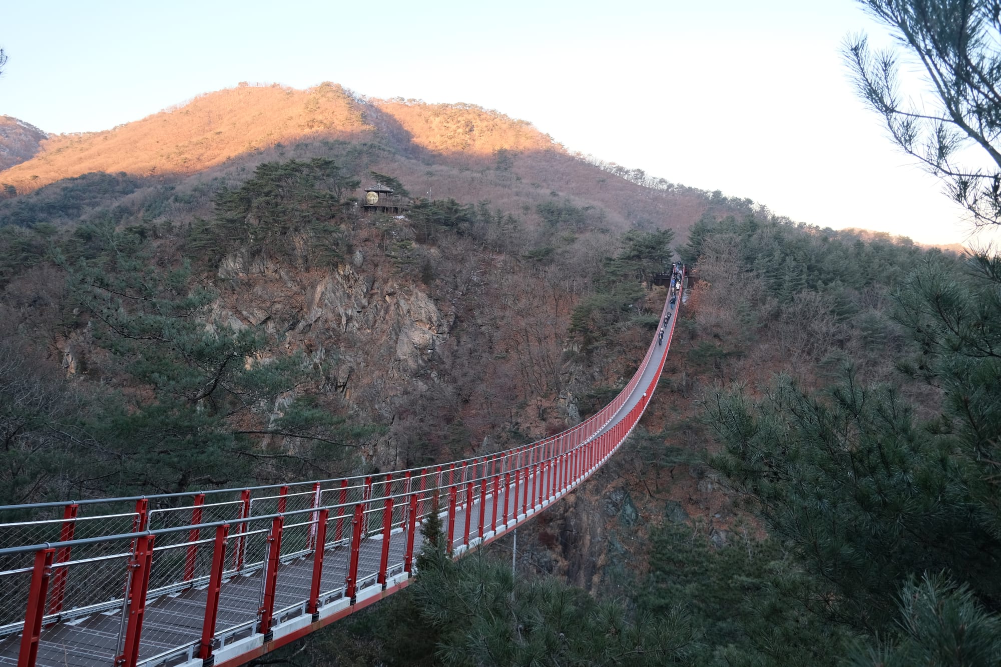 This bridge is located in the mountains close to the DMZ but before all the military checkpoints. During the Korean war this area was a battle-zone, we saw some old military bunkers on the short hike to the suspension bridge.