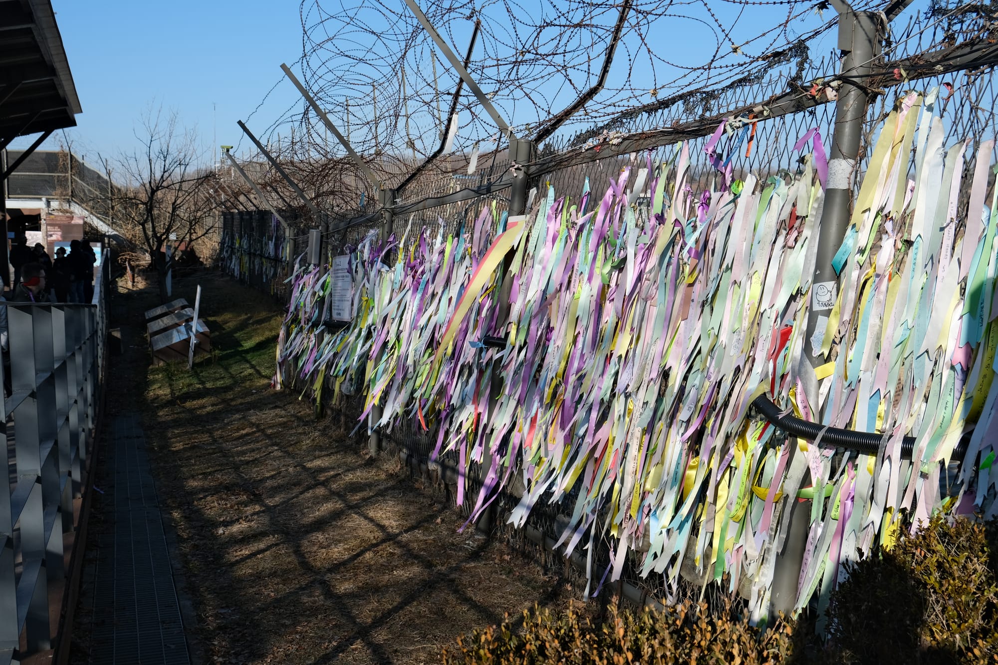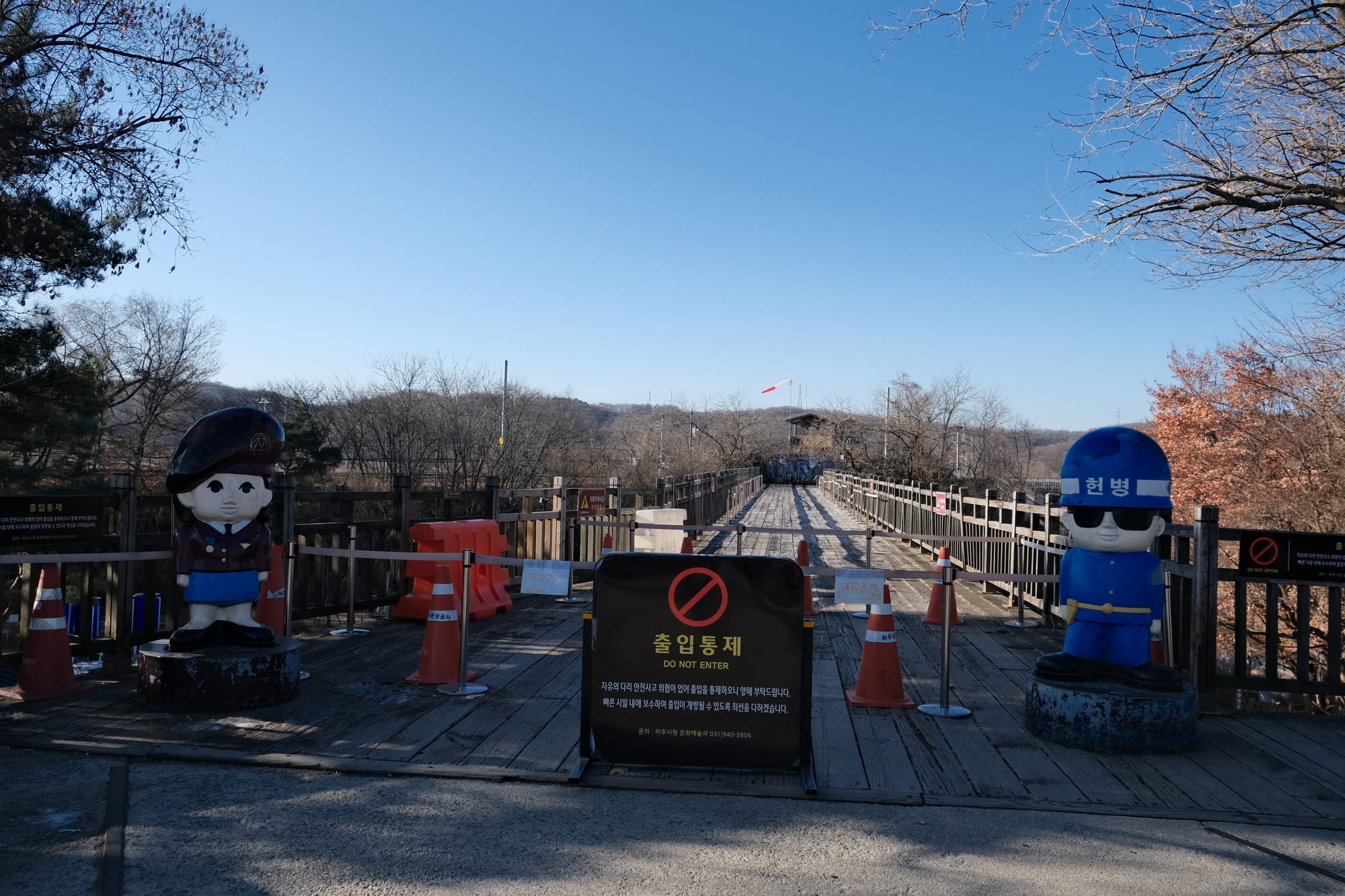 On the last day of 2024 we joined a tour of the DMZ between south and north Korea. We were part of a large group on a bus that could fit up to 50 people, and because of the military schedules, we had to leave Seoul at 6:40 AM. Our tour guide was Lina, she was an excellent guide, a local who could provide not only the history of the demilitarized zone but share her own experiences with it. Our tour included five main stops, these were: the red suspension bridge, the peace park, the third tunnel, the Dora Observatory, and finally a stop at a market/buffet restaurant where we ate a late lunch.