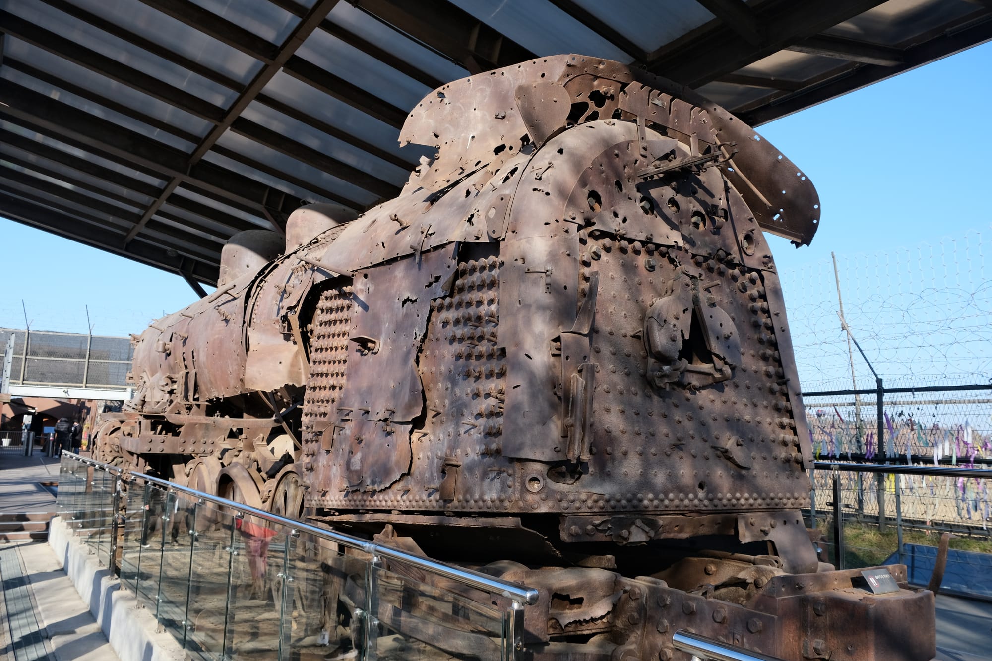 The Imjingak Peace Park park was created as a symbol for unity, as a place for South Koreans to connect with their lost homes and loved ones in the north. There is a bridge here (that was destroyed then later re-built) that was used for the South Korean prisoners of war to return back to the South from the North. There is an old steam locomotive that was preserved from the Korean war, all shot up with bullet holes. There is also some monuments/memorials built to the Korean war, including something like an altar where South Koreans can pay respect to ancestors who's graves they can no longer access. Our guide, Lina, told us how she used to come here as a child with her family to connect with her lost family members in the North. The amusement park nearby was set up as a place for all the kids to have some fun. Koreans still visit the park and pray for peace and re-unification, although our guide told us that there were fewer visitors now. The new generation of South Koreans do not have the same connections with the north as those that lived through the war.