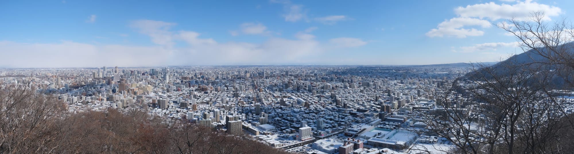 The view of Sapporo form the summit. The snow was still fresh on many of the roofs of the city buildings. The second image is a zoom on the centre of the city, where the tallest buildings are.