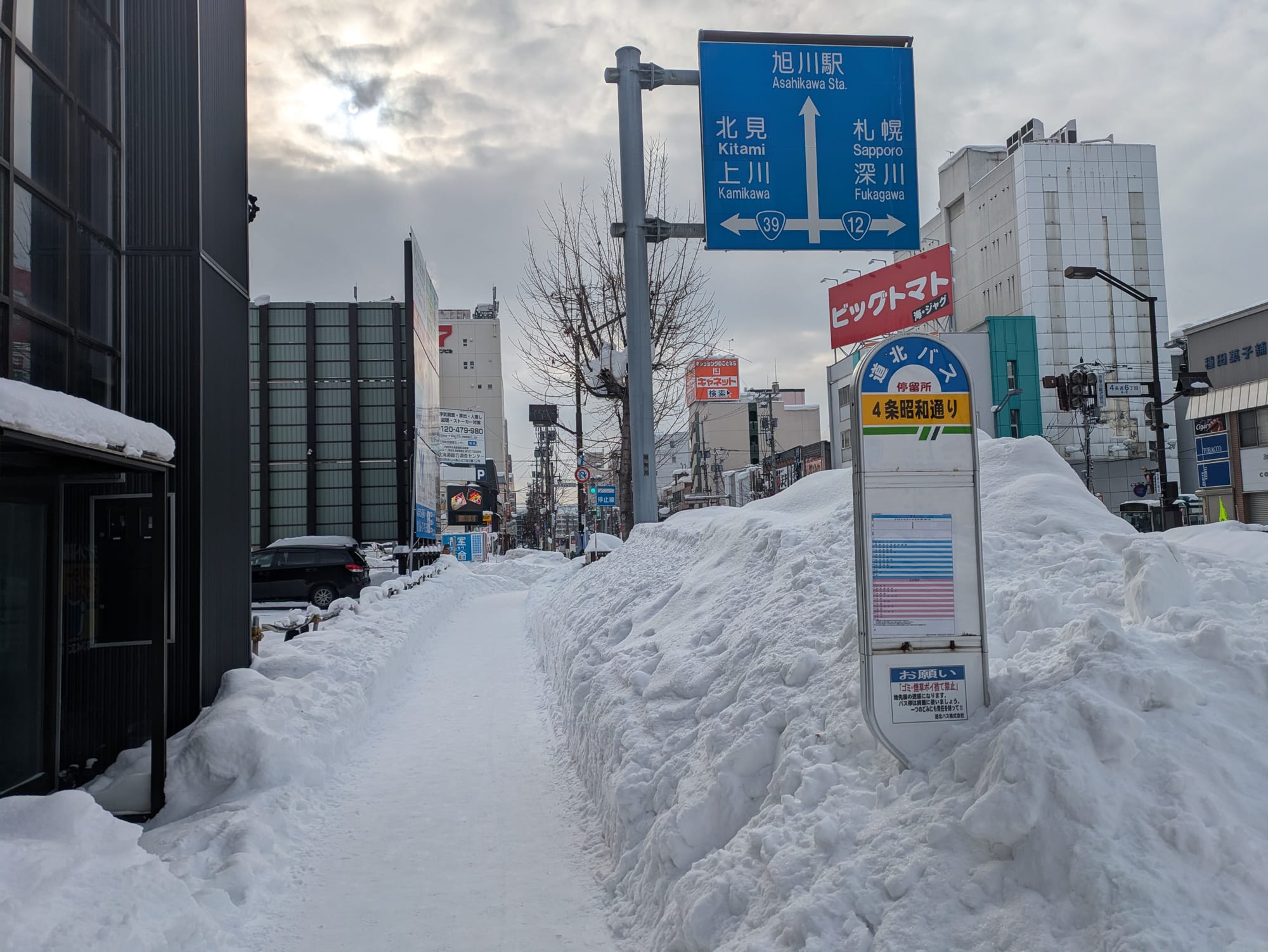 On the Sunday I went for a day trip to Asahikawa. This was the most northern city I would visit in Japan. I didn't end up doing much here, beyond walking around the city, as I was unable to figure out a plan to the nature areas and the sight I did visit turned out not to be that great. However, there was a lot of snow in Asahikawa and I did find this interesting, so I wanted to share a couple pictures I took in the city.