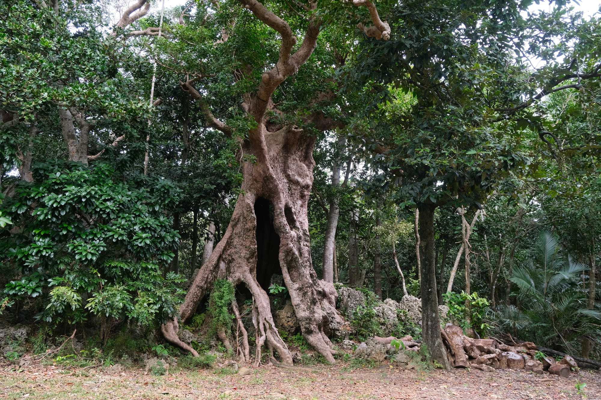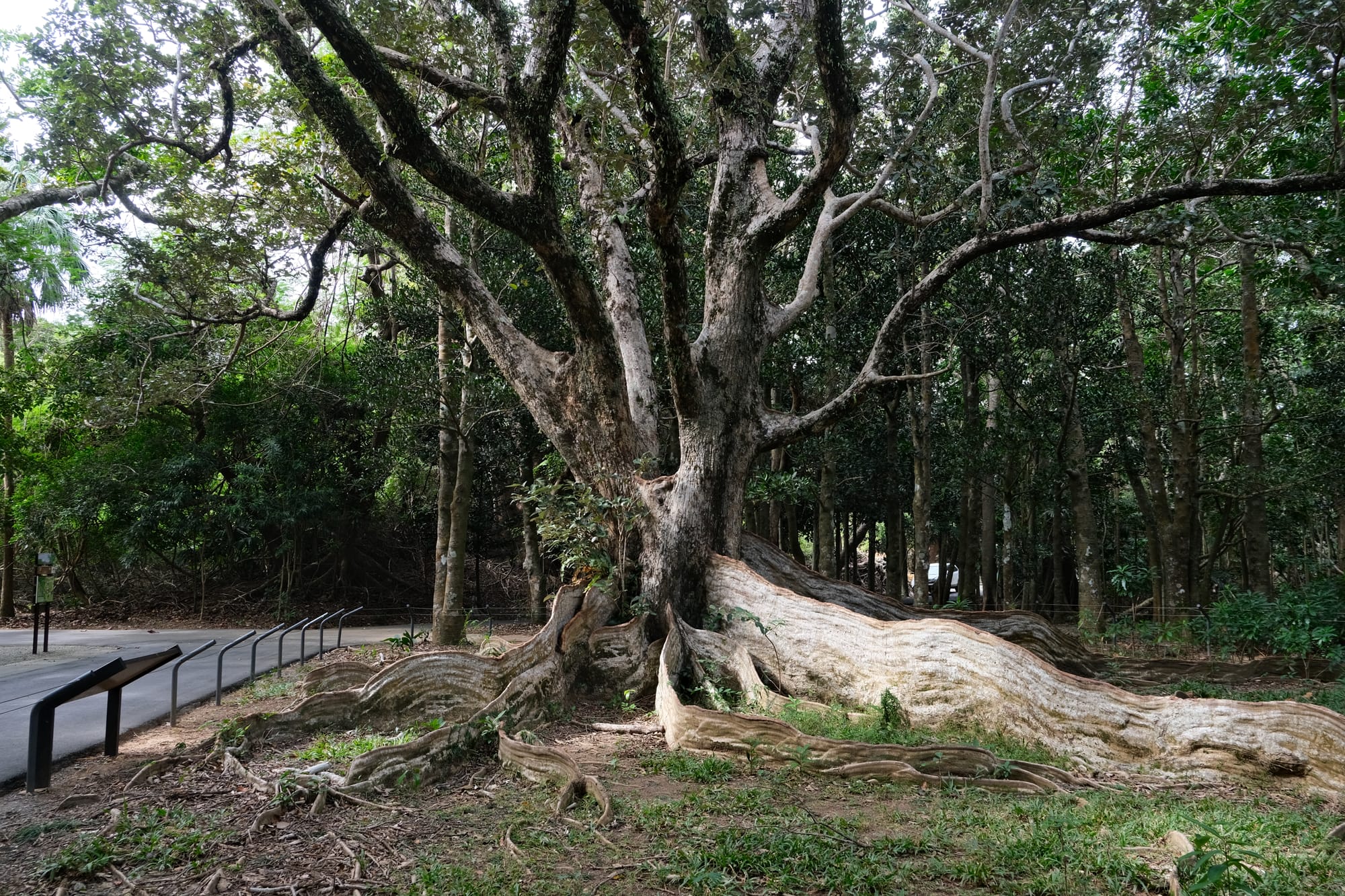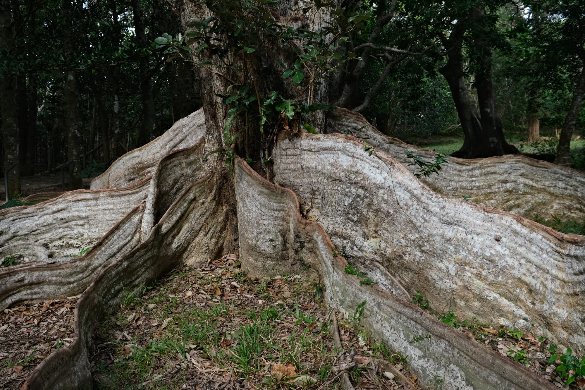 The Looking Glass Tree. This tree has the largest buttress roots in Taiwan. The darker brown section at the top of each roots is the part that is still alive and indicates that these roots are still growing.