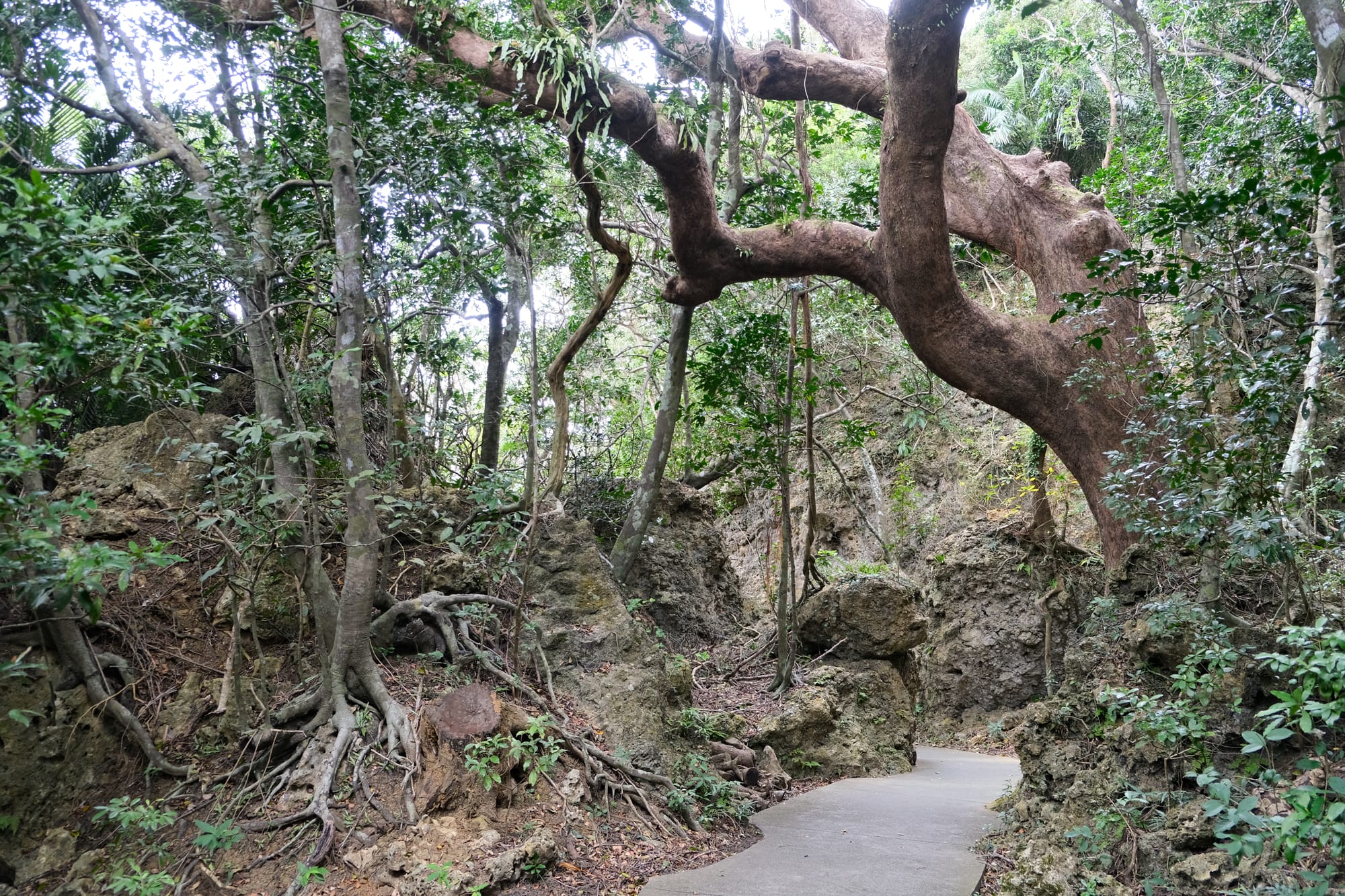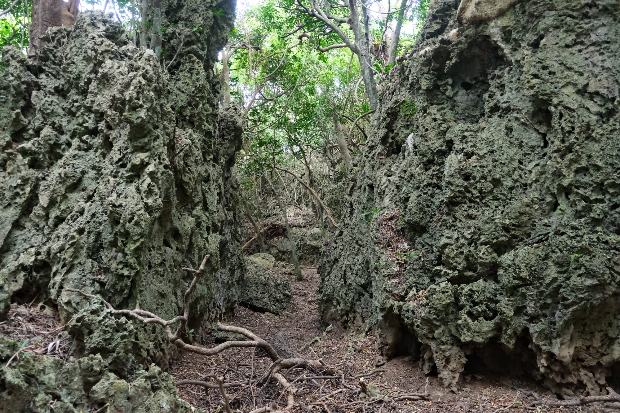 My first sight of the coral limestone visible on either side of the trail. I already thought this was fantastic but it was only the beginning.