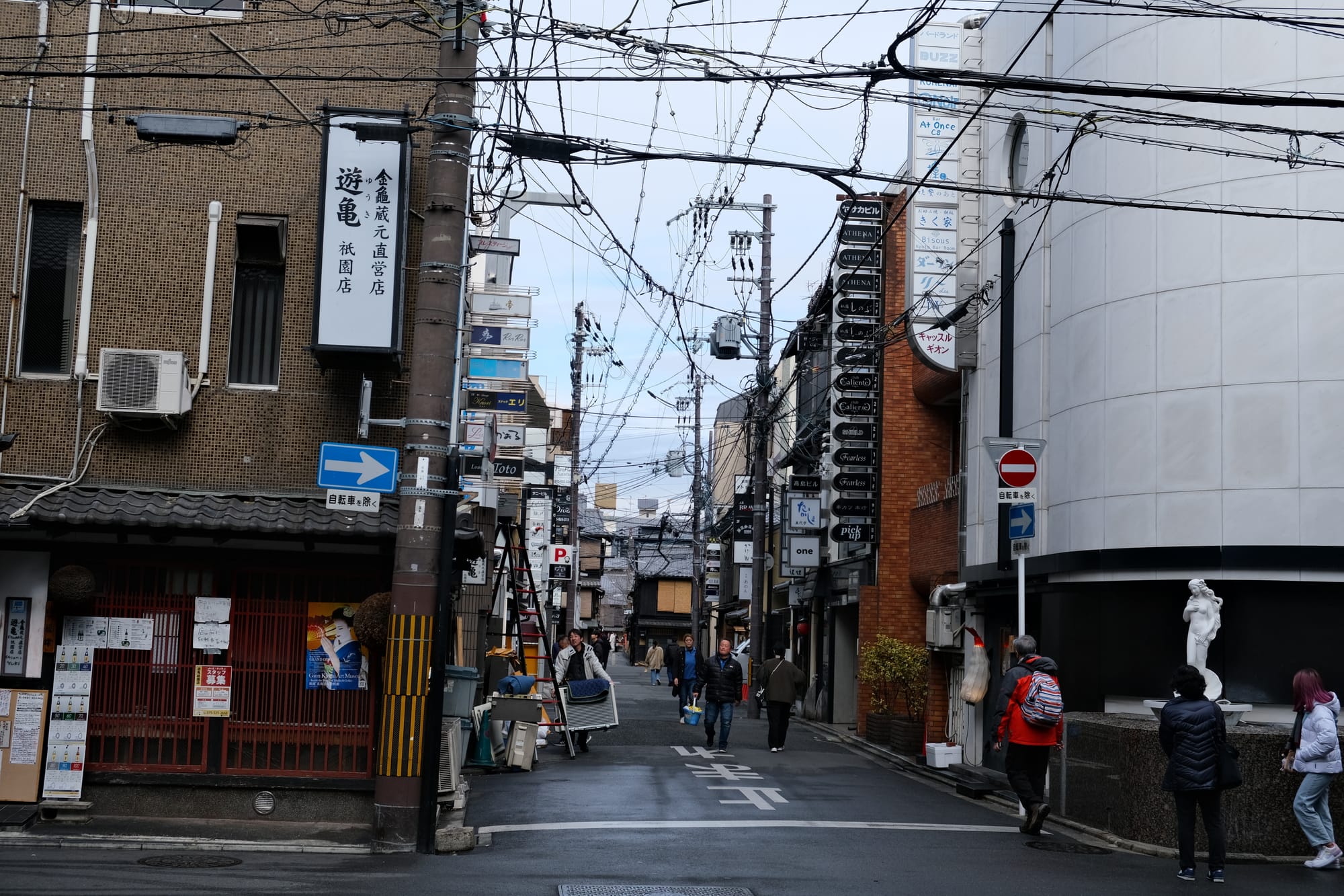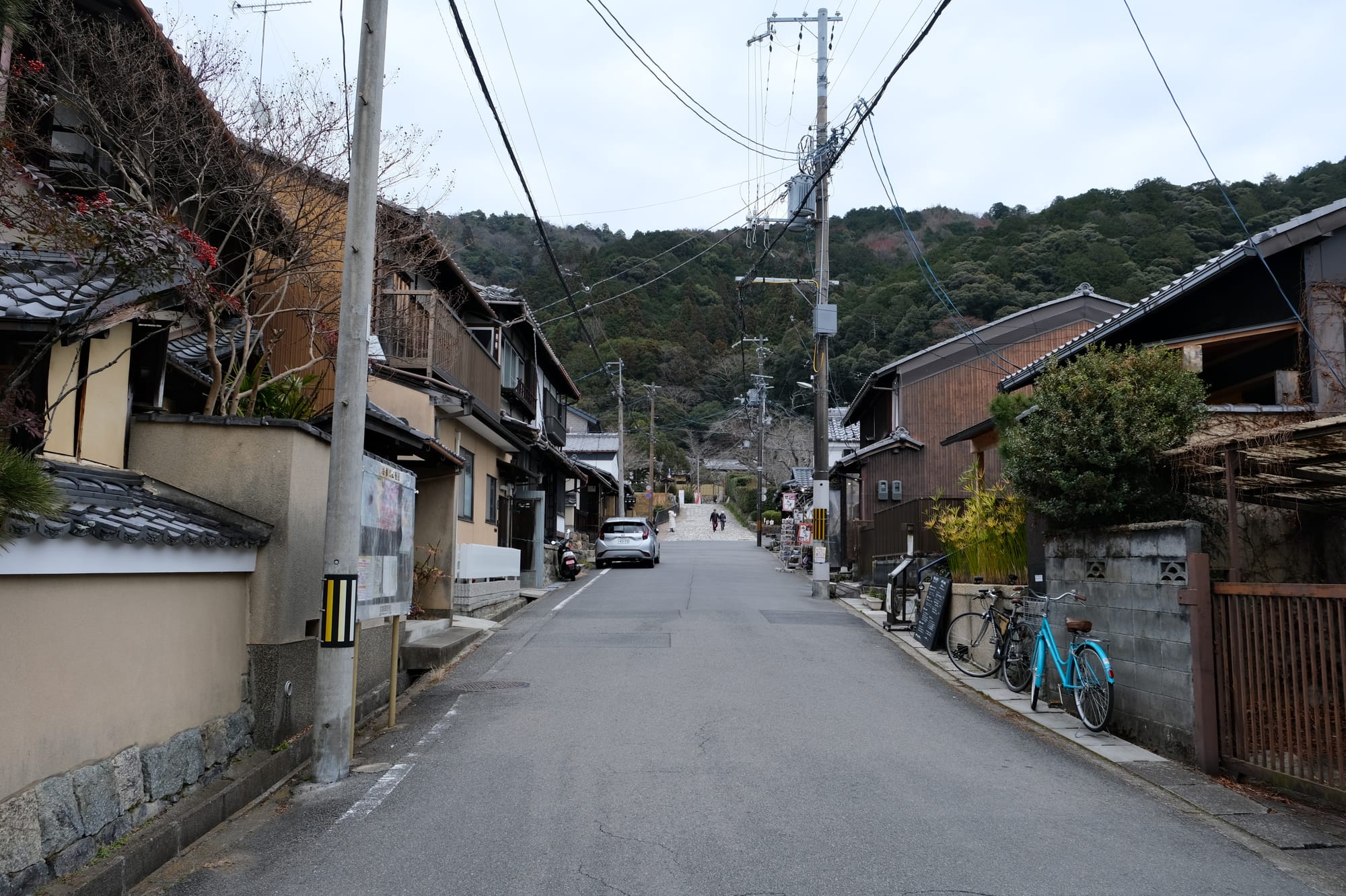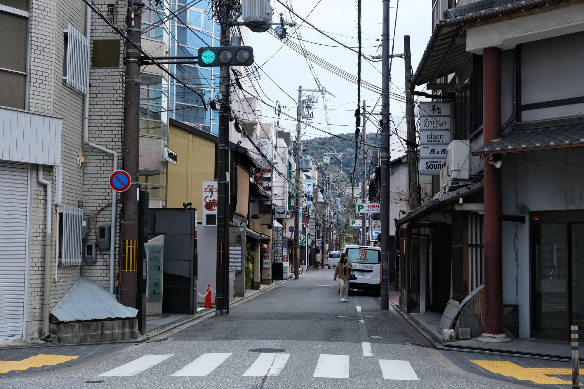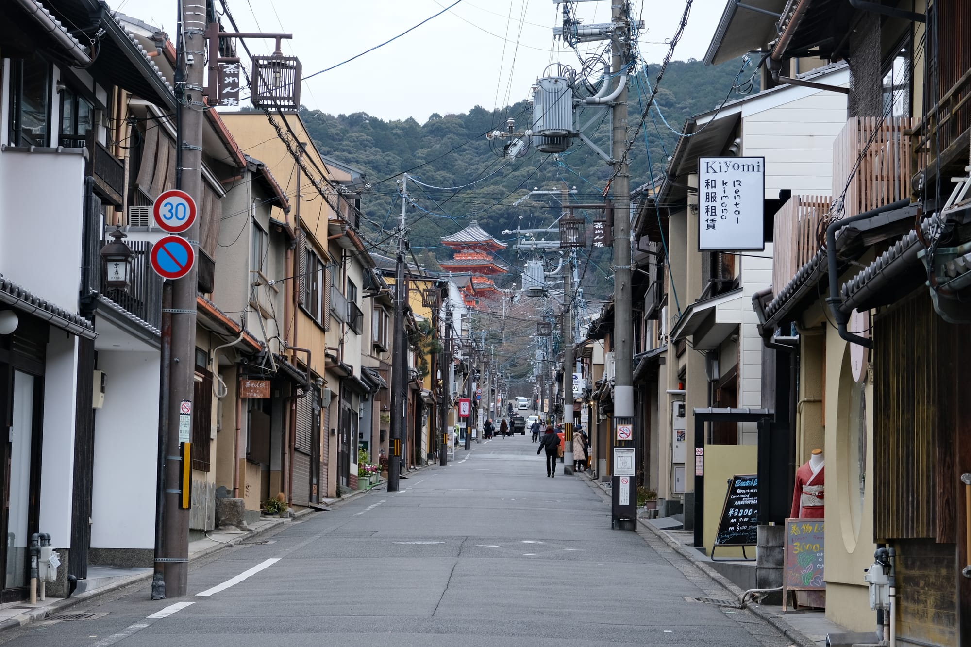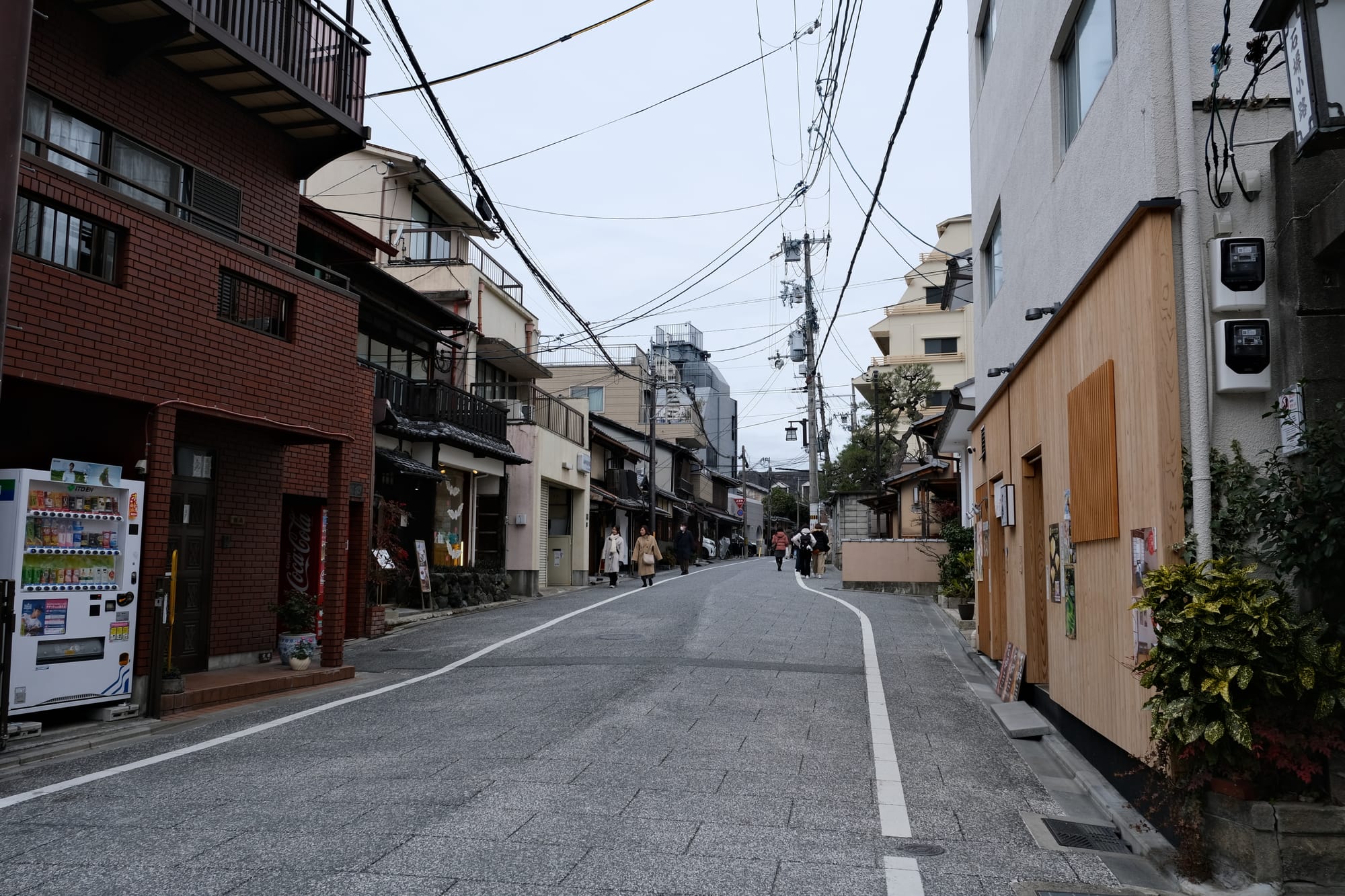 There were many narrow streets in Kyoto and they varied wildly, and could change rapidly, from modern streets with chaotic cables overhead, to calm quiet streets with the traditional buildings. Both of these photos were actually taken on the same street (Kiritoshi Street), just at different sections.