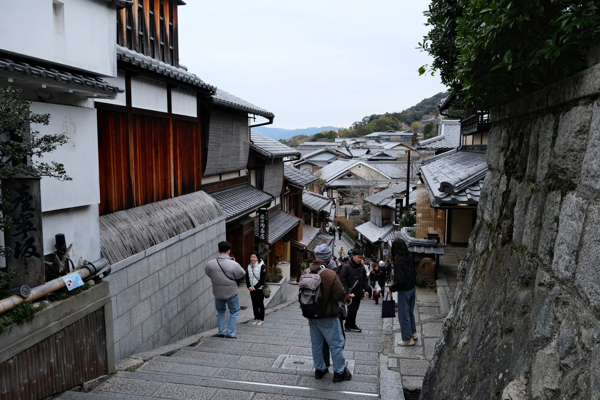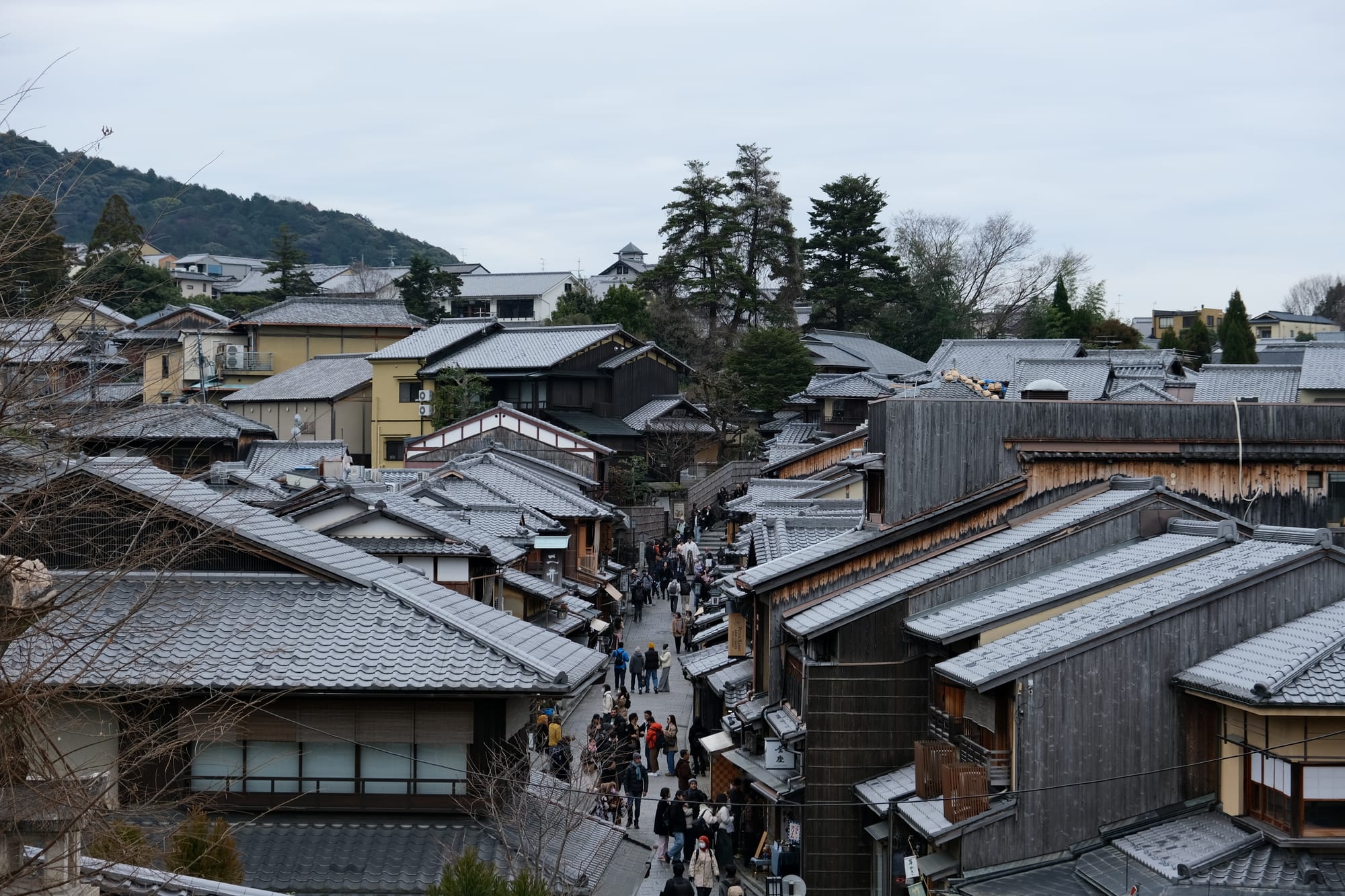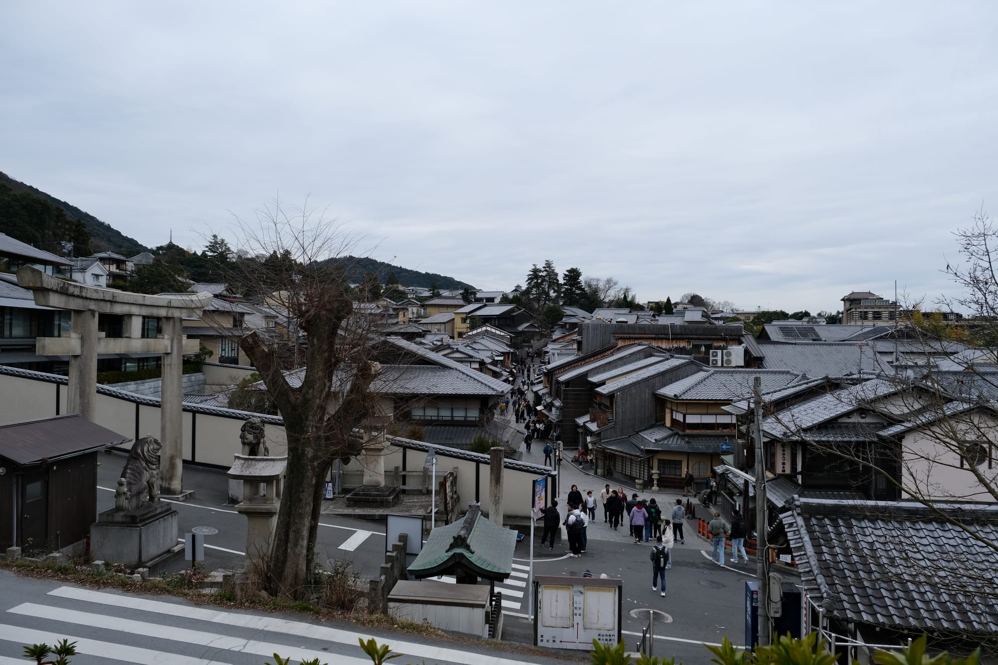 I crossed a major road and then looked back from a small viewpoint where I could see the Ninen Zaka Path I had just walked along.