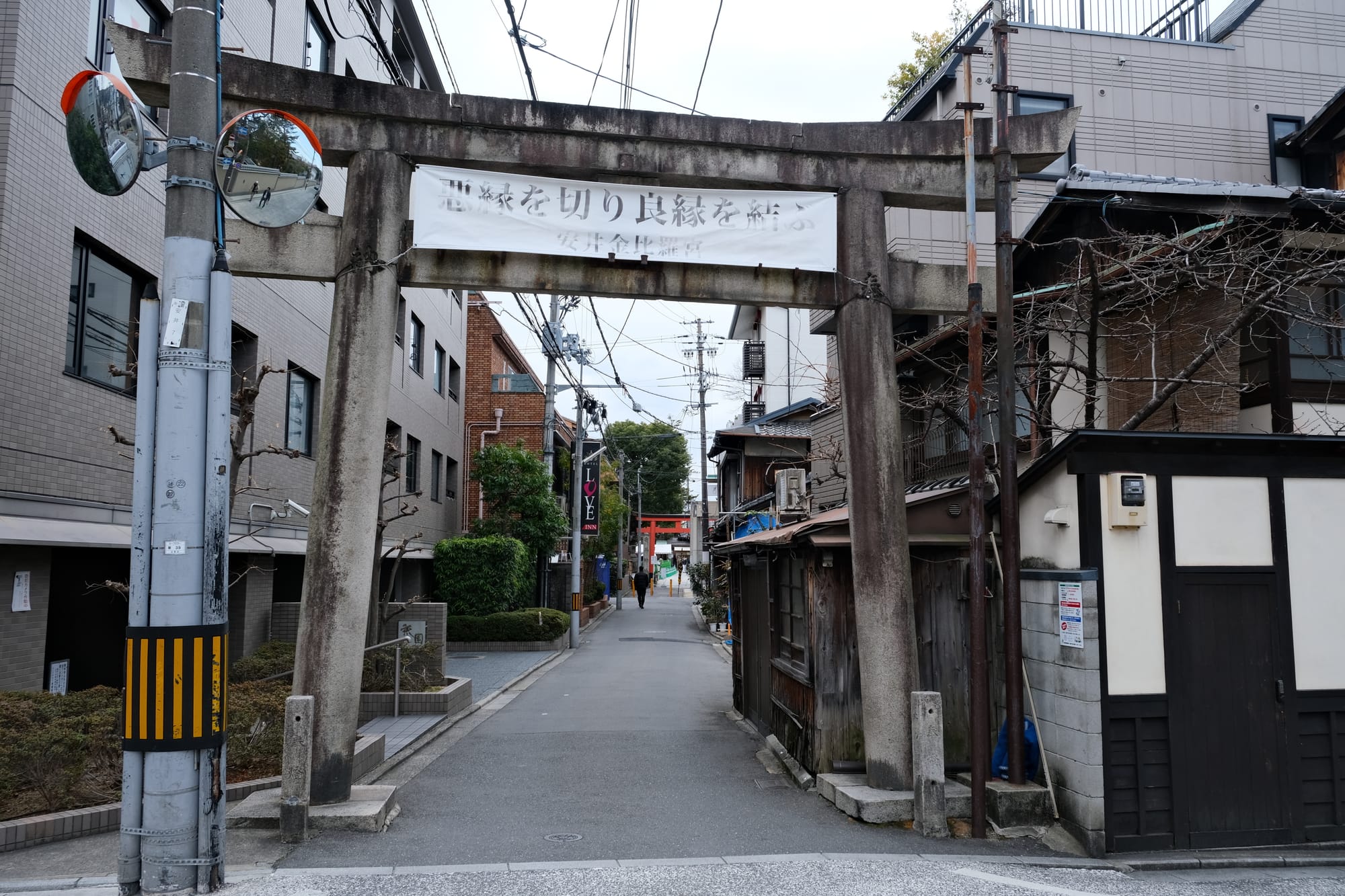 This photo was taken while I walked along Yasui Kitamon Street (安井北門通). The second image, with a Shinto shrine, is looking down a side street.
