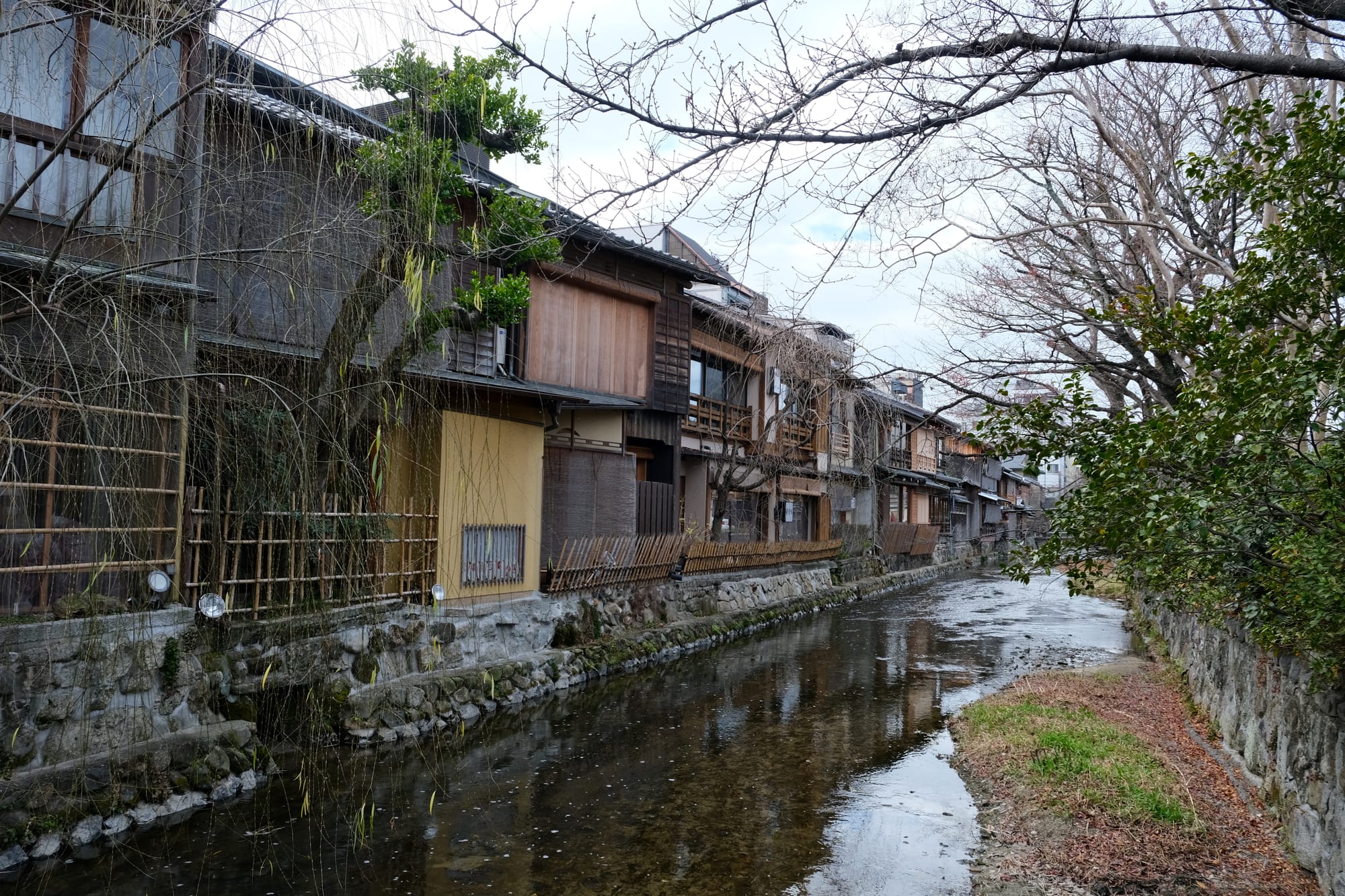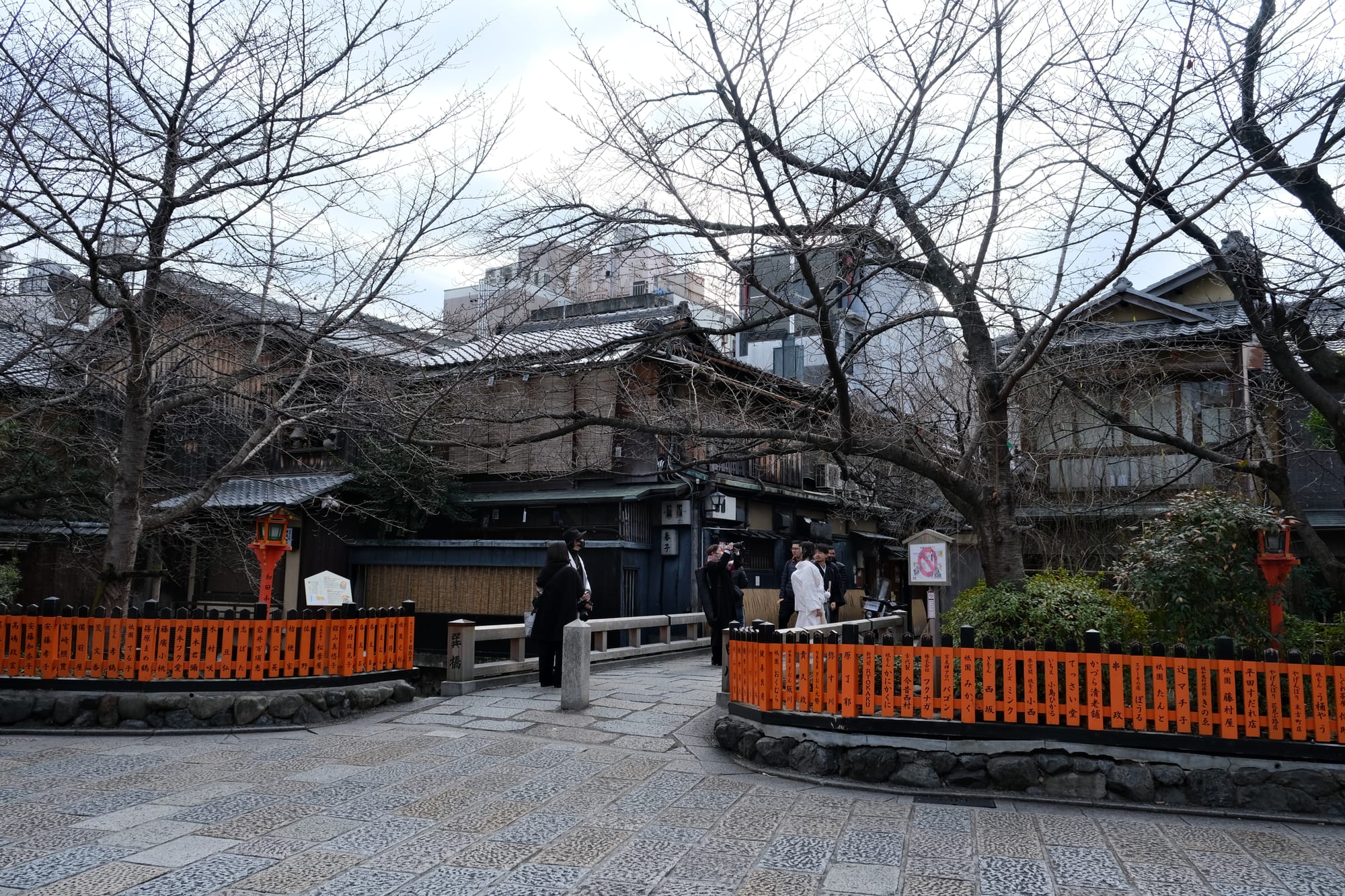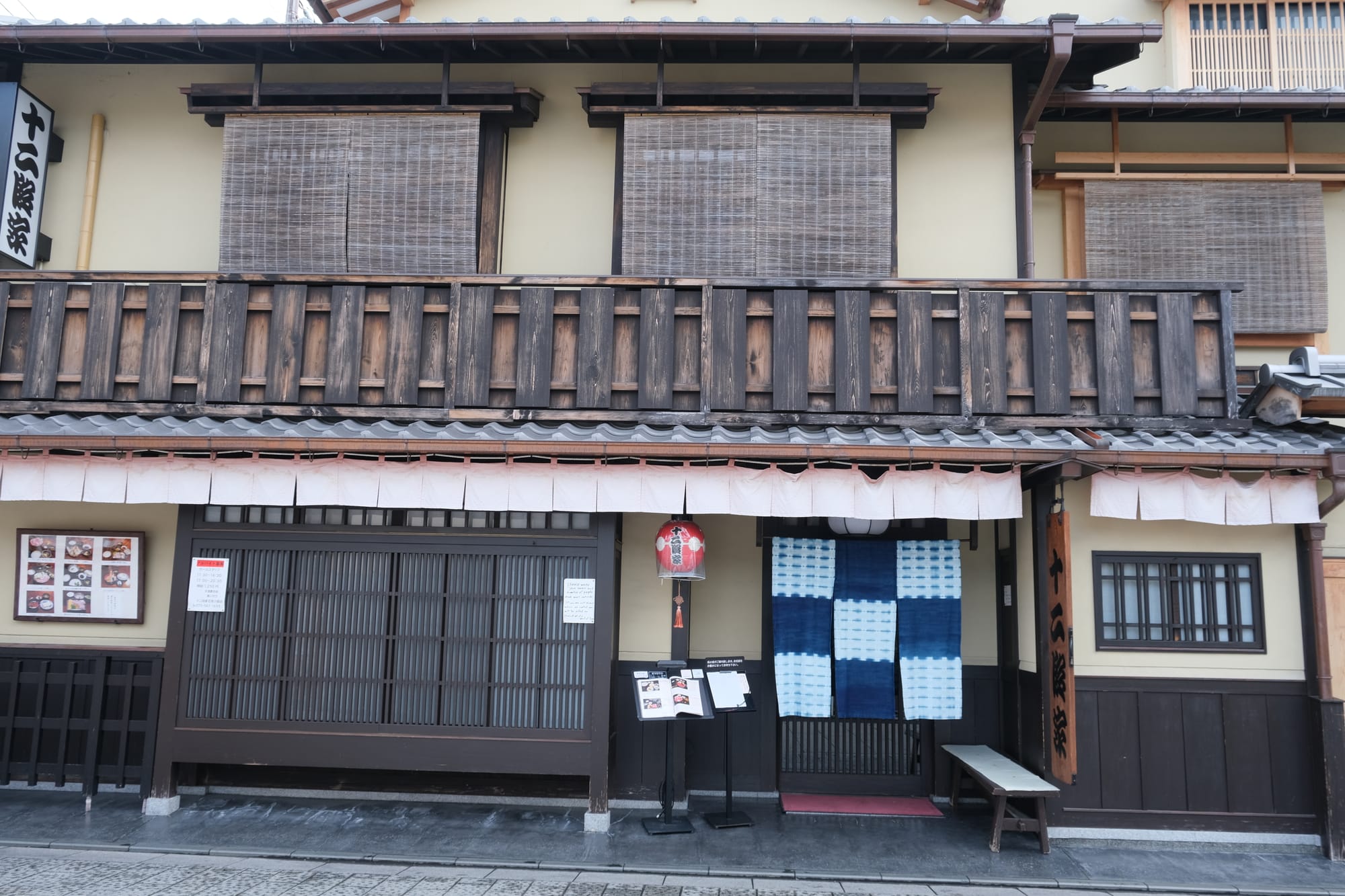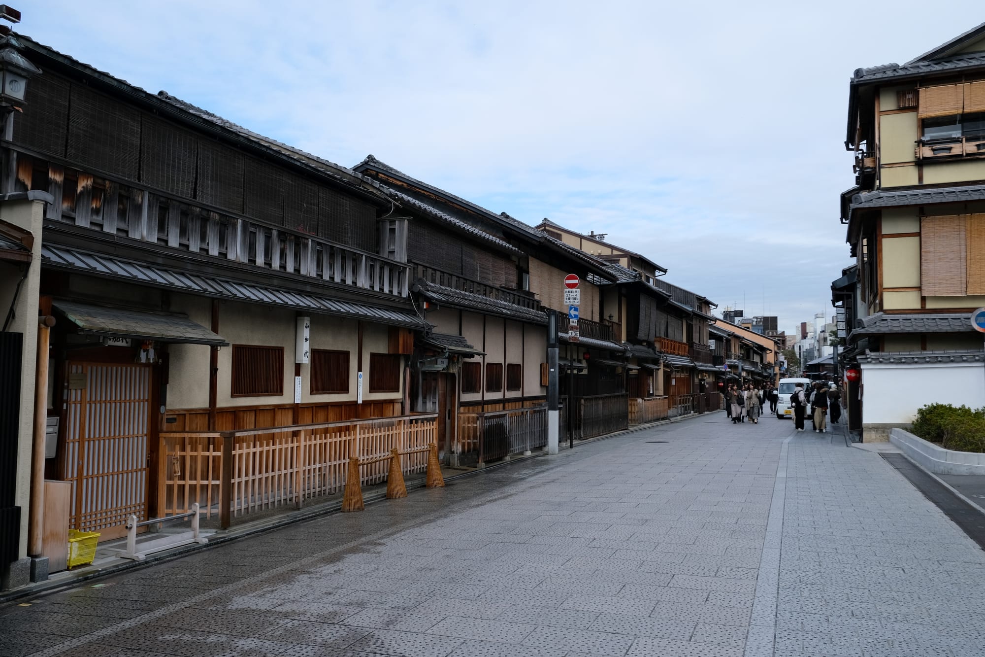Another beautiful Kyoto street, Hanamikoji-dori, with many wooden buildings in the traditional style.