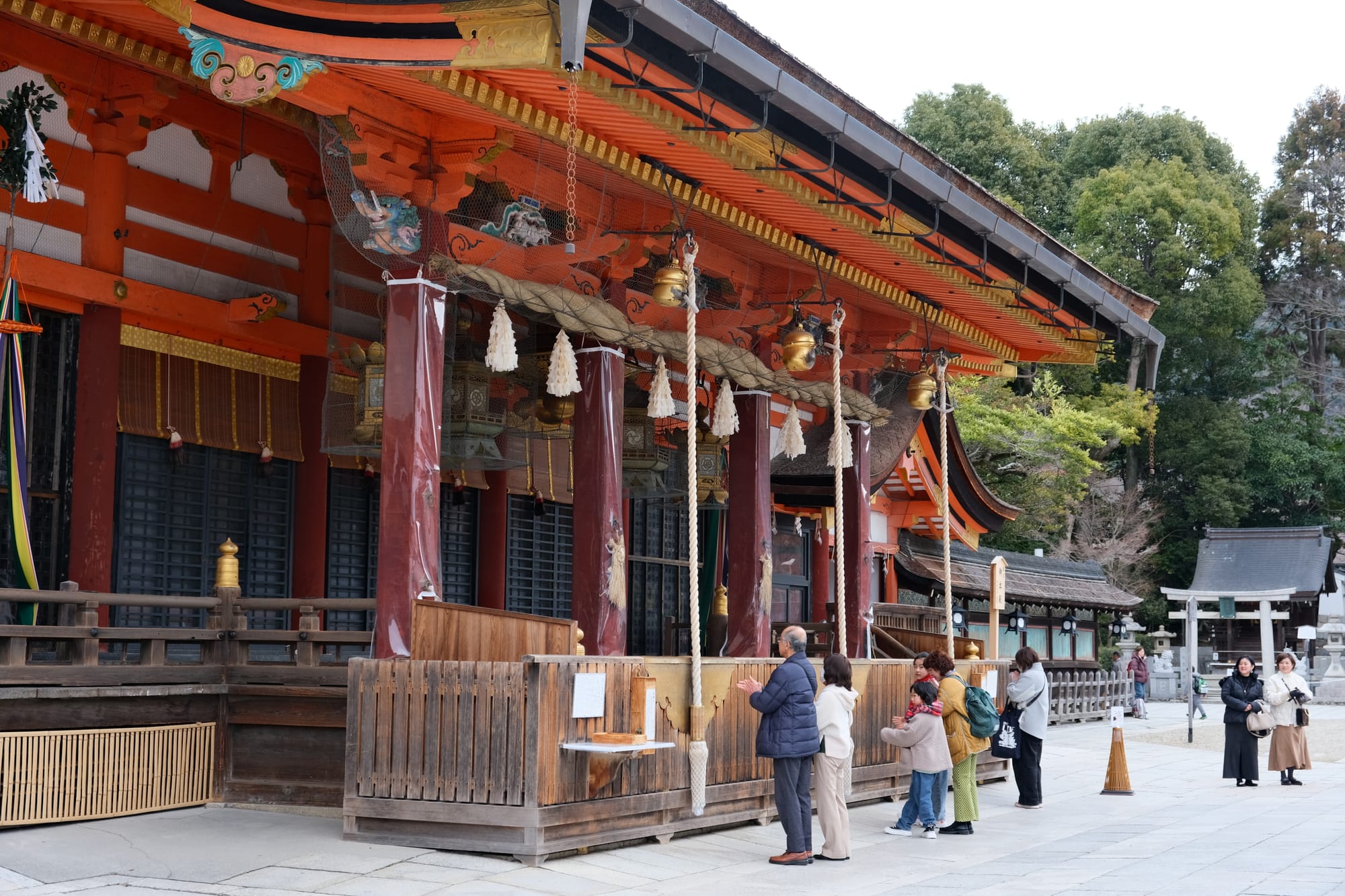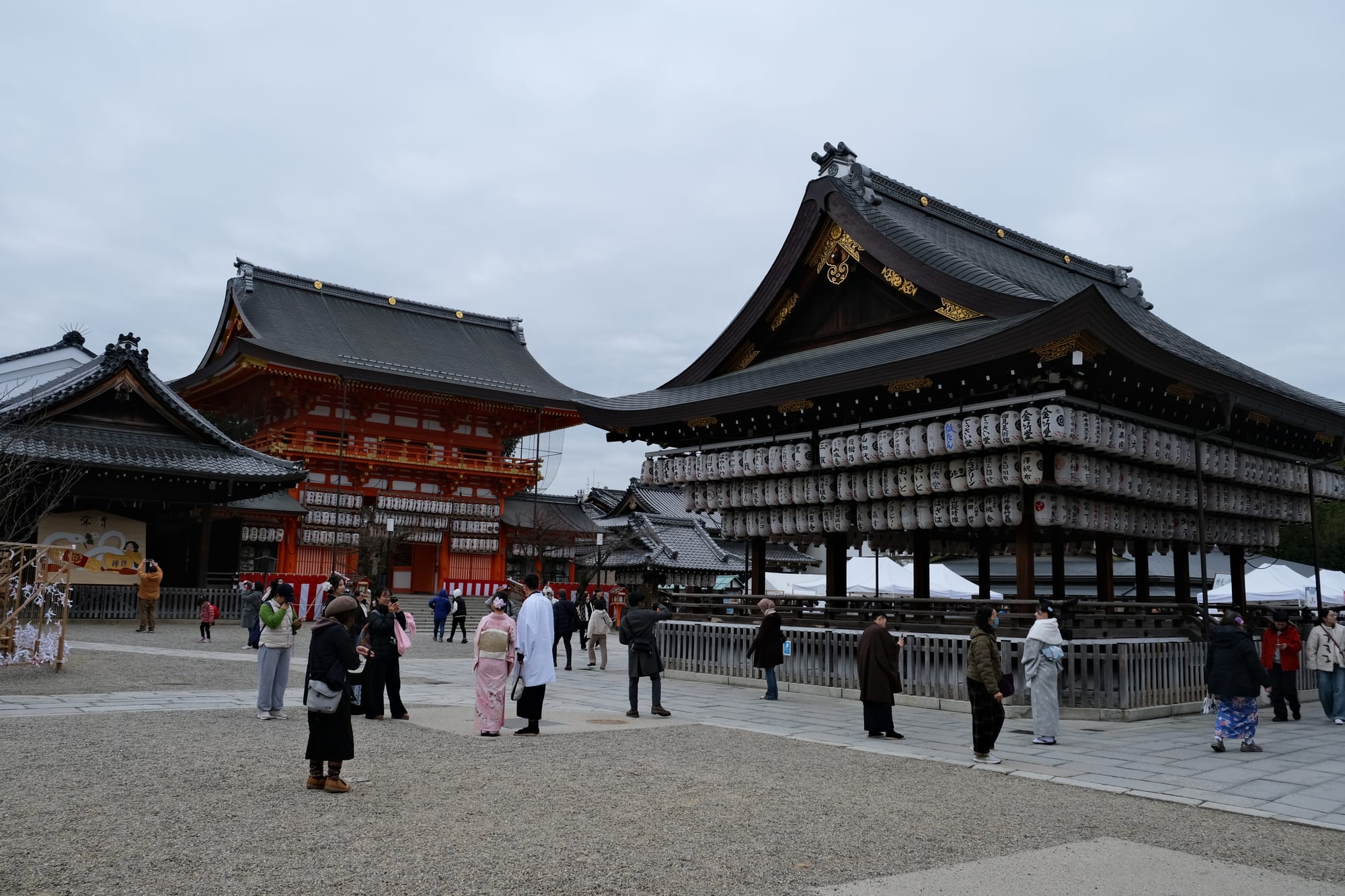 I walked past the Yasaka Shrine. The central shrine building had hundreds of lanterns decorated with text.