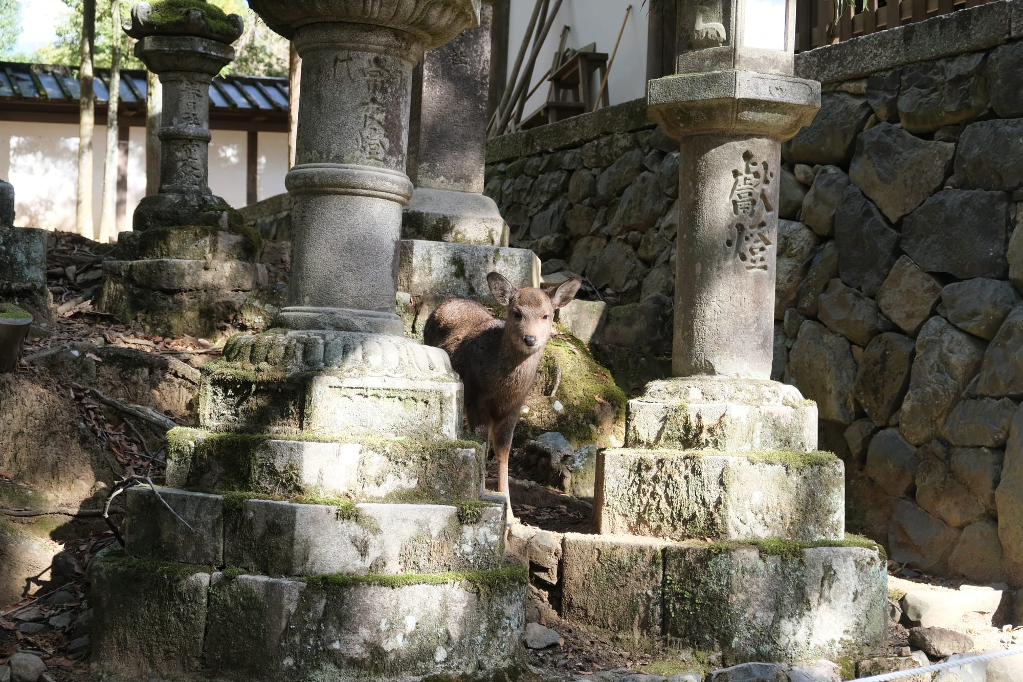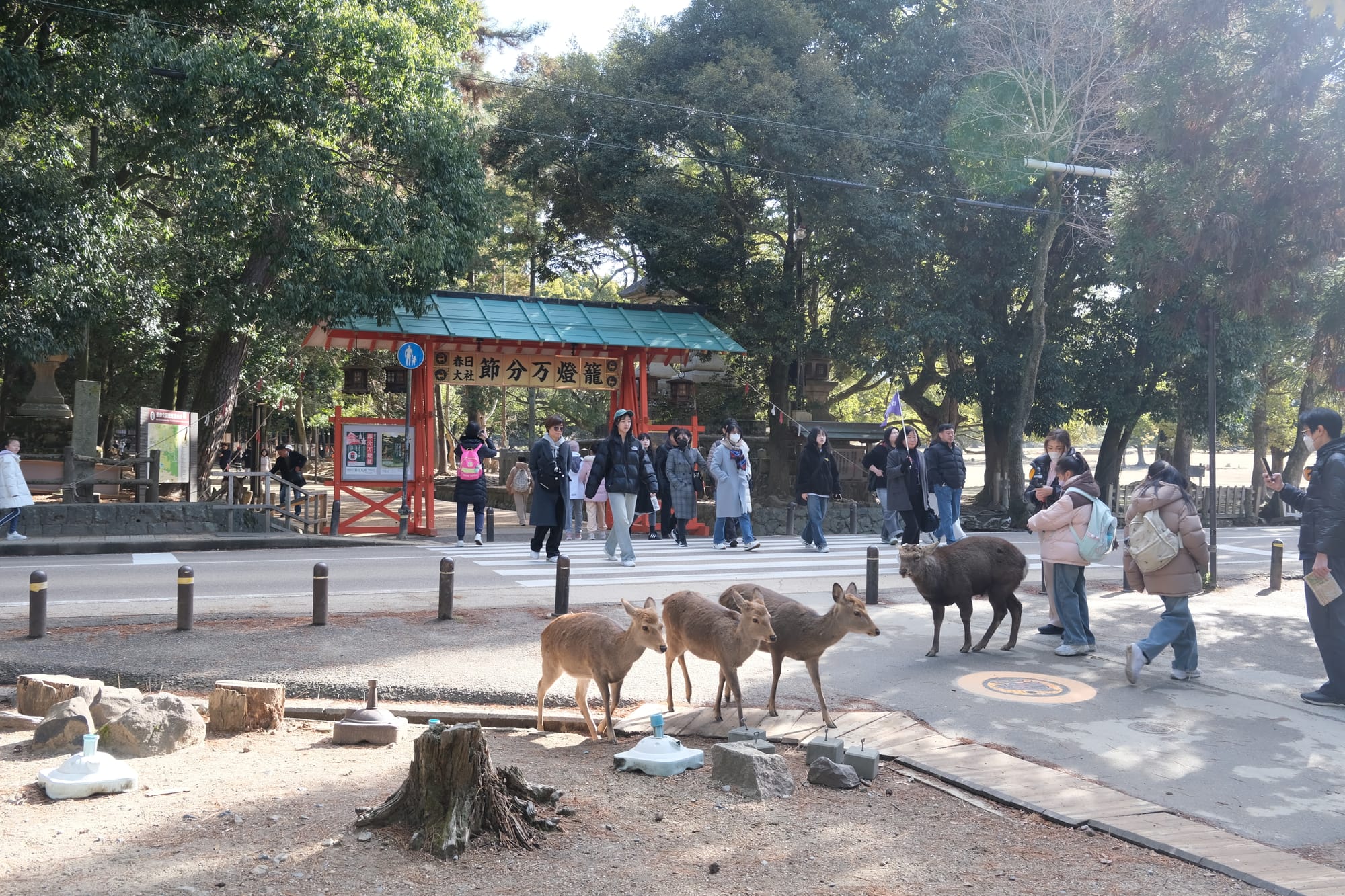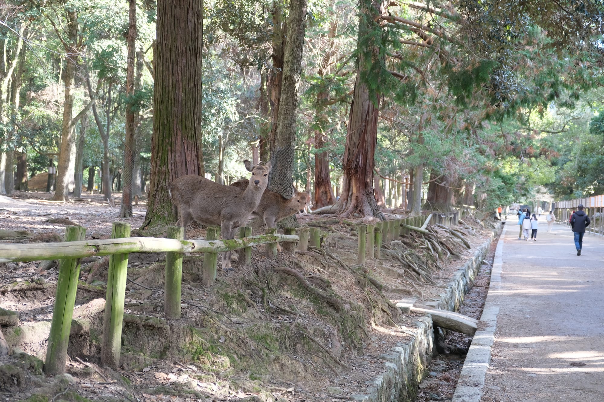 I walked through the many connected parks of Nara, making a big loop, and all the while observing the deer. I walked past a hill that is burnt during January as part of a big festival, and I walked past a few temples. There were many areas of the park that were quiet, especially earlier in the morning, and I enjoyed my time walking through the beautiful natural scenery. Eventually, I walked back towards the city and at the edge of the park, near the Nara National Museum, I found a number of souvenir shops. Here was the popular tourist area with big crowds of people, and some of the shops sold deer crackers, I bought some to feed to the deer. They absolutely loved the crackers and I always felt bad when the packet ran out but the deer still nudged me for more.