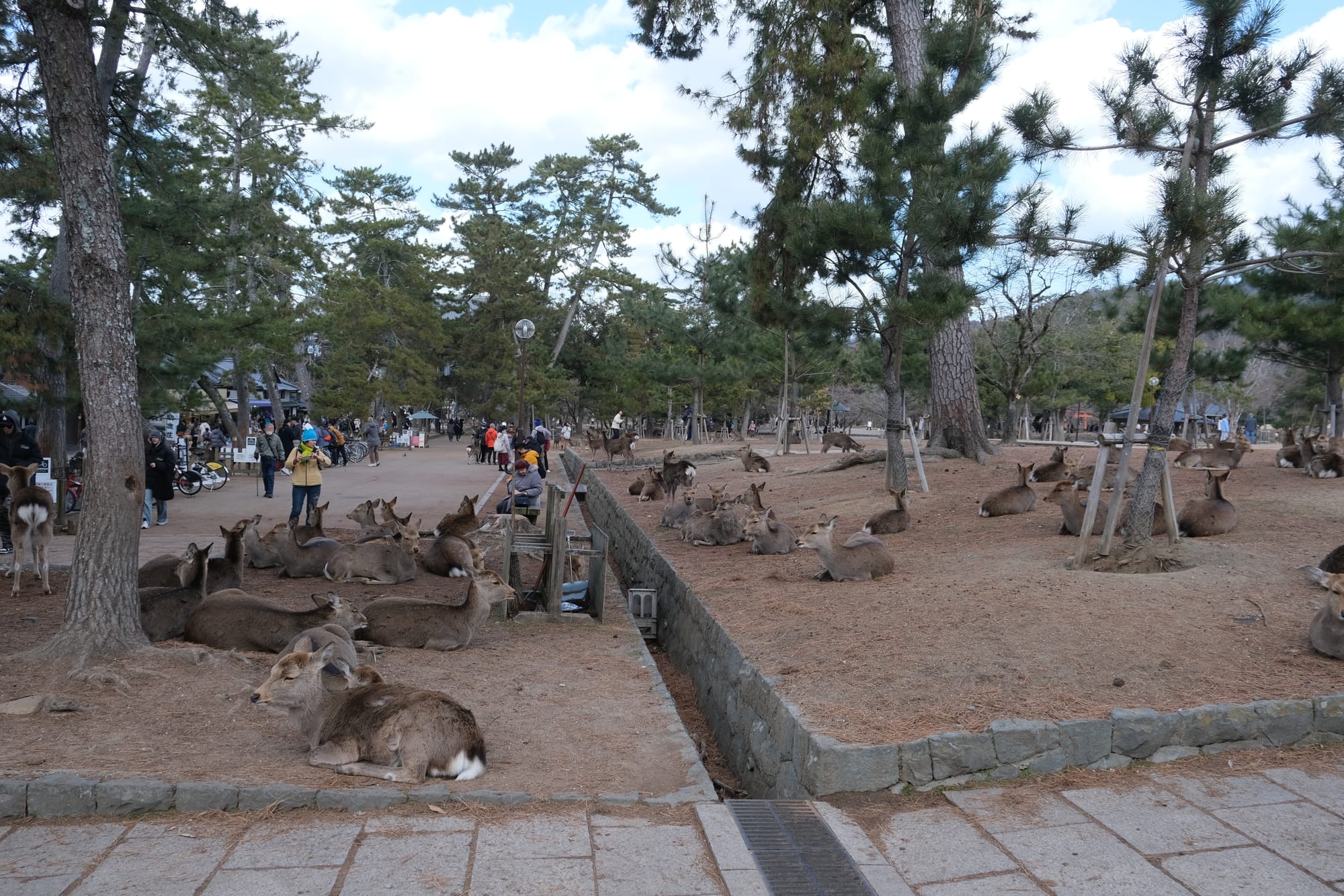 The park area closest to the souvenir shops was the most crowded by both people and deer. I think the deer knew that this is where people buy the deer crackers so many waited here for food.
