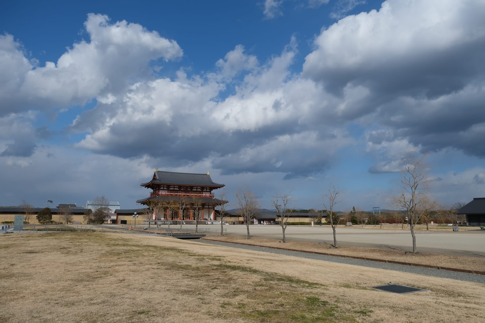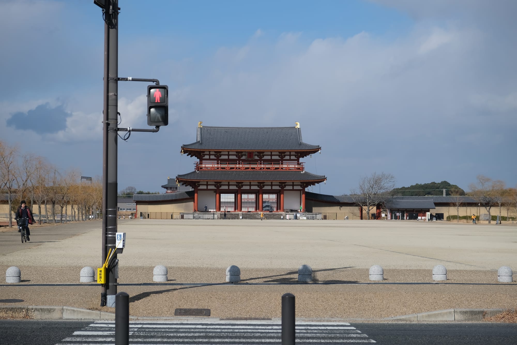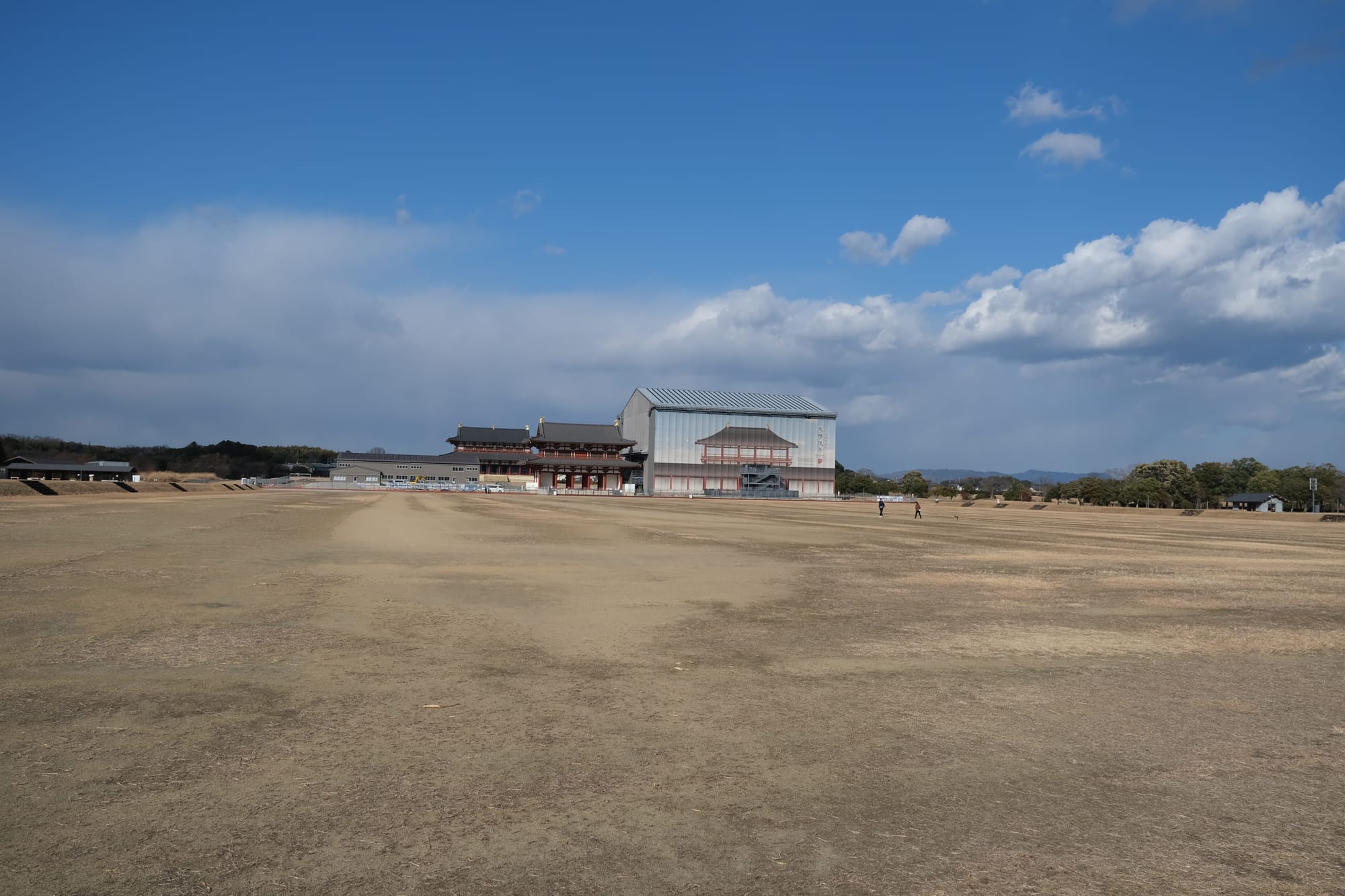 The Former Imperial Audience Hall is visible in the distance, in-front of it is the reconstructed south gate, and what I'm guessing is the construction site for a new palace building.
