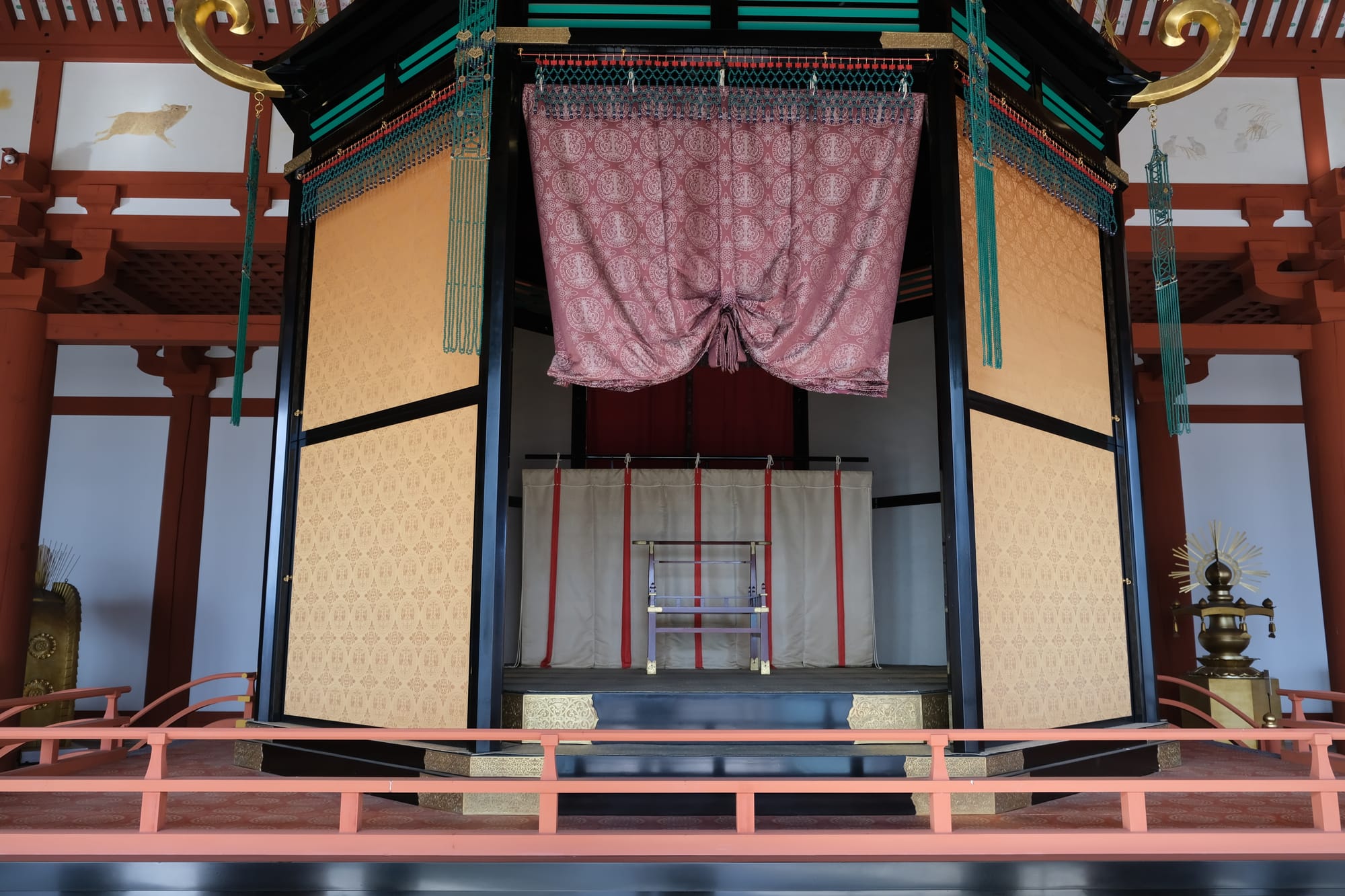 The interior of the Former Imperial Audience Hall with the imperial throne.