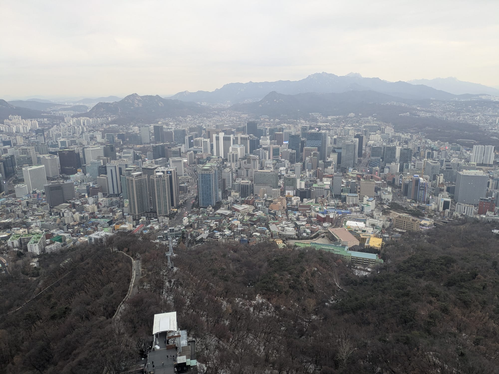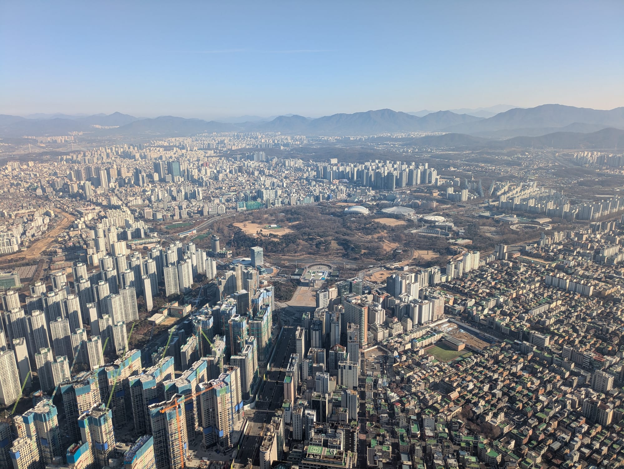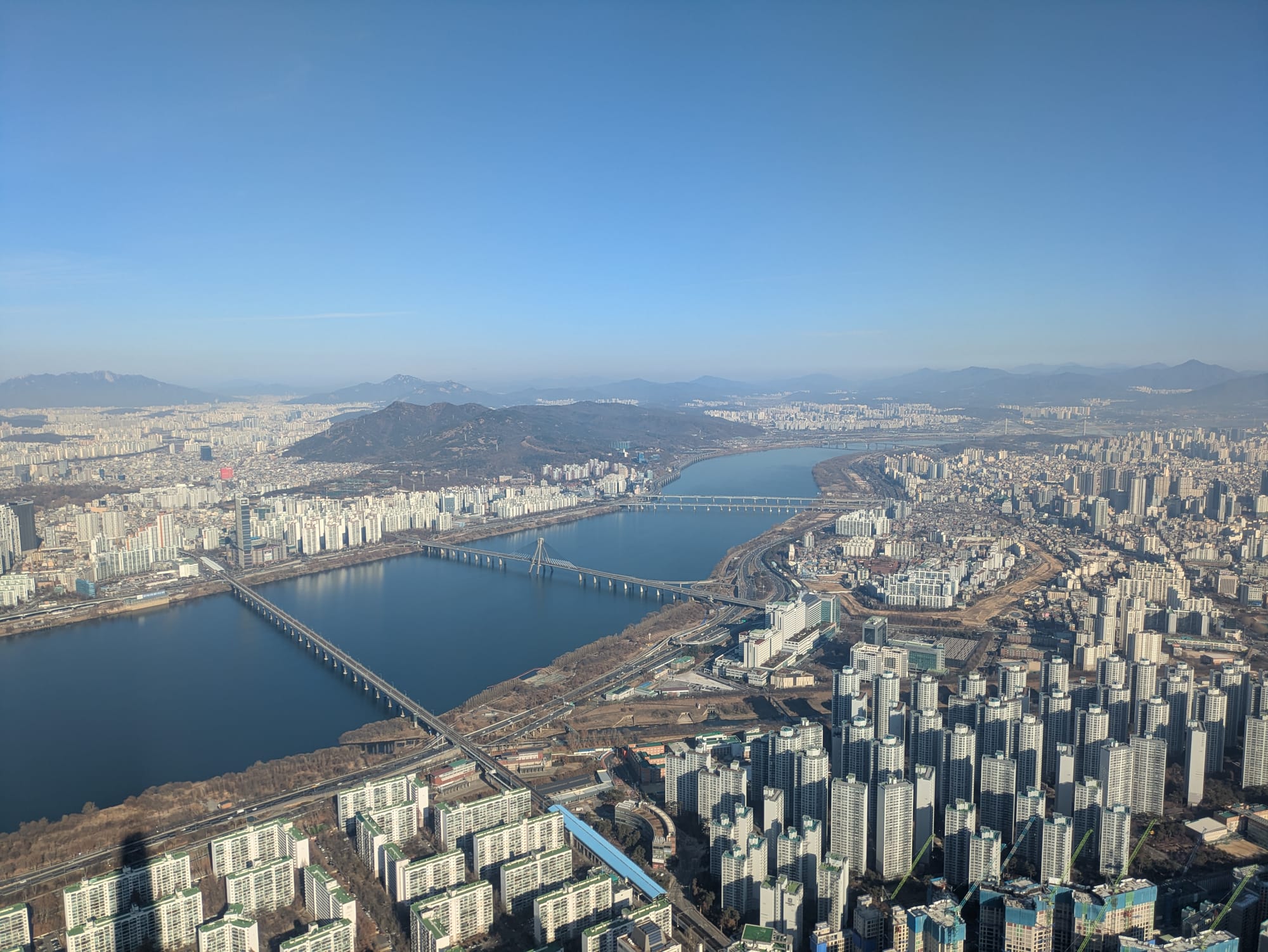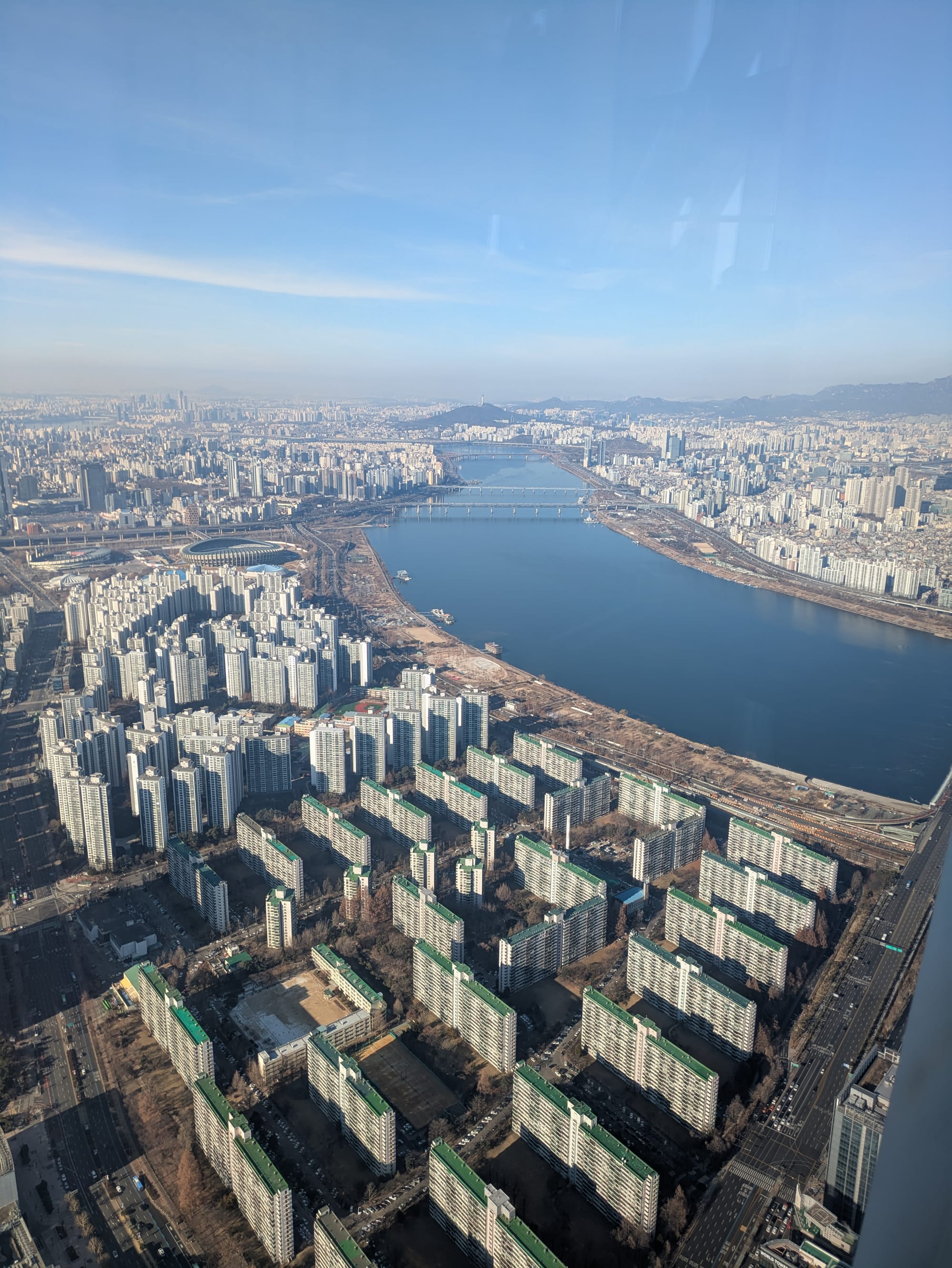 The view of Seoul as seen from the Lotte World Tower observation deck. This was my first time properly seeing just how massive Seoul is, the urban area stretching far to the distant mountains. The Lotte Tower itself is so tall it makes all the other skyscrapers look tiny by comparison.