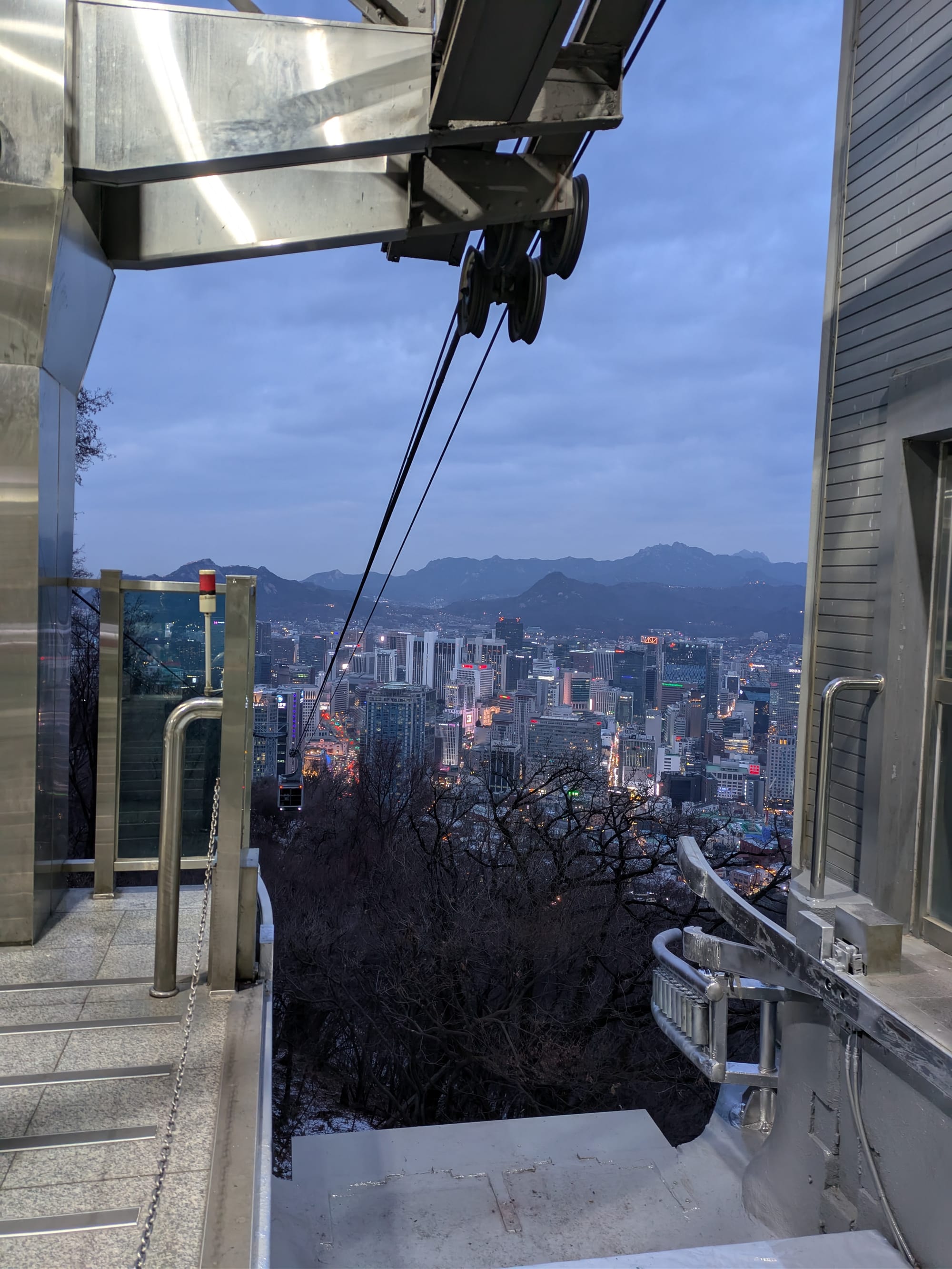To get to the N Seoul Tower you can walk, drive, or take the cable car which I think is the coolest option and the one we used.