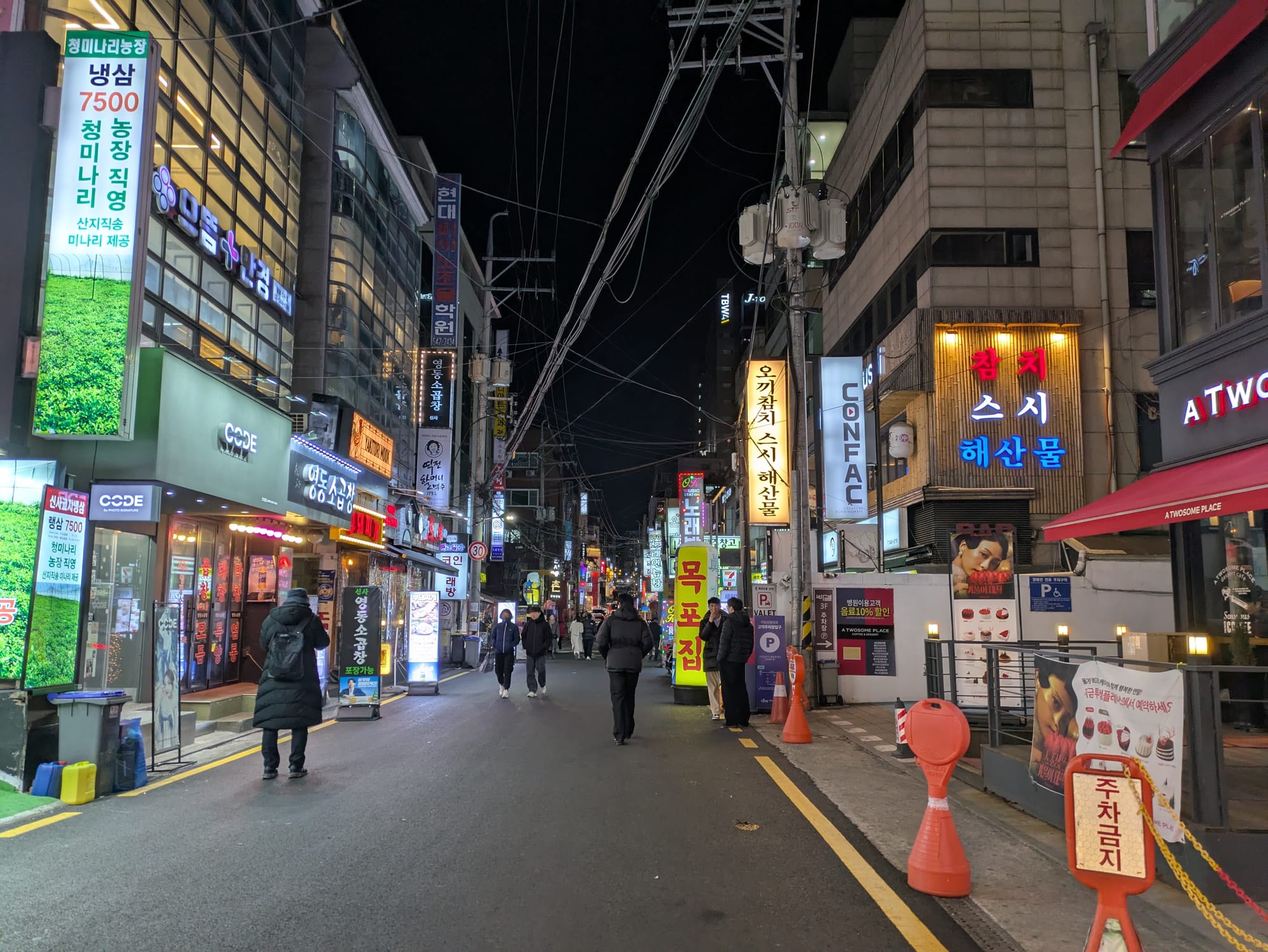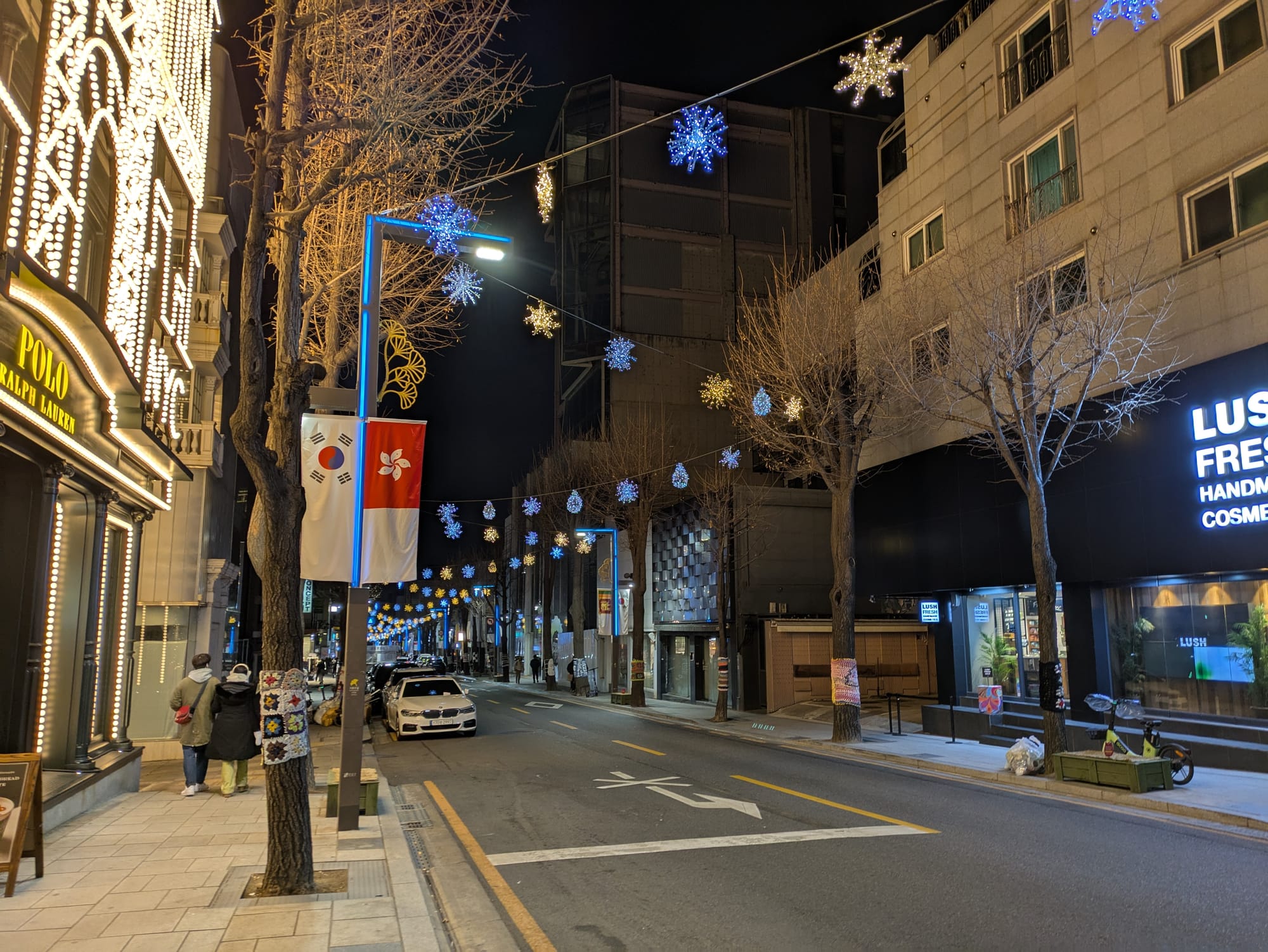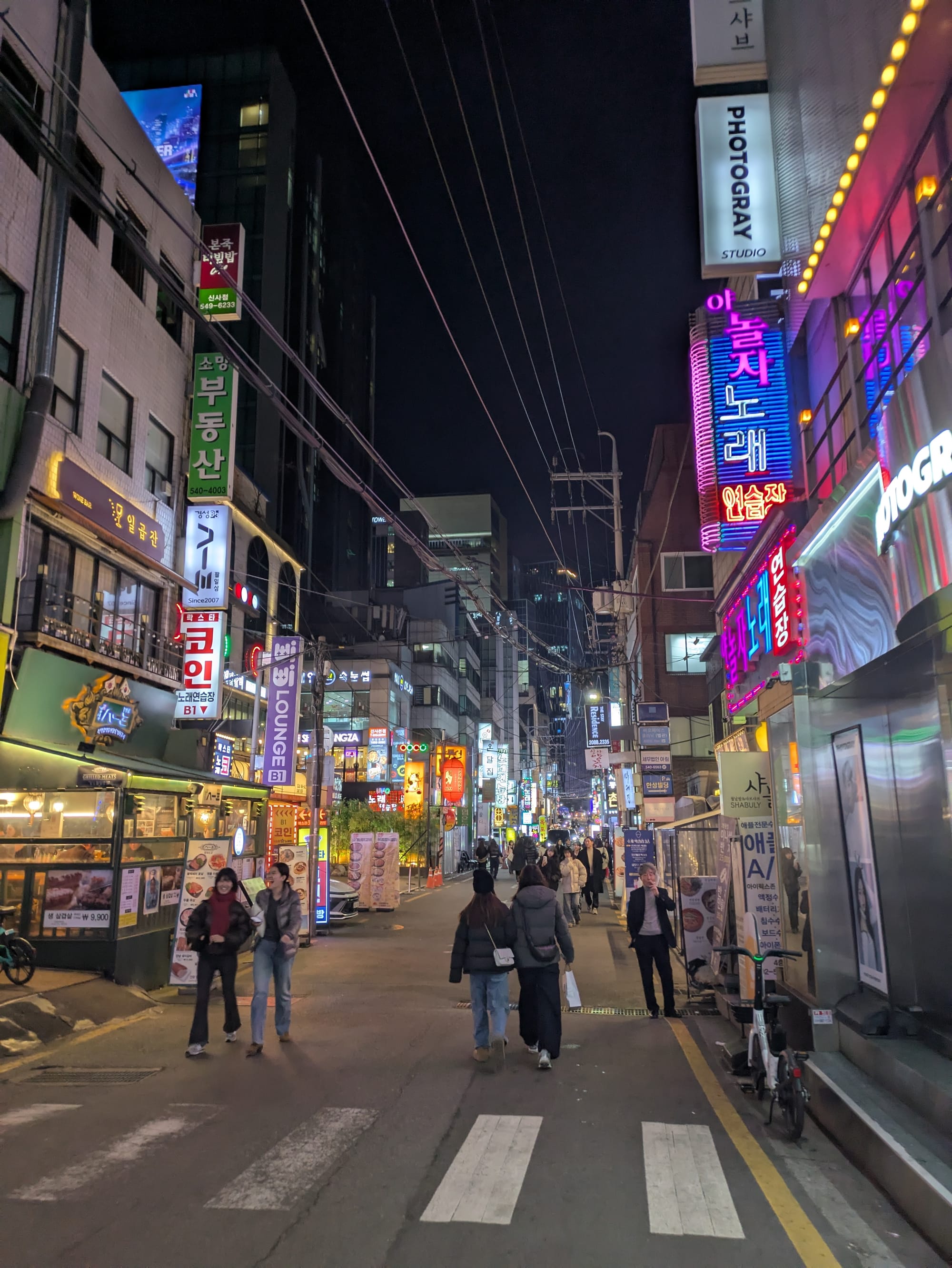 The streets in Gangnam (near our hotel) were often lit up at night with many colourful electric lights.