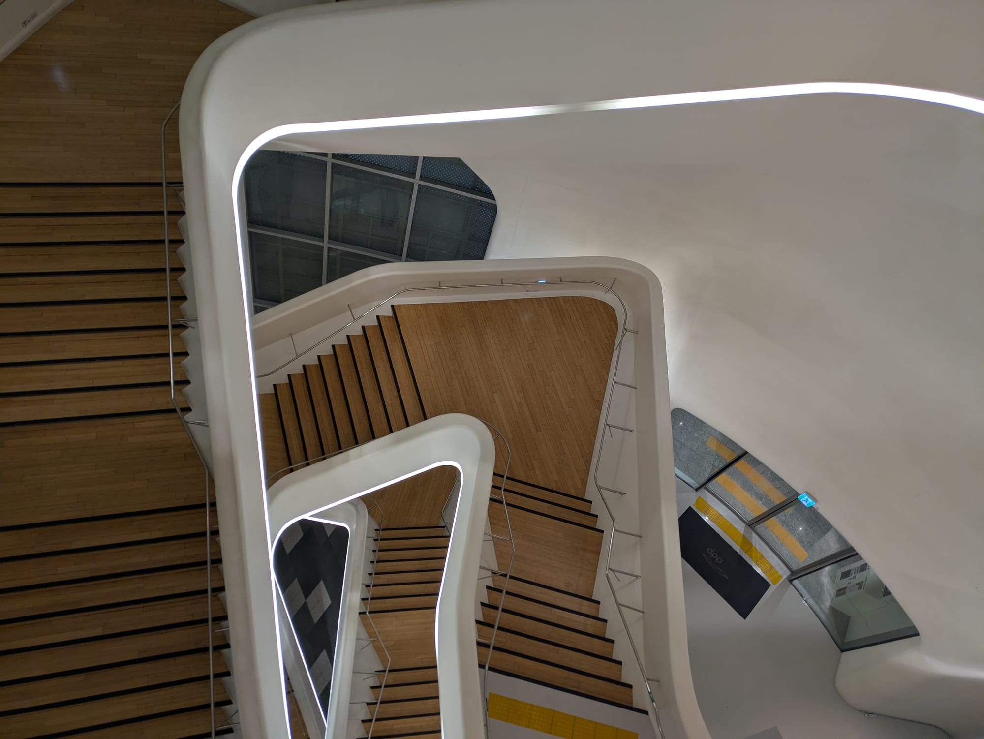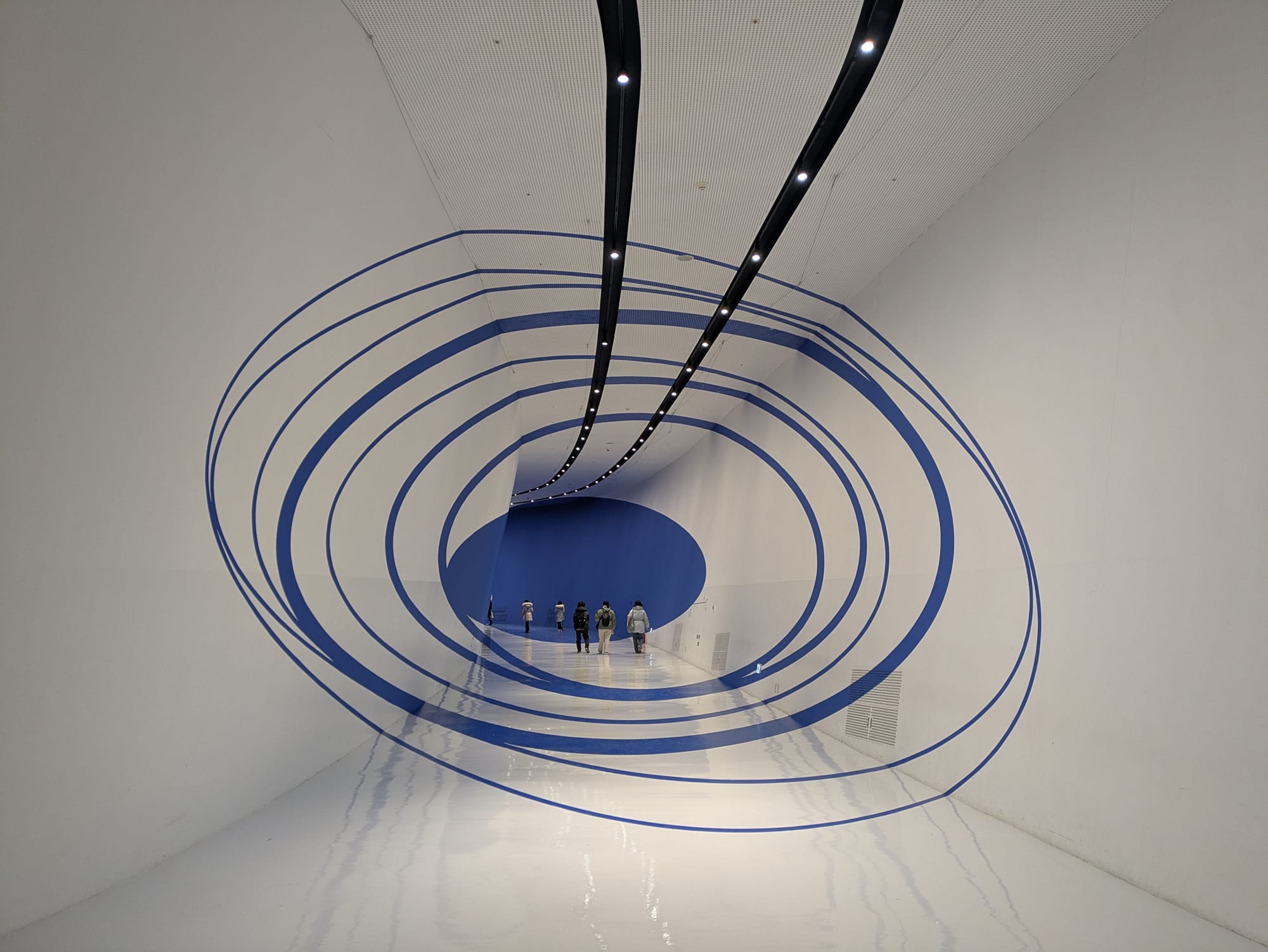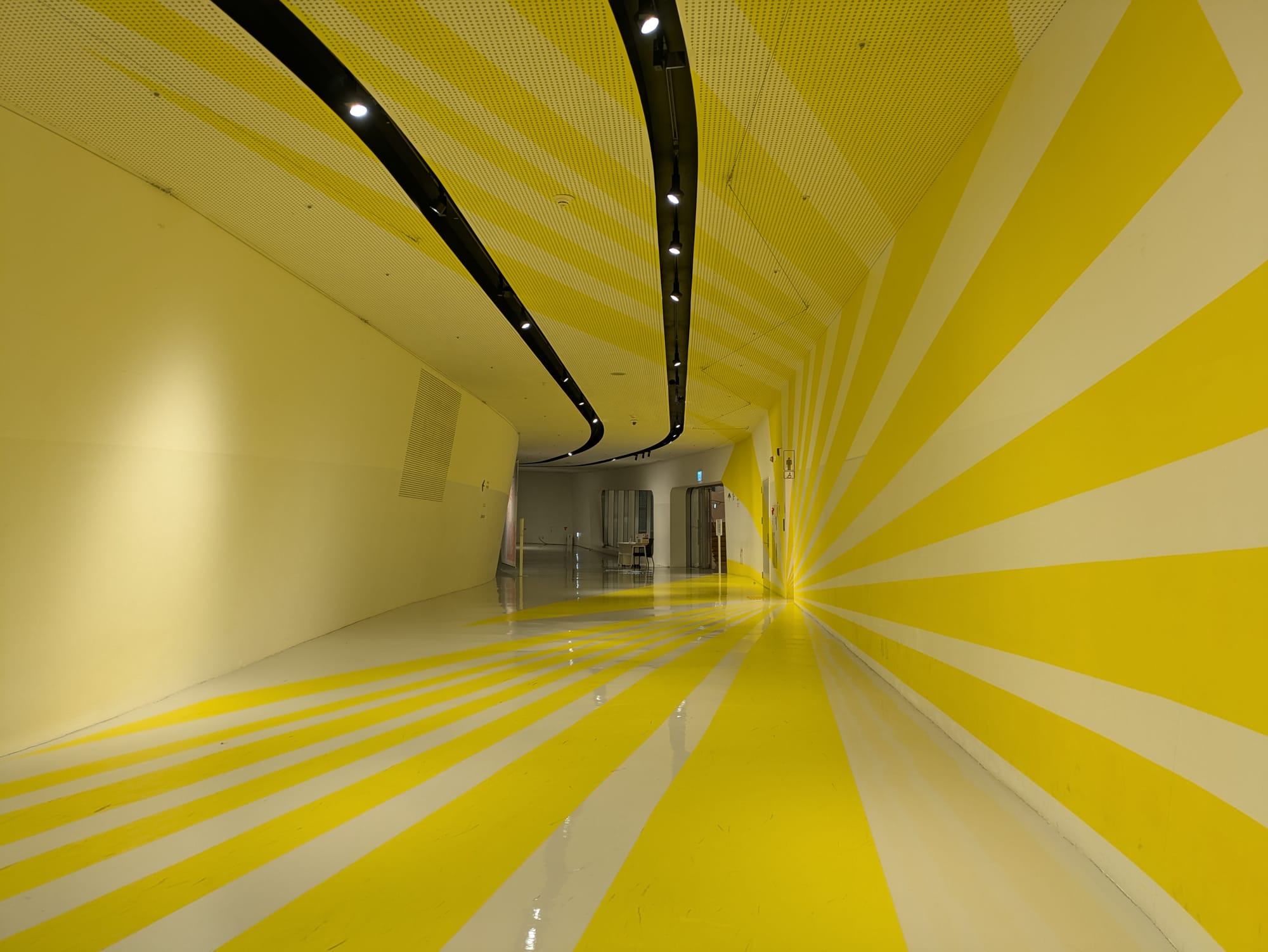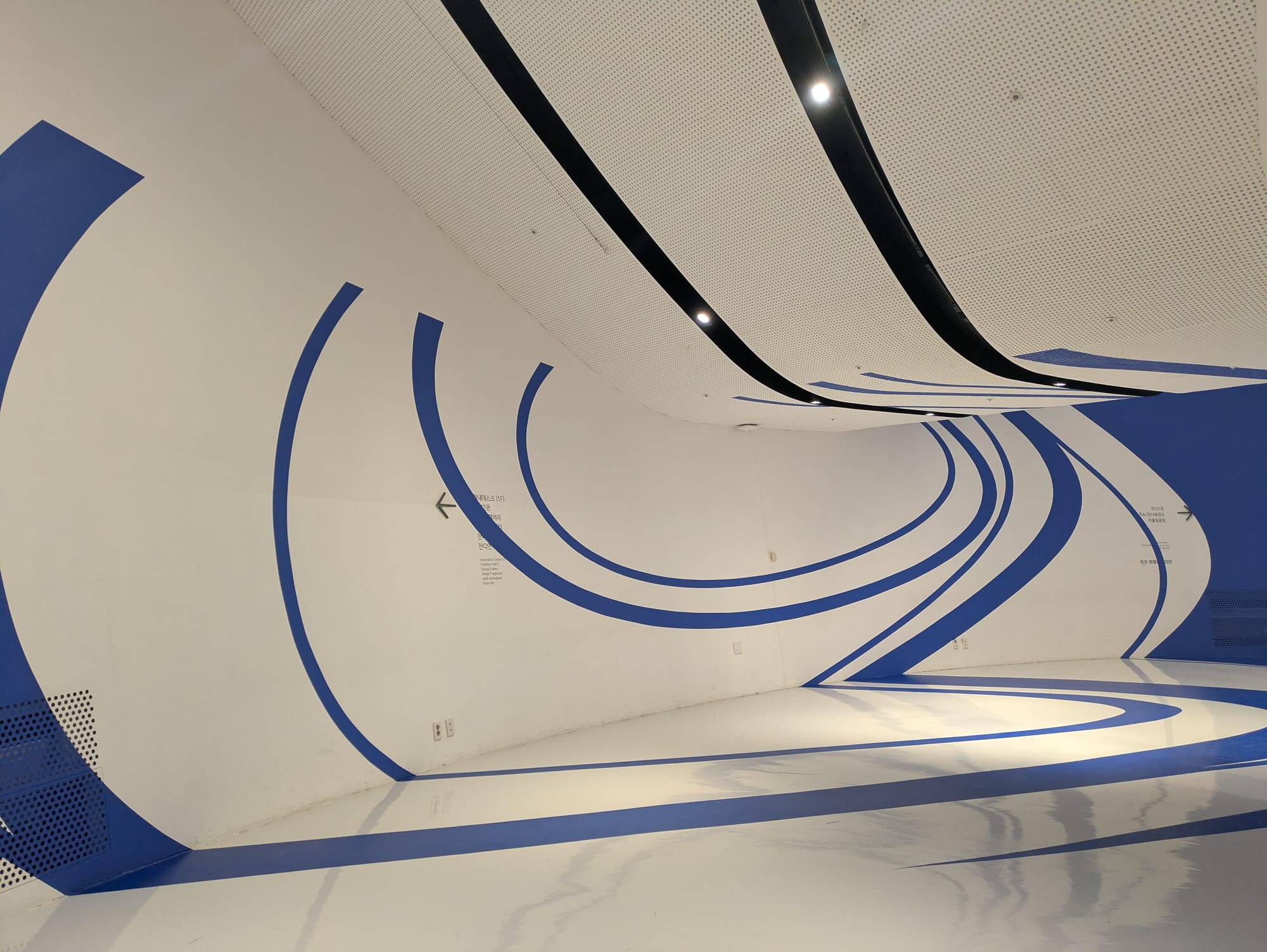 Dongdaemun Design Plaza is an art exhibition centre that was designed to not have any straight surfaces or hard angles. Every surface is curved, and it was built in such a way to not disturb the archaeological ruins present on the property. On our final day in Seoul we had just enough time to visit the building before the sun set. We didn't visit the exhibitions themselves (except for the free one in the main corridor) but mostly just walked around admiring the architecture. It certainly is one of the most unique buildings I have ever seen and makes an excellent host for all things design related.