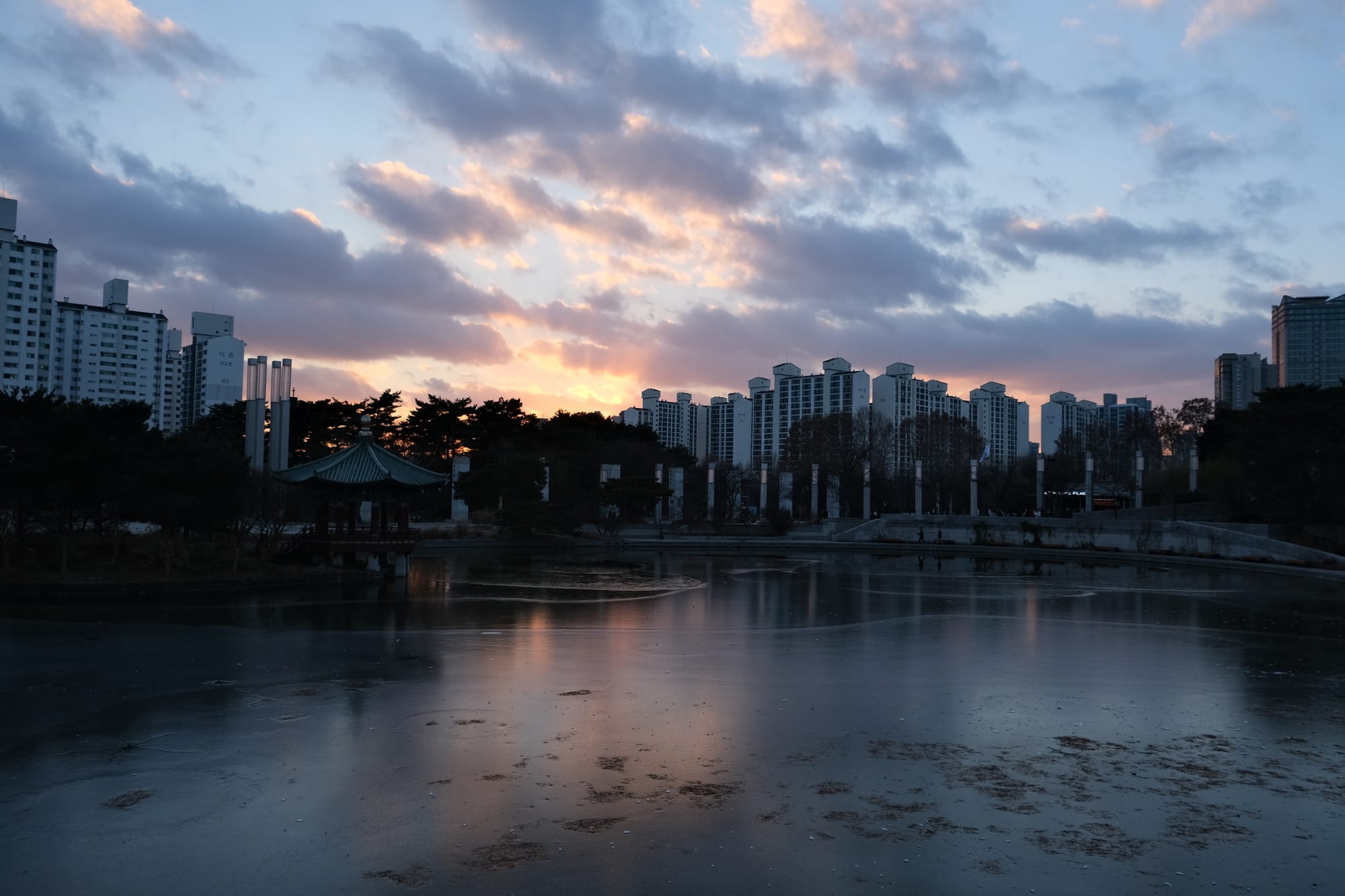 One of the first things we noticed, when landing in South Korea, was the brutal cold. It was an extra level of cold that I was not used to, with temperatures often remaining in the negatives (degrees Celsius). While it was cold, there wasn't much precipitation, so this resulted in a landscape with: no snow, empty trees, brown fields, and frozen lakes.