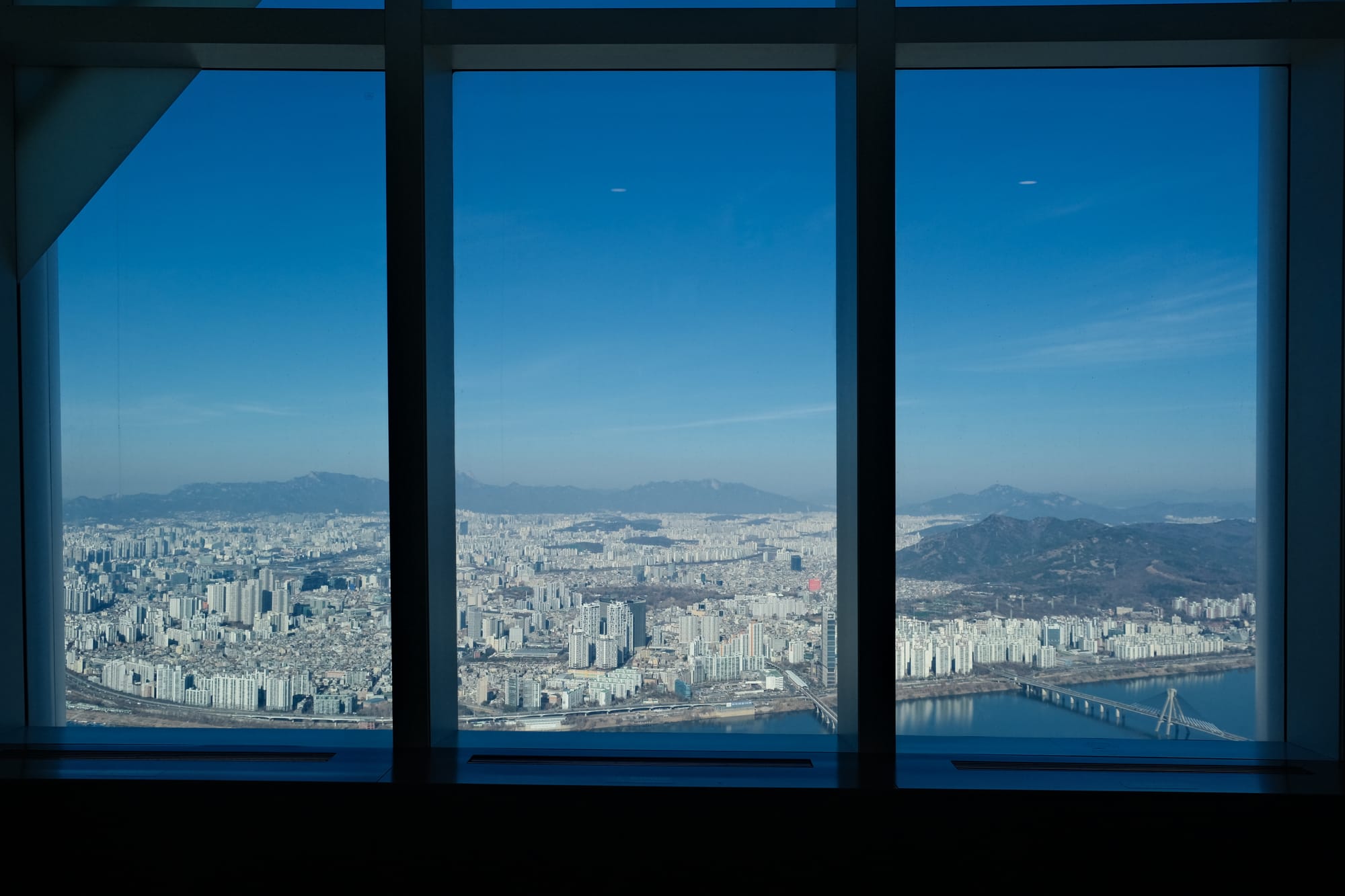 The view of Seoul as seen from the Lotte World Tower observation deck. This was my first time properly seeing just how massive Seoul is, the urban area stretching far to the distant mountains. The Lotte Tower itself is so tall it makes all the other skyscrapers look tiny by comparison.