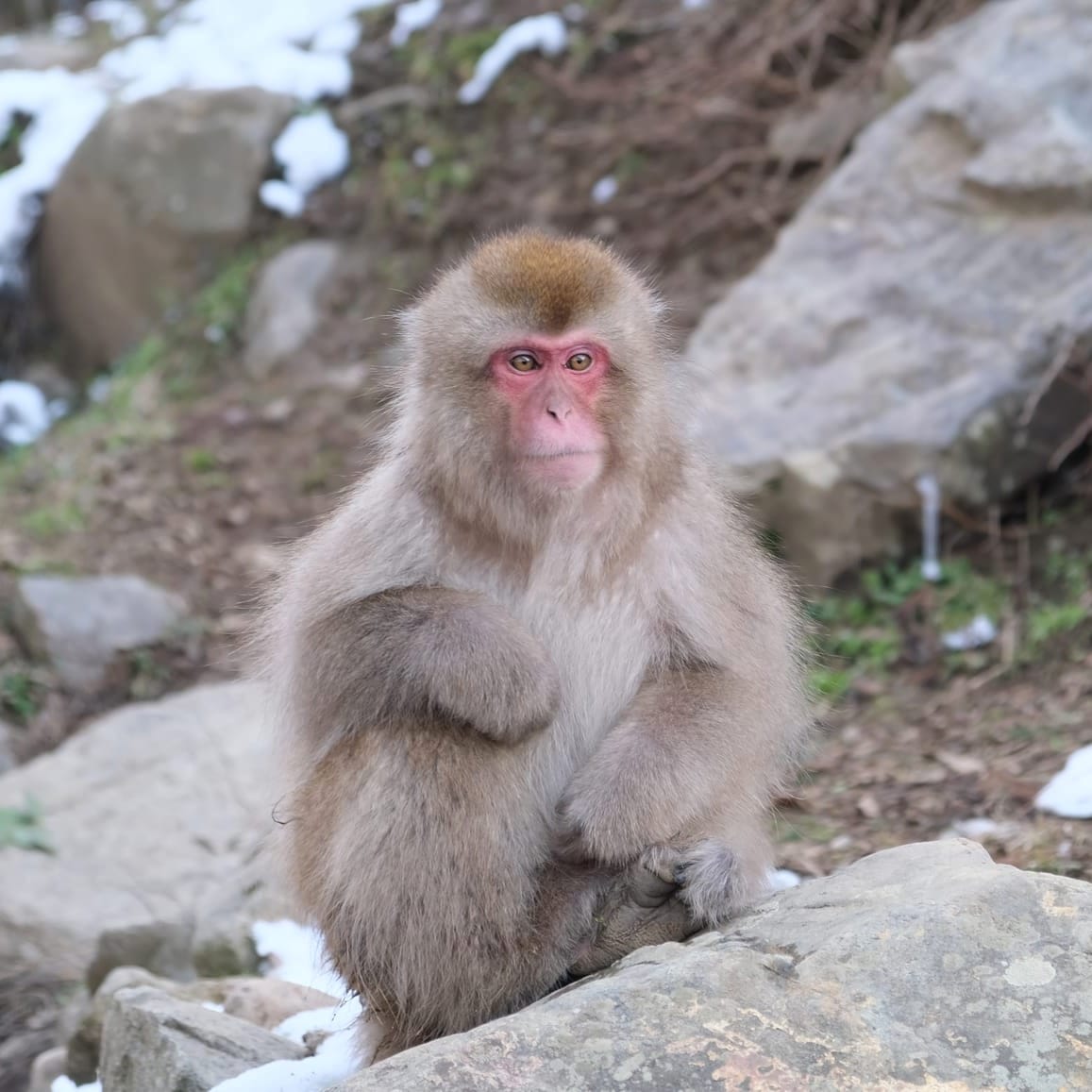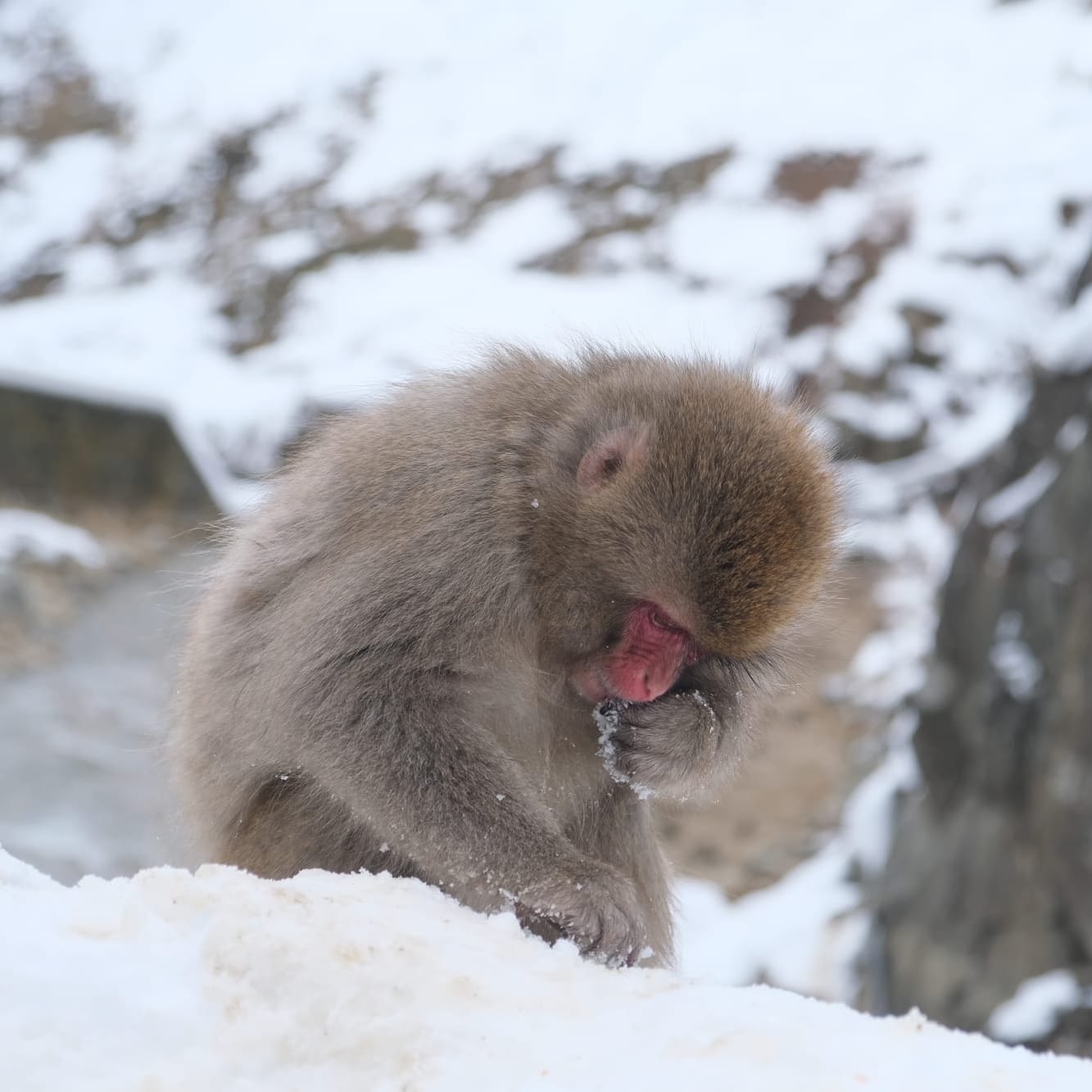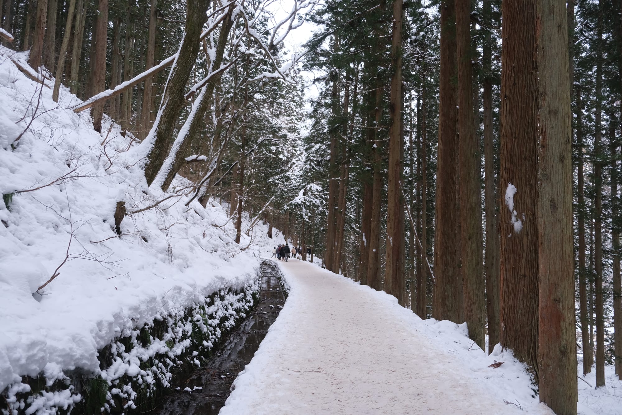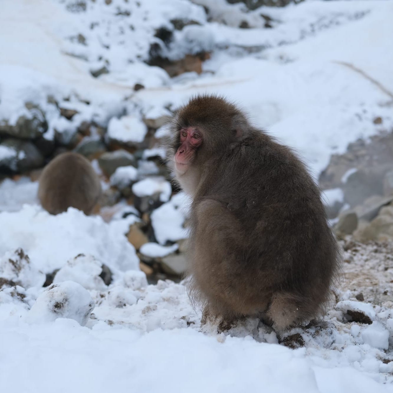 I took a shinkansen from Tokyo to Nagano and then a private train line to Yadunaka. This was properly in the mountains and here is the first time I saw snow in Japan. From Yadunaka I took a short 10 minute bus ride. From the bus stop I still had to walk about 1.5 kilometers to the actual park entrance. This was actually a beautiful walk through a mountain forest covered in snow.