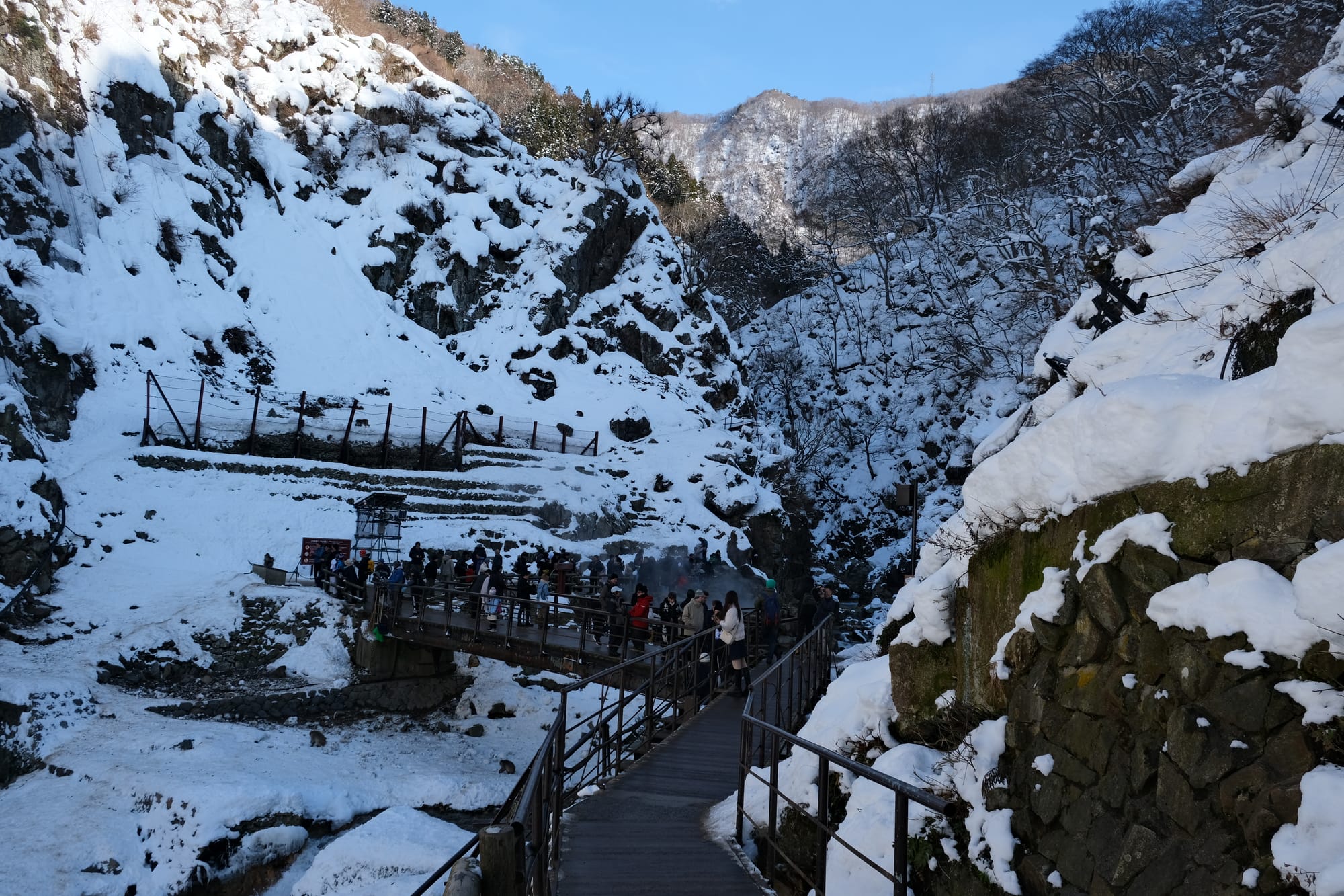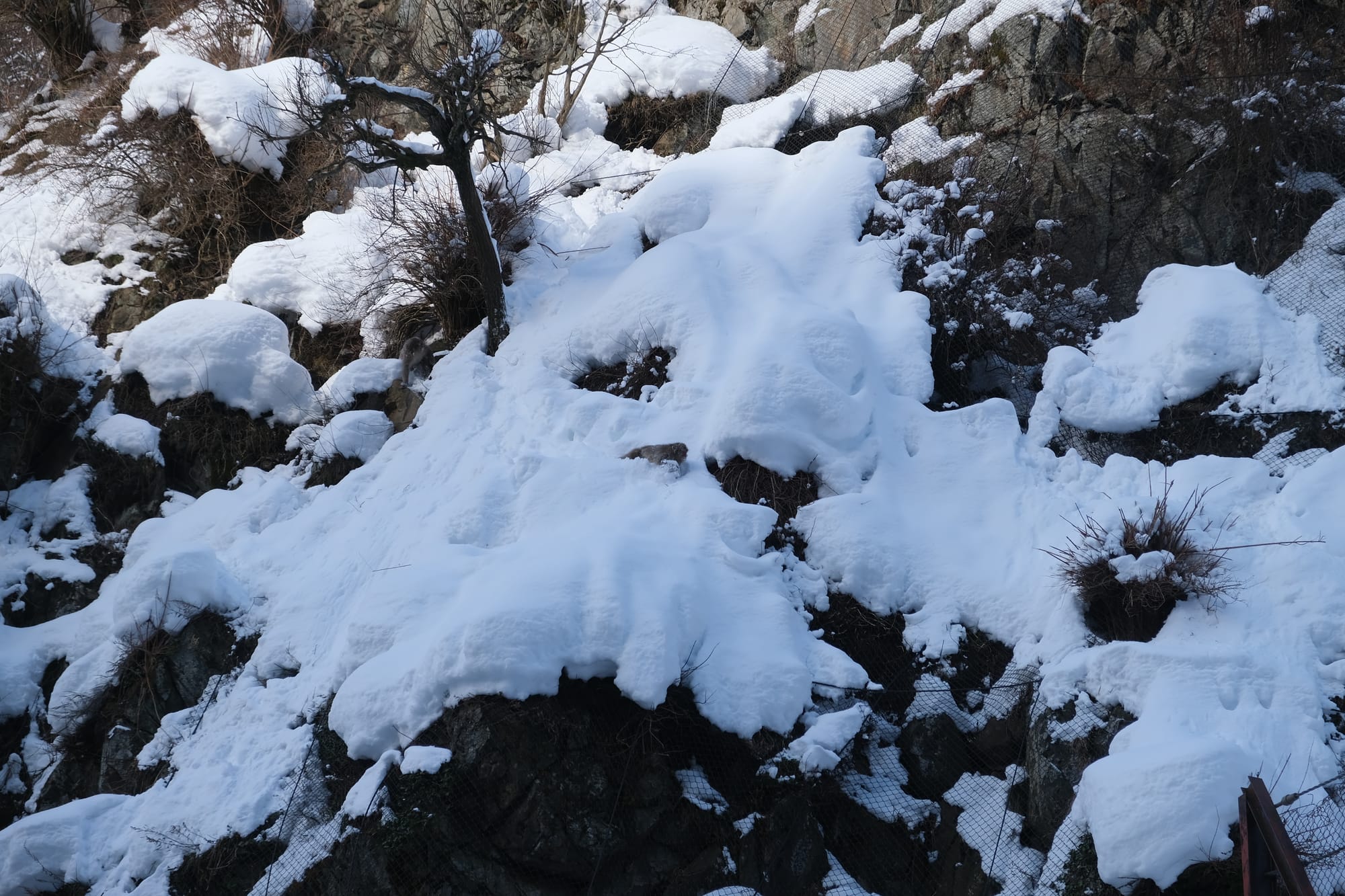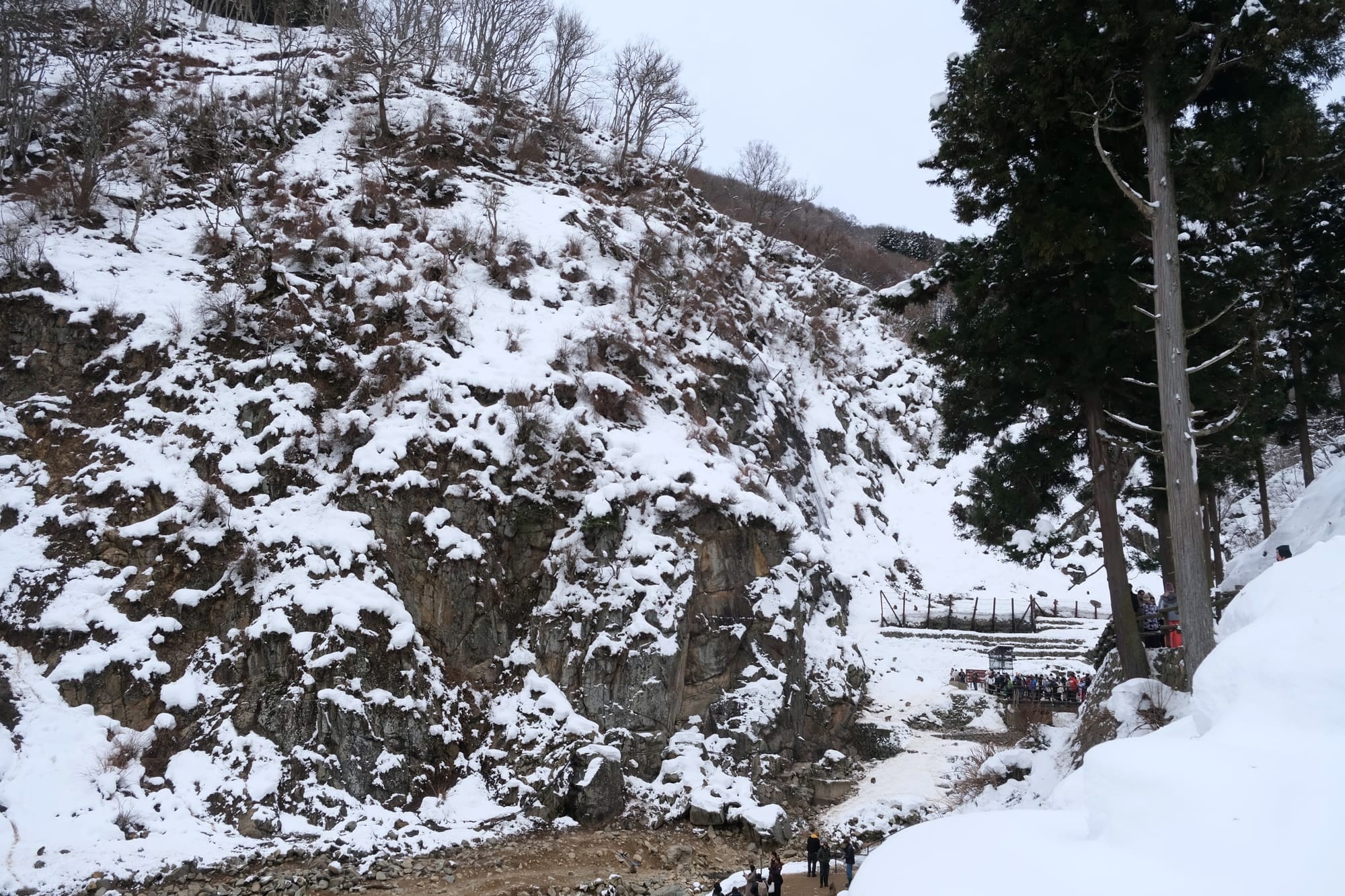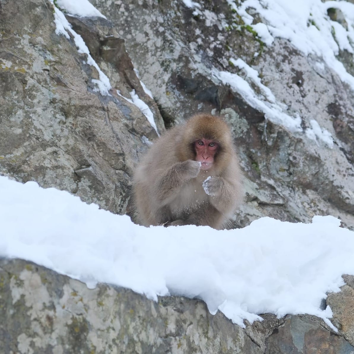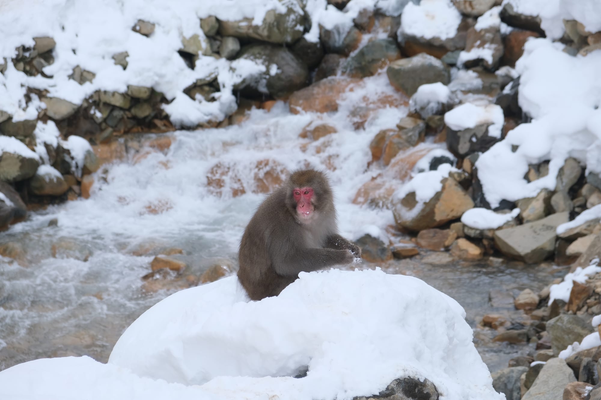 I took a shinkansen from Tokyo to Nagano and then a private train line to Yadunaka. This was properly in the mountains and here is the first time I saw snow in Japan. From Yadunaka I took a short 10 minute bus ride. From the bus stop I still had to walk about 1.5 kilometers to the actual park entrance. This was actually a beautiful walk through a mountain forest covered in snow.