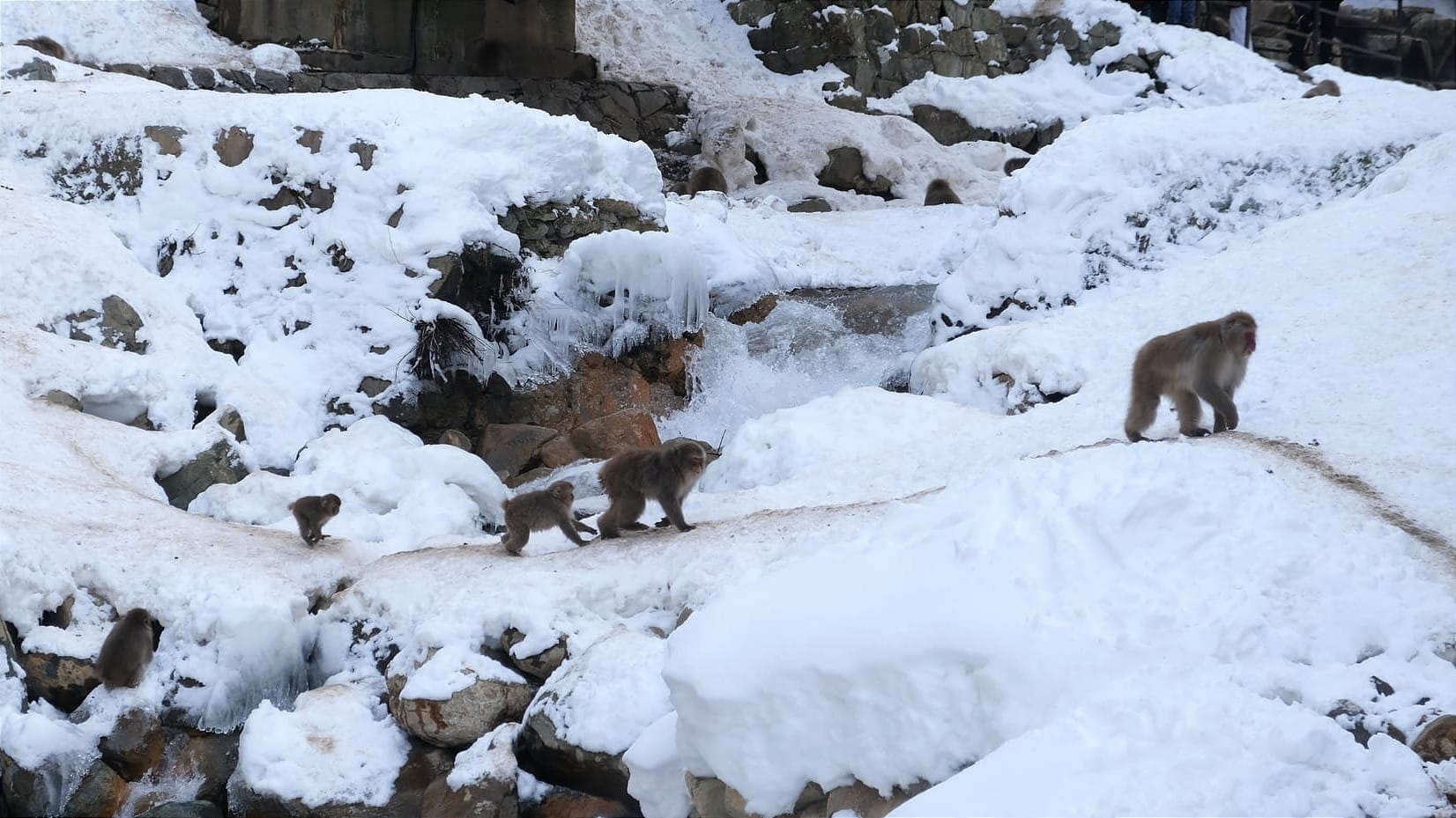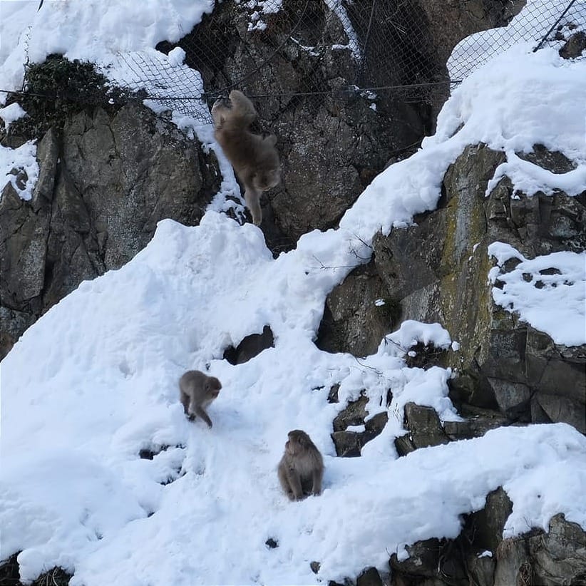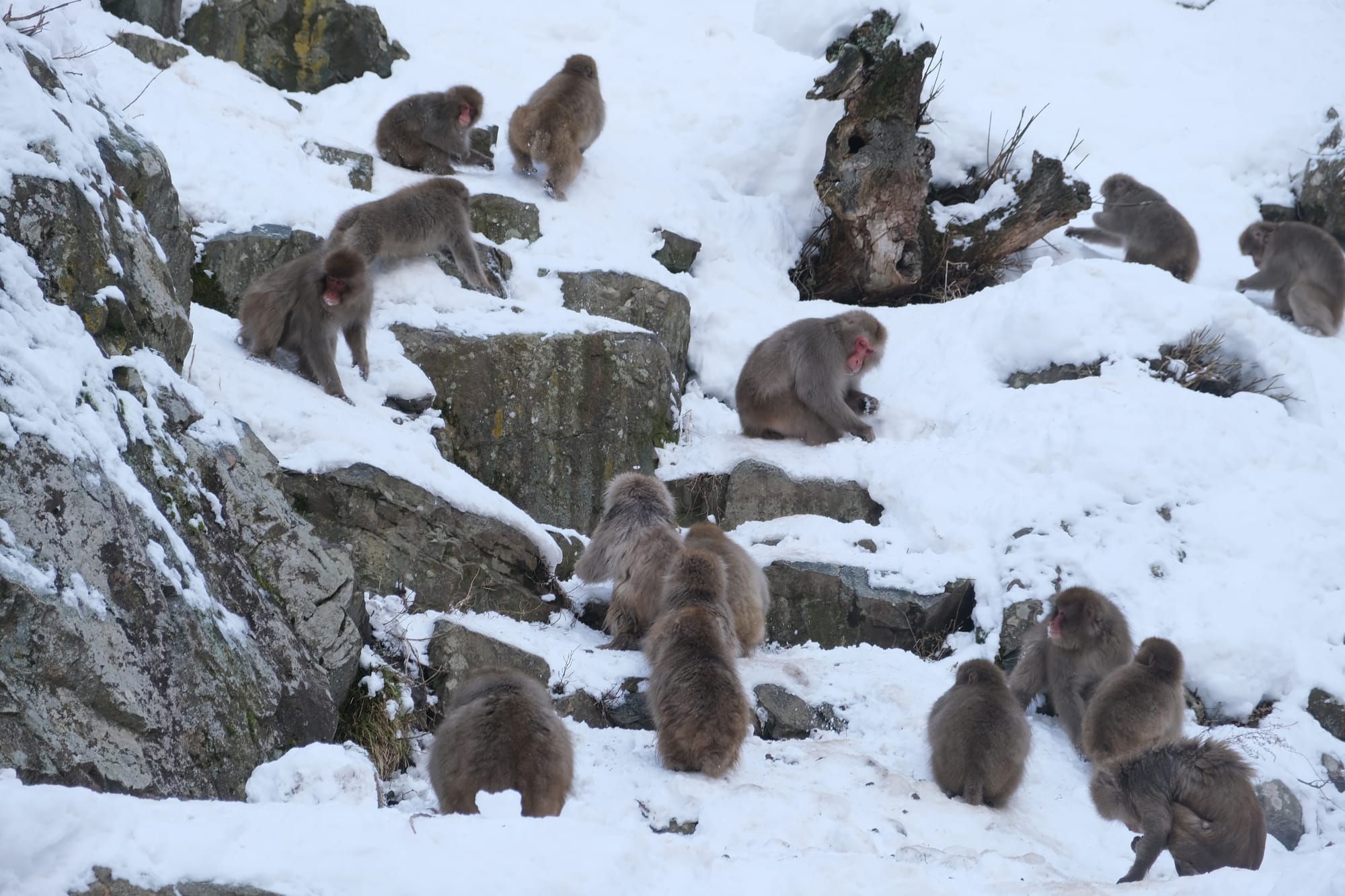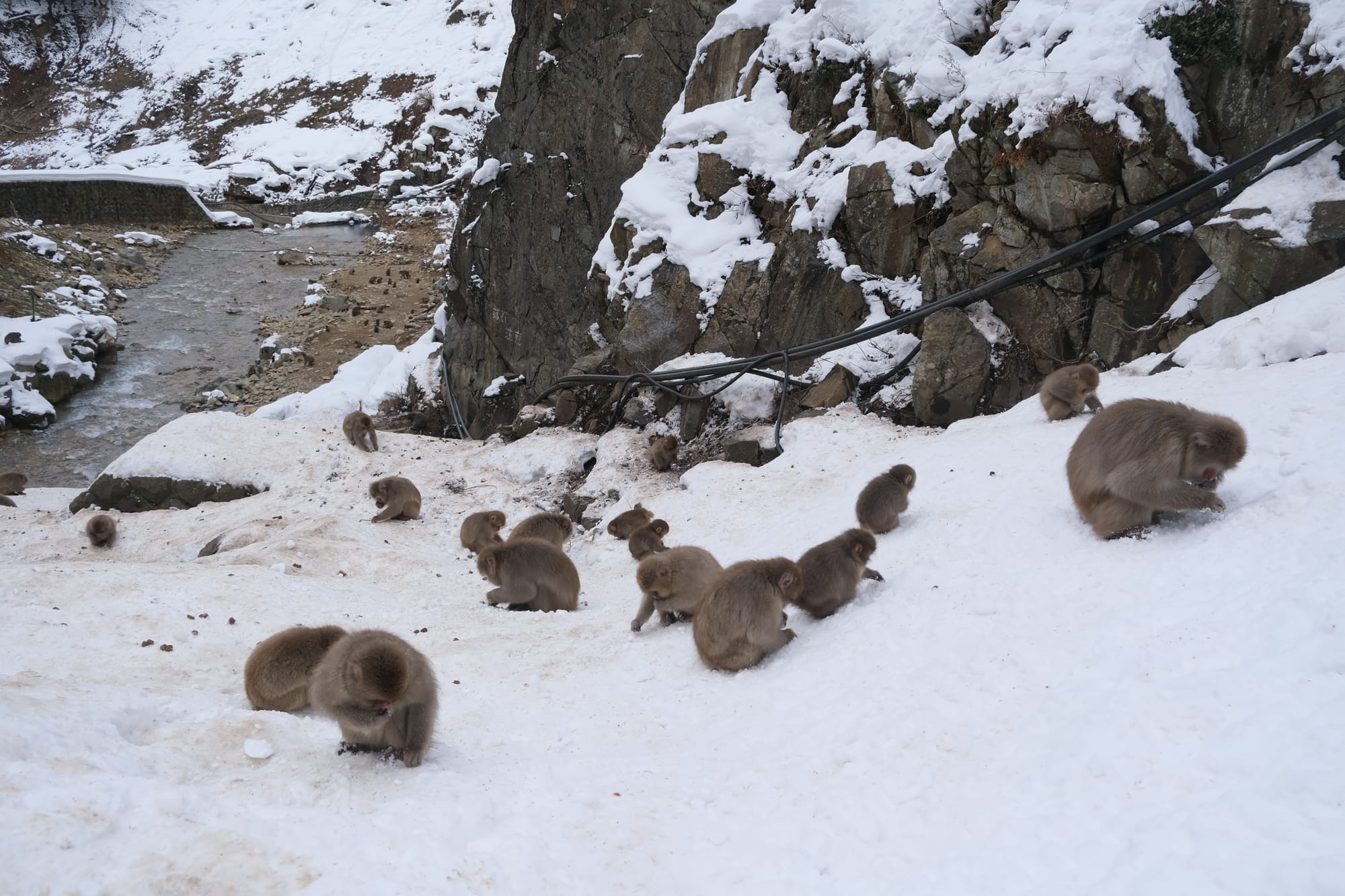 There were so many monkeys visiting for the food, apparently they rely more on the park during the winter months when food is harder to come by naturally. The second image shows a view of the monkey park looking down the valley (the hot spring shown earlier is behind me)