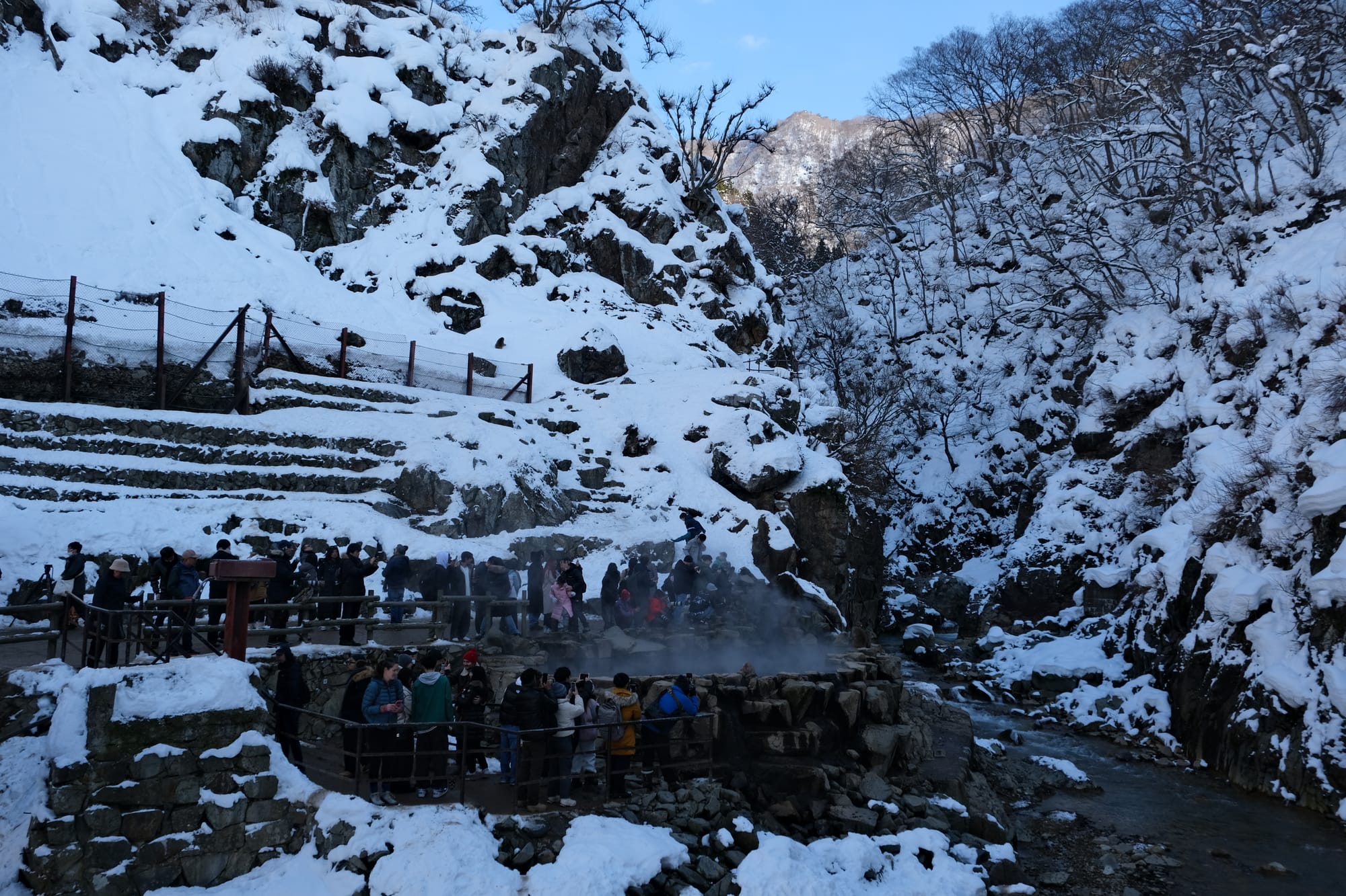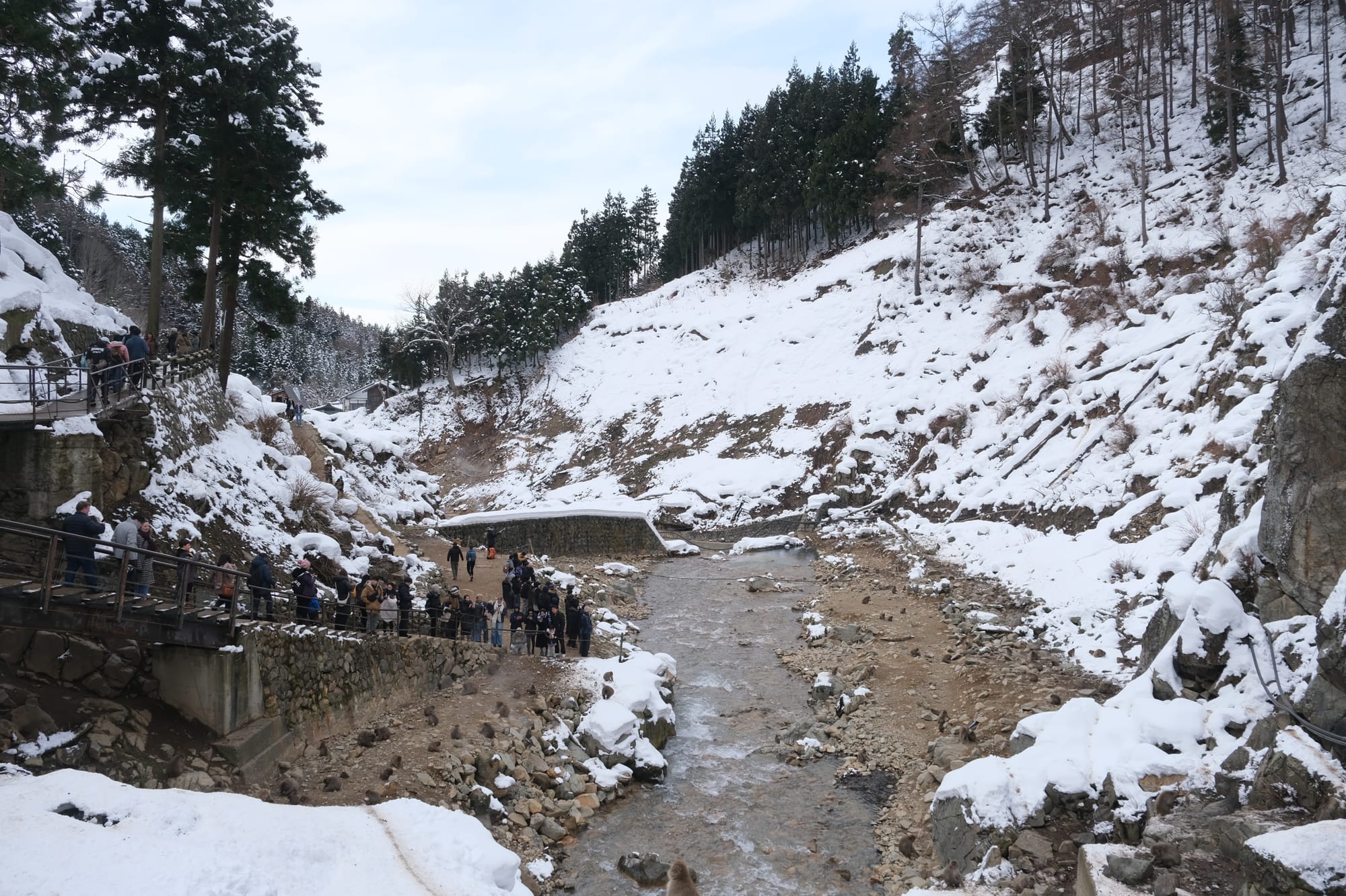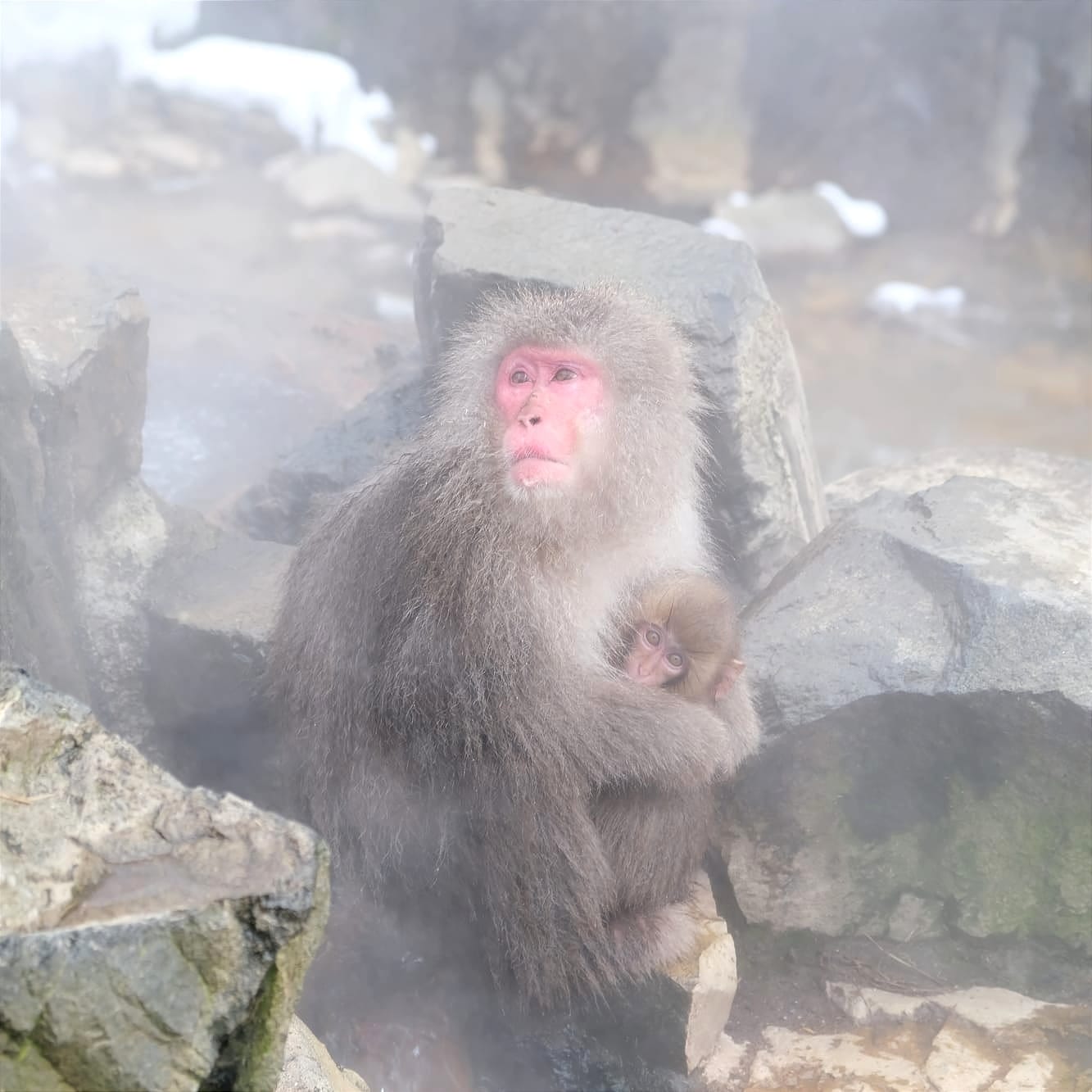 There were so many monkeys visiting for the food, apparently they rely more on the park during the winter months when food is harder to come by naturally. The second image shows a view of the monkey park looking down the valley (the hot spring shown earlier is behind me)