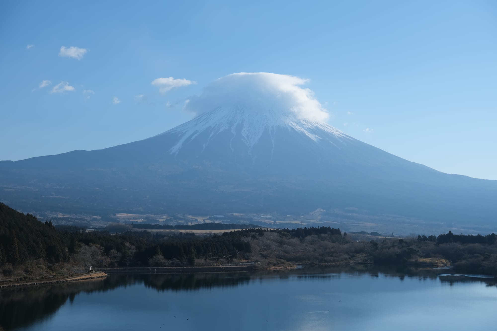 While visiting Japan in the winter, on two separate occasions, I went to a good view-point to see the most famous mountain in Japan: Fujisan.
